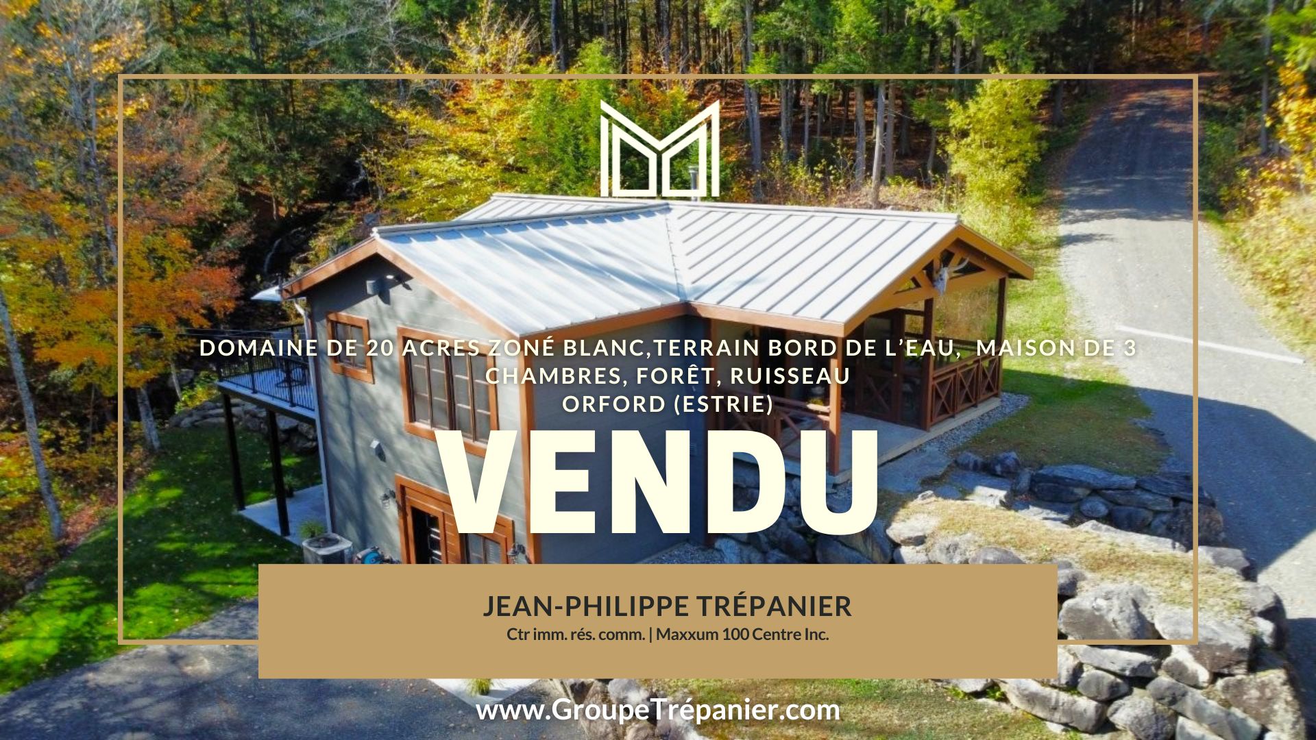 Orford (Estrie) : Une rareté sur le marché – Somptueux domaine de 20,25 acres zoné blanc en nature, agrémenté d’une parcelle de terrain au bord du lac Simoneau et d’une noble maison de trois chambres à coucher aux abords d’une magnifique chute. Un lieu où règnent calme, intimité et beauté, à proximité de tout ce que l’Estrie offre de meilleur en matière de plein air.