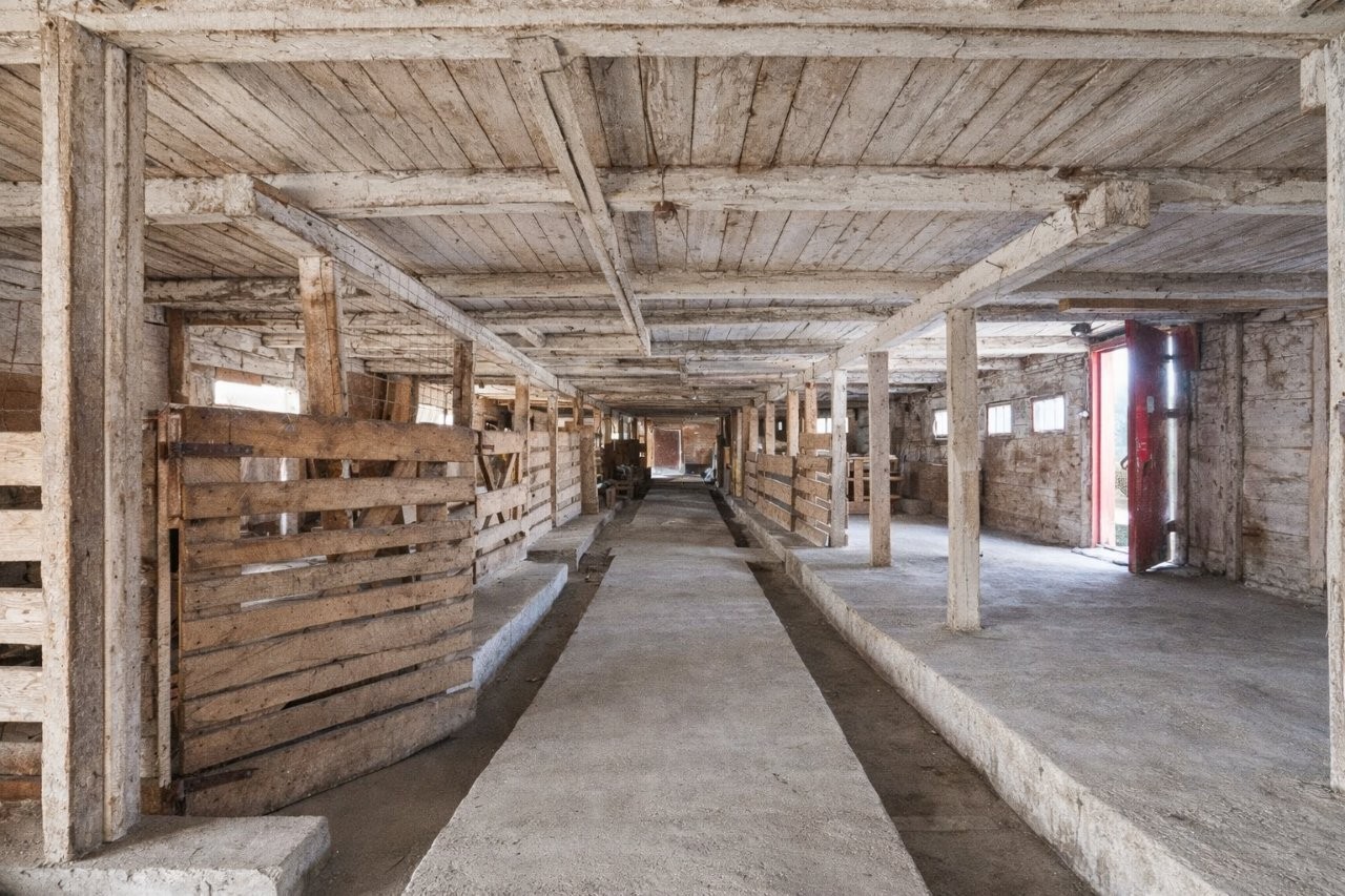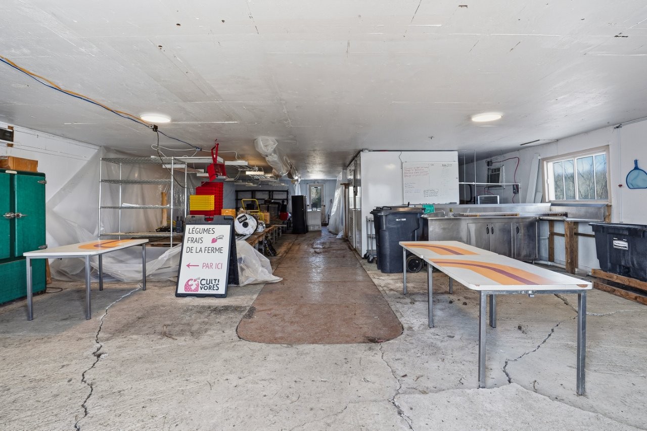 - Un bâtiment multifonctionnel de 9,14 x 18,29 m, utilisé pour le maraîchage entre 2022 et 2025, incluant une salle de réception convertie en salle de conditionnement