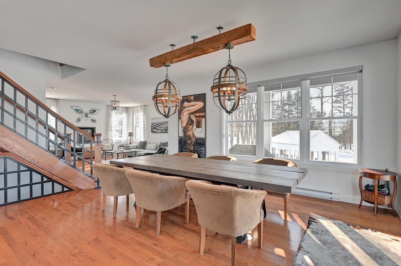 Cette demeure offre plus de 2 600 pieds carrés d’espace habitable, sans compter le sous-sol entièrement aménagé. Dès votre arrivée, la qualité de la construction et le souci du détail séduisent instantanément. La cuisine moderne propose des armoires haut de gamme, un comptoir en quartz, une cuisinière au gaz et un grand garde-manger walk-in. Ouverte sur la salle à manger, elle invite à la convivialité et à de chaleureux repas en famille. Le salon, vaste et lumineux, est agrémenté d’un foyer au gaz et d’un majestueux escalier en bois et fer forgé de cinq pieds de largeur, ajoutant une touche d’élégance à l’espace.