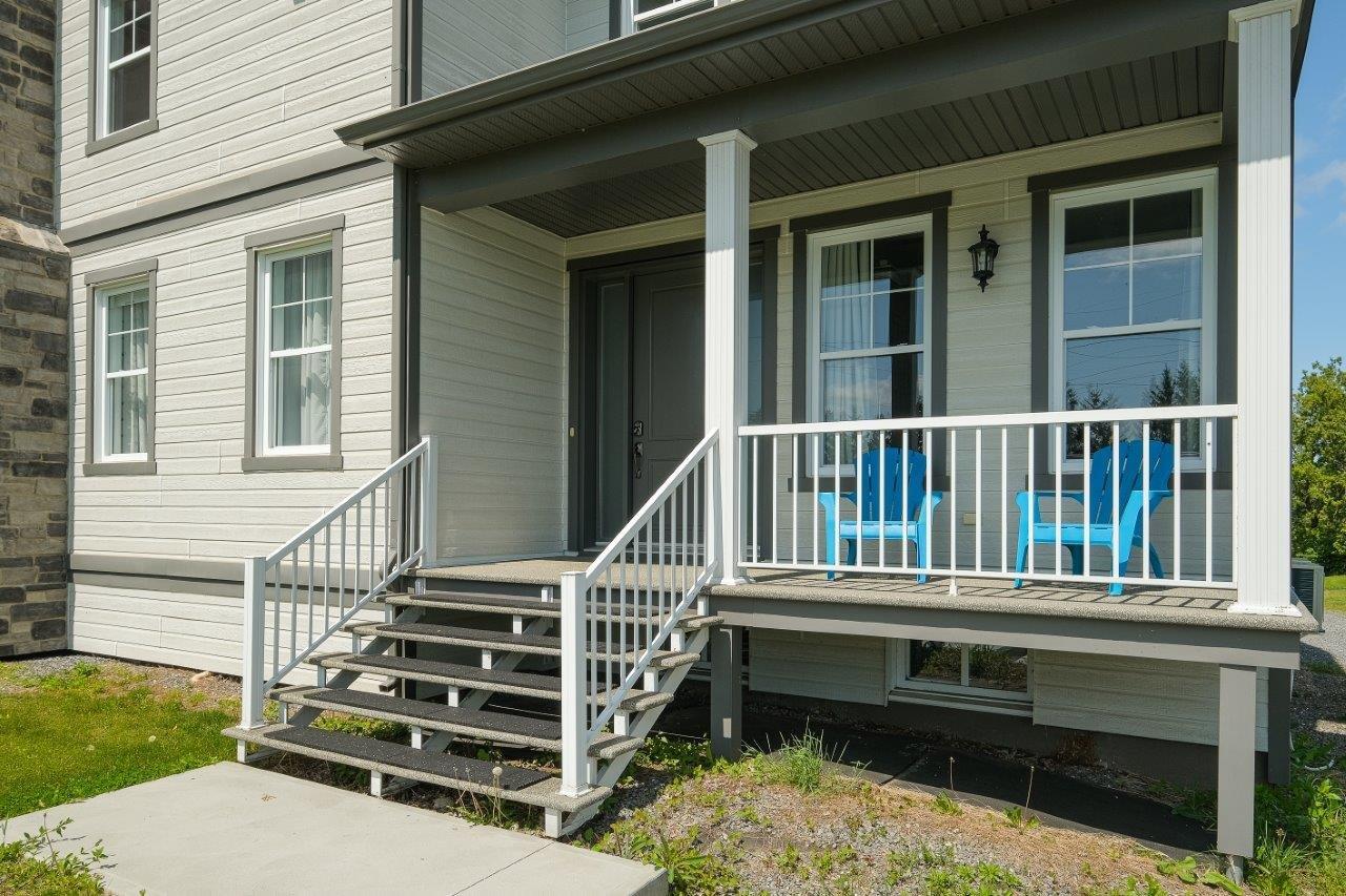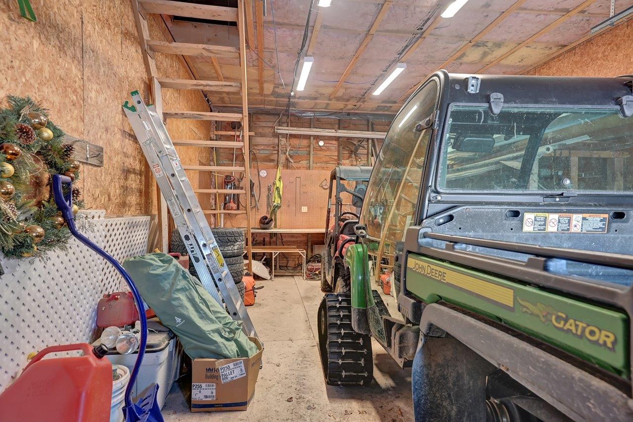 Le sous-sol, entièrement aménagé, propose une salle familiale avec poêle à combustion lente, deux chambres (dont une à aire ouverte), une salle de bain complète, une seconde salle de lavage pratique pour les vêtements d’écurie, ainsi qu’un mudroom bien organisé.