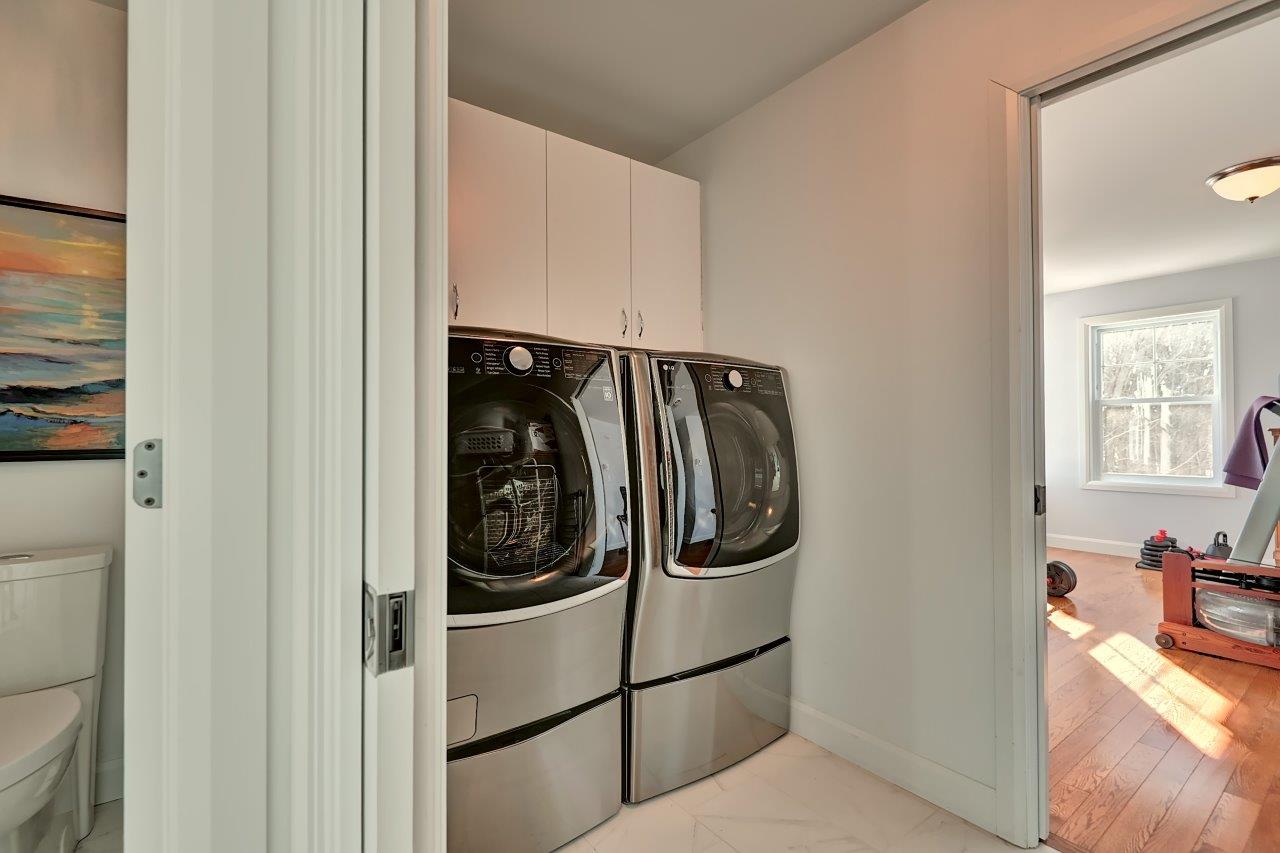 À l’étage, deux chambres spacieuses avec walk-in, une salle d’entraînement et une salle de bain complète vous attendent. Celle-ci offre un confort absolu : planchers chauffants, chauffe-serviettes, bain et douche séparés, toilette fermée et salle de lavage indépendante.