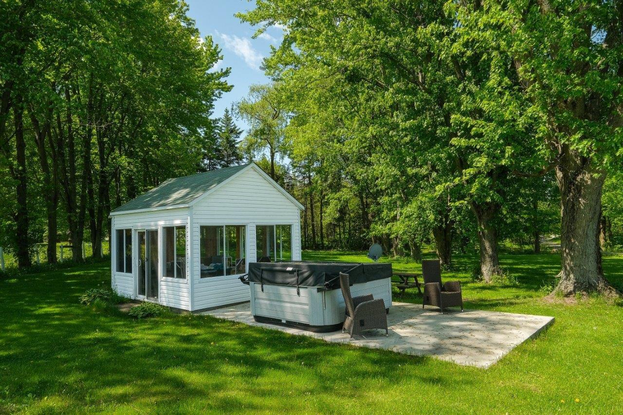 Les espaces extérieurs sont pensés pour la détente et le plaisir. Une maisonnette d’invités accueille famille et amis avec confort, tandis qu’un charmant gazébo invite aux repas d’été en plein air. Le spa, installé en 2021, complète parfaitement le tout et permet de savourer la quiétude du site. Cet ensemble harmonieux crée un cadre de vie champêtre où chaque journée se transforme en escapade.