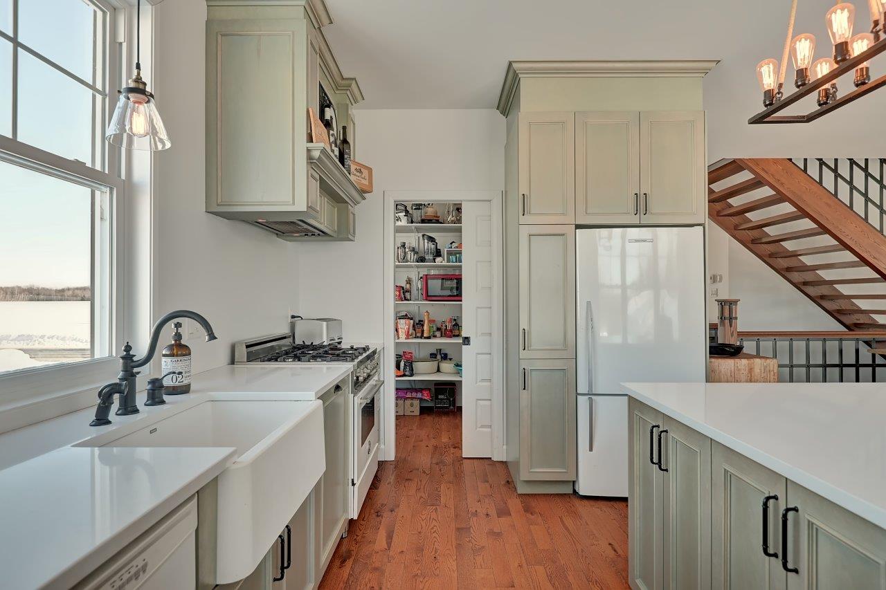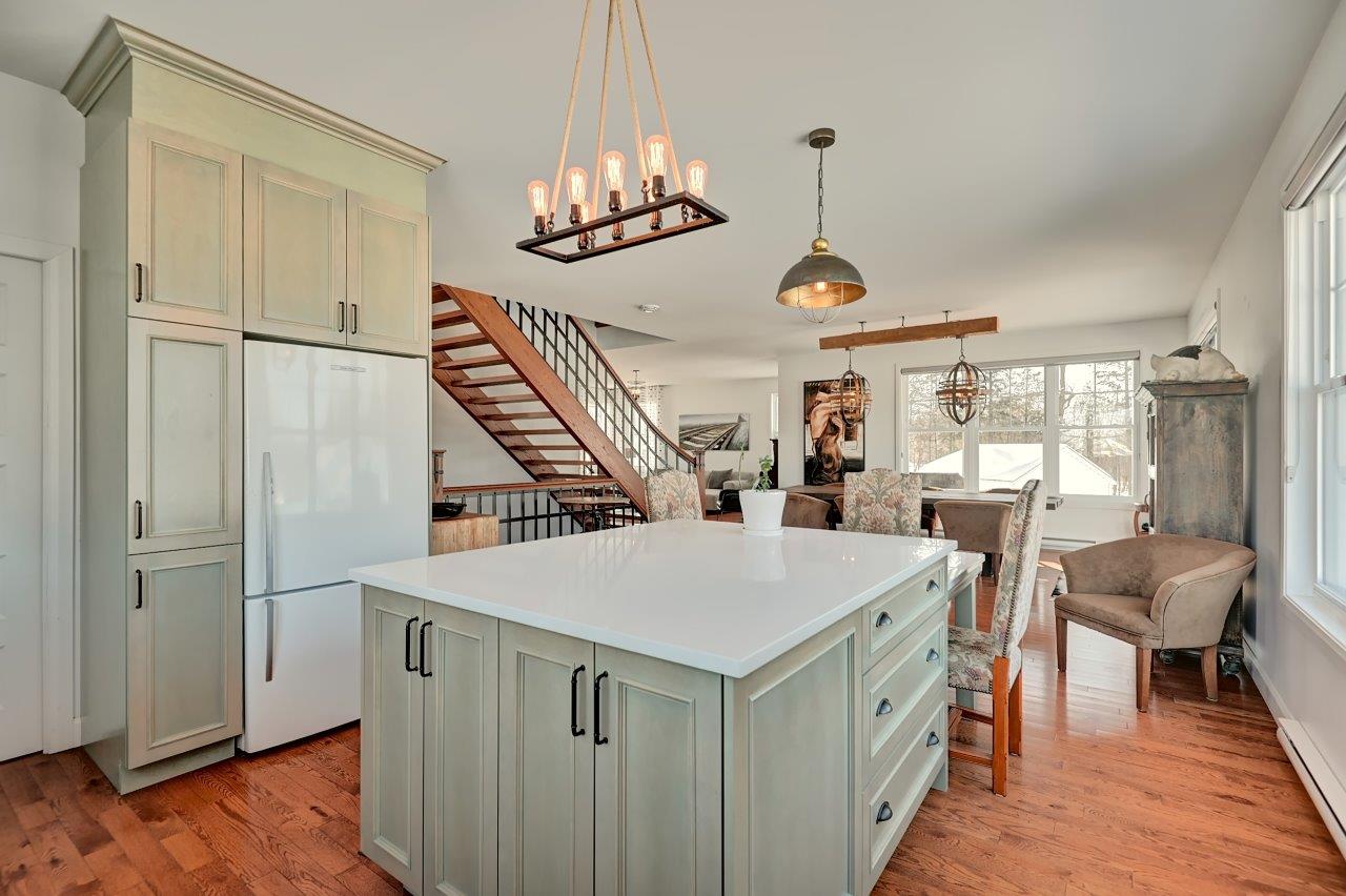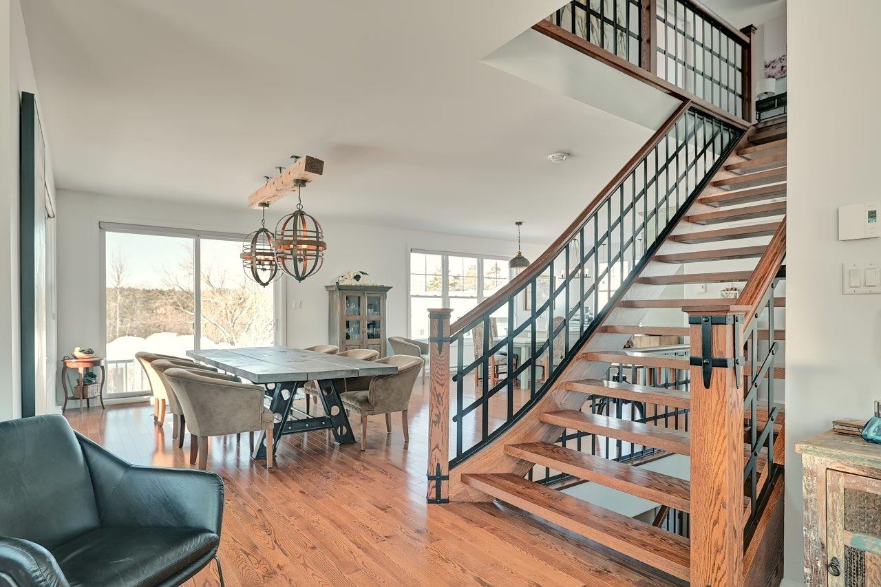 Cette demeure offre plus de 2 600 pieds carrés d’espace habitable, sans compter le sous-sol entièrement aménagé. Dès votre arrivée, la qualité de la construction et le souci du détail séduisent instantanément. La cuisine moderne propose des armoires haut de gamme, un comptoir en quartz, une cuisinière au gaz et un grand garde-manger walk-in. Ouverte sur la salle à manger, elle invite à la convivialité et à de chaleureux repas en famille. Le salon, vaste et lumineux, est agrémenté d’un foyer au gaz et d’un majestueux escalier en bois et fer forgé de cinq pieds de largeur, ajoutant une touche d’élégance à l’espace.