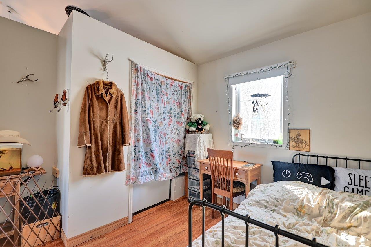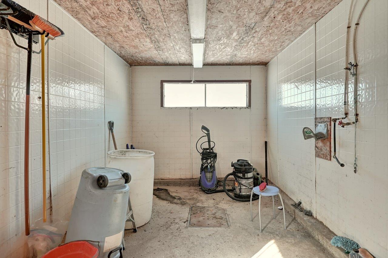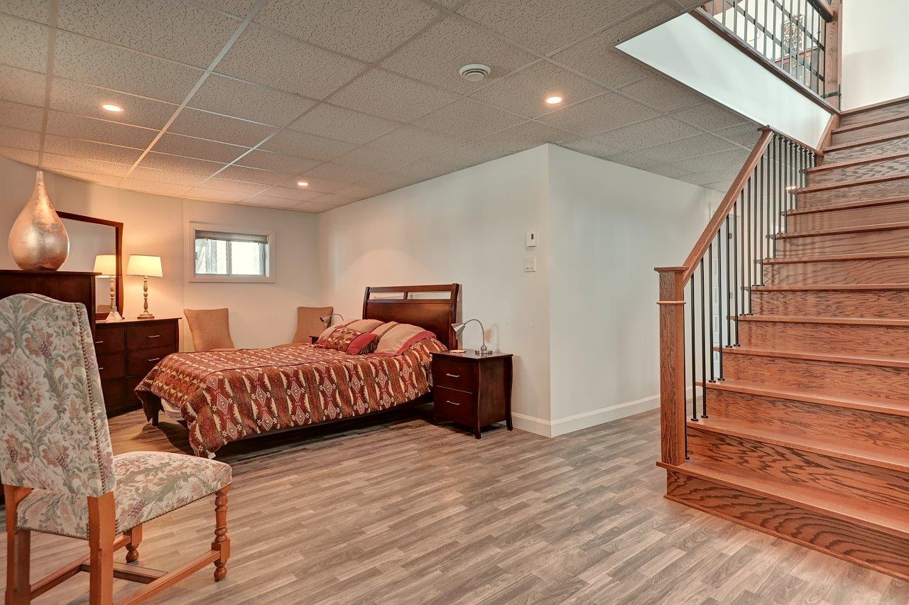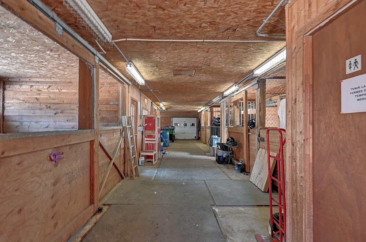 Le sous-sol, entièrement aménagé, propose une salle familiale avec poêle à combustion lente, deux chambres (dont une à aire ouverte), une salle de bain complète, une seconde salle de lavage pratique pour les vêtements d’écurie, ainsi qu’un mudroom bien organisé.