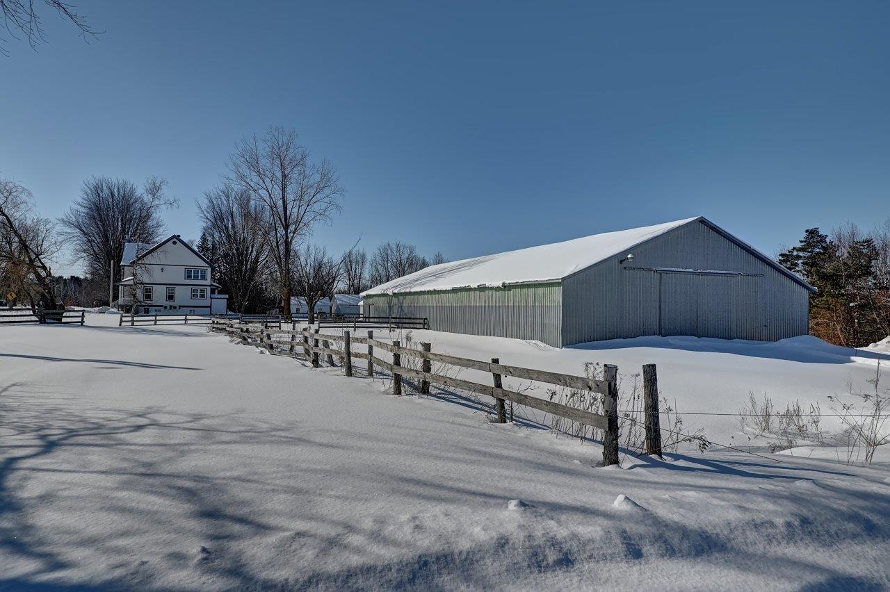 Il est également possible d’acquérir, en supplément, la terre de 200,41 acres qui complète magnifiquement cette propriété (voir MLS 27023468). Celle-ci comprend environ 30 acres en culture et est traversée par la rivière Salvail. La forêt, dense et variée, abrite une érablière non exploitée, une plantation d’environ 18 000 pins rouges et 2 000 chênes. Les amateurs d’équitation et de plein air y trouveront près de 15 km de sentiers, parfaits pour les randonnées à cheval ou à pied. Un ajout remarquable pour ceux qui rêvent d’un vaste domaine alliant nature et passion équestre.