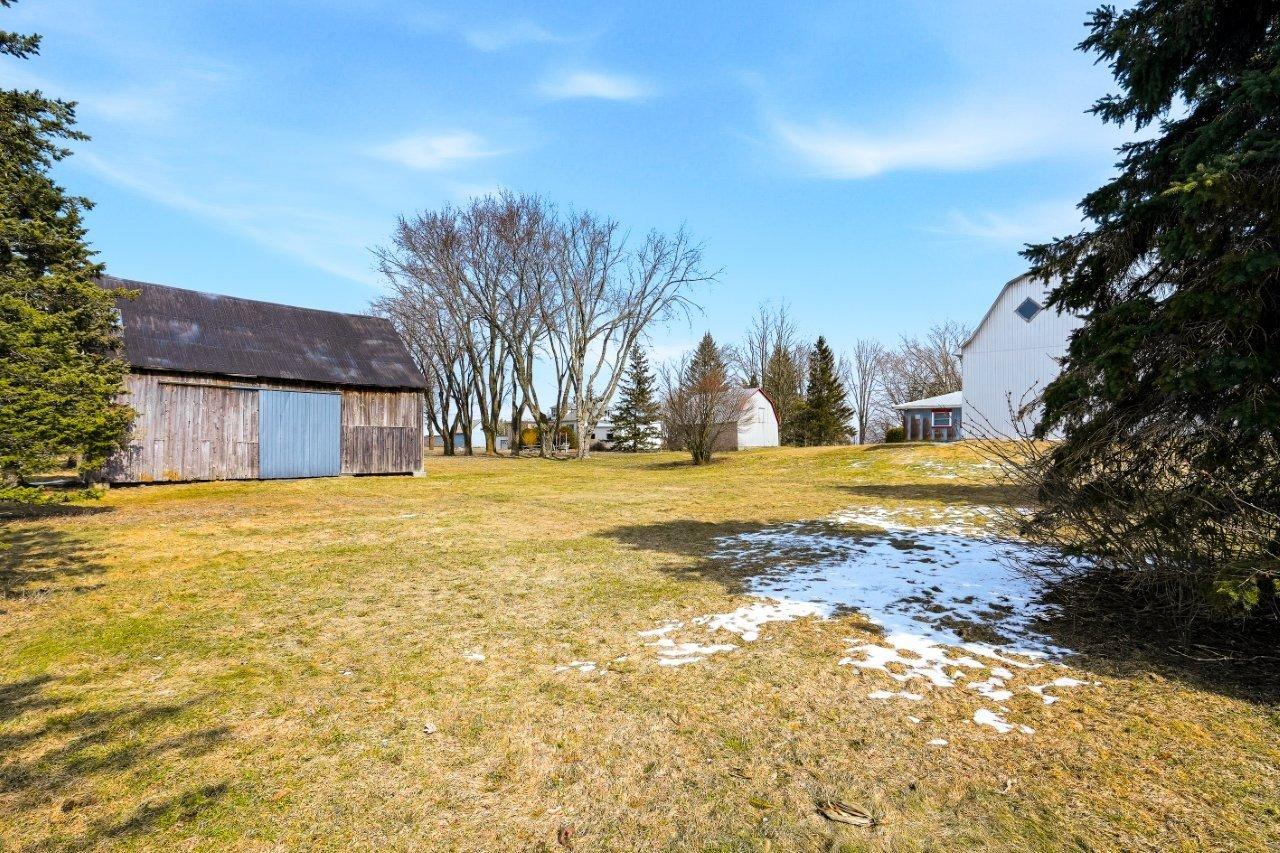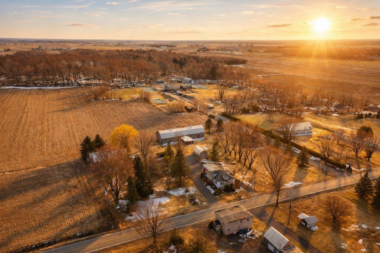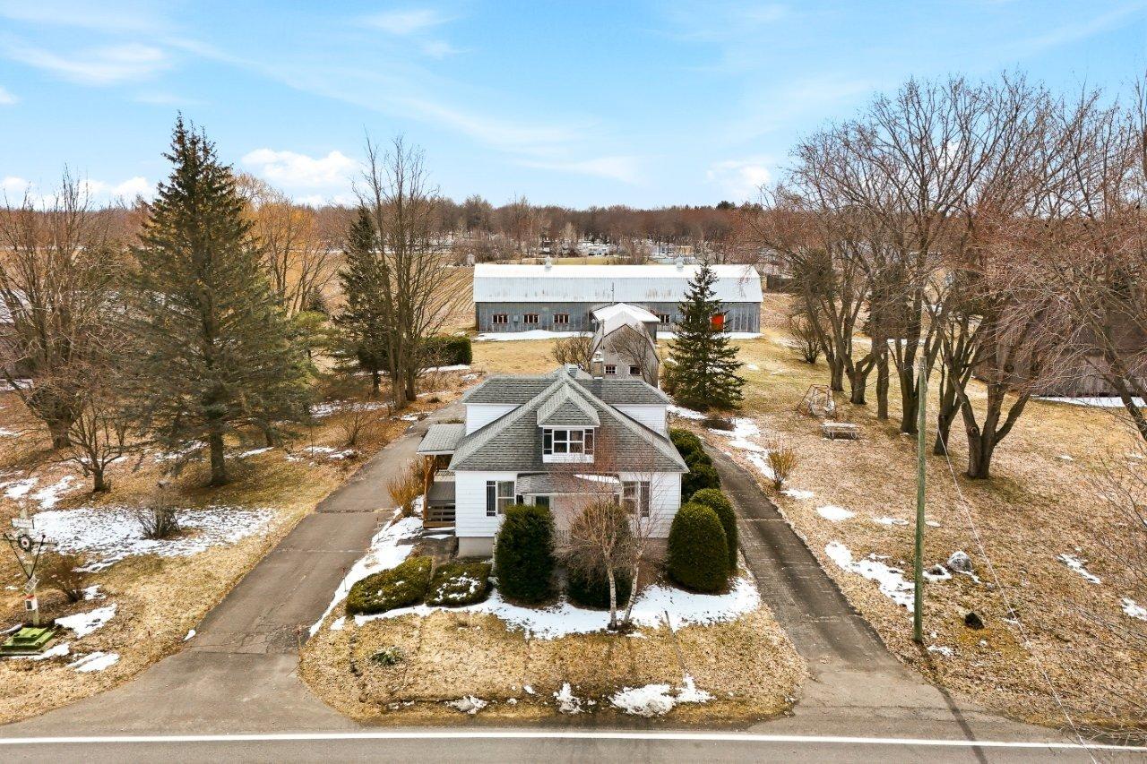 Ange-Gardien (Montérégie) : Située à 40 min de Montréal, 20 min de Granby, et à 5 minutes de l'accès pour l'autoroute 10, cette maison de campagne offre un cadre paisible sur 2,53 acres aménagés. La maison, bien entretenue, comprend 5 chambres et un garage double attenant. Plusieurs bâtiments agricoles complètent l'ensemble : hangar, remise et étable avec remonte-charge, offrant de multiples possibilités. Le terrain paysager se distingue par ses floraisons, son espace potager et quelques arbres fruitiers. Un emplacement idéal alliant tranquillité et proximité des services, parfait pour profiter d'un mode de vie à la campagne sans compromis.