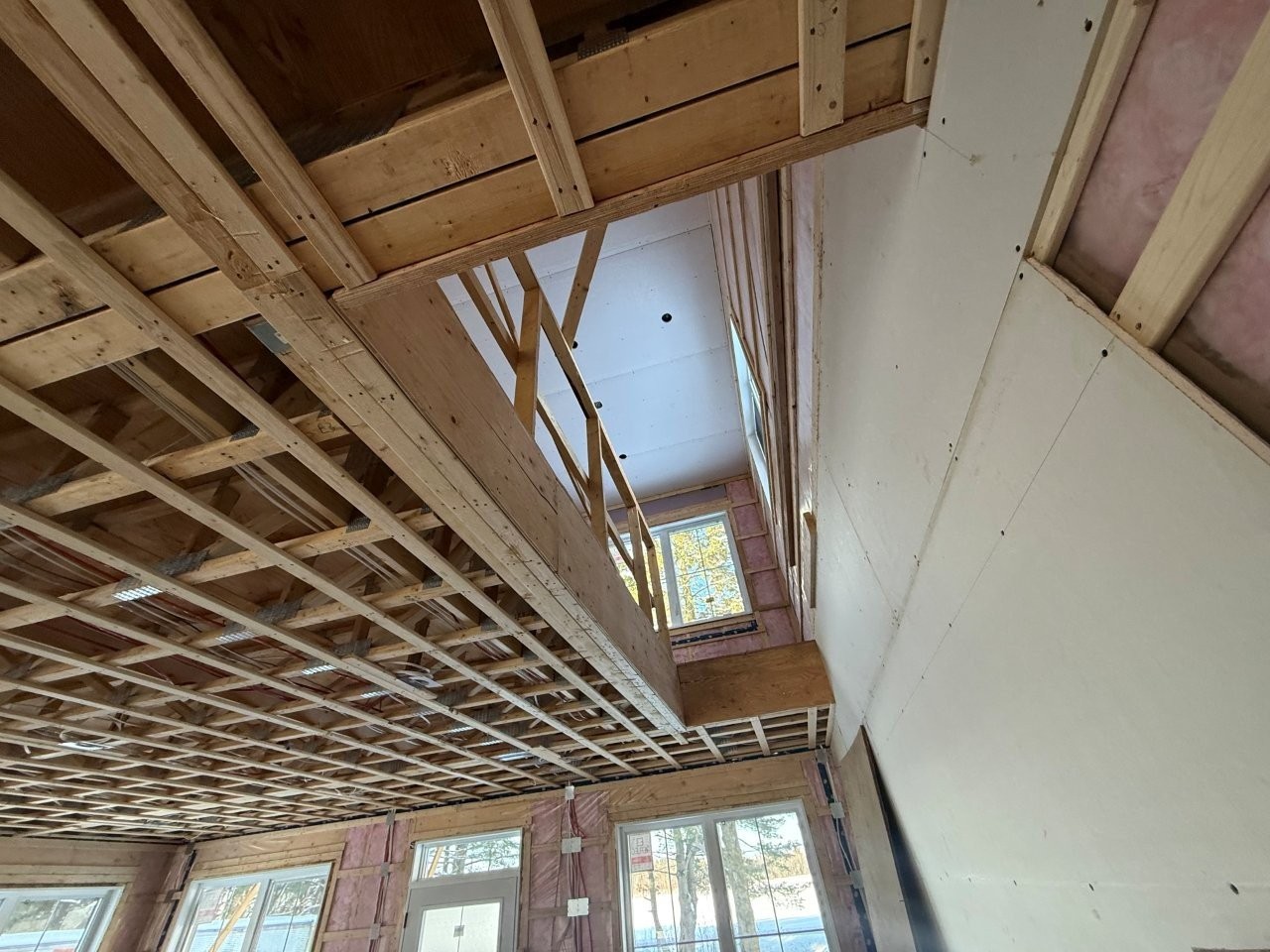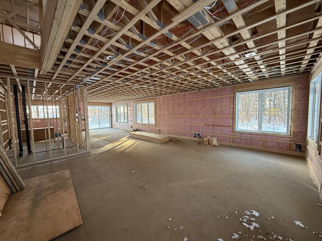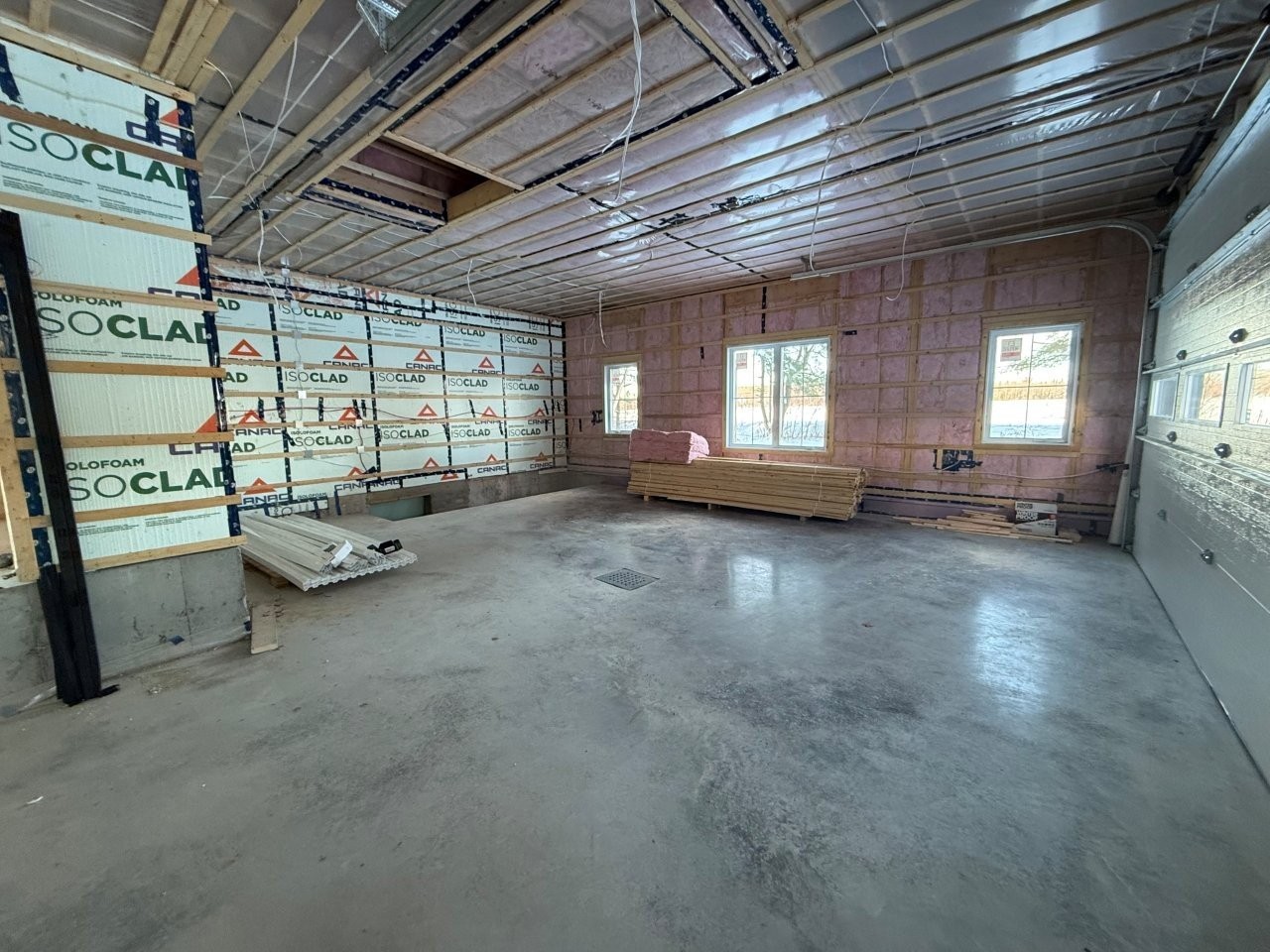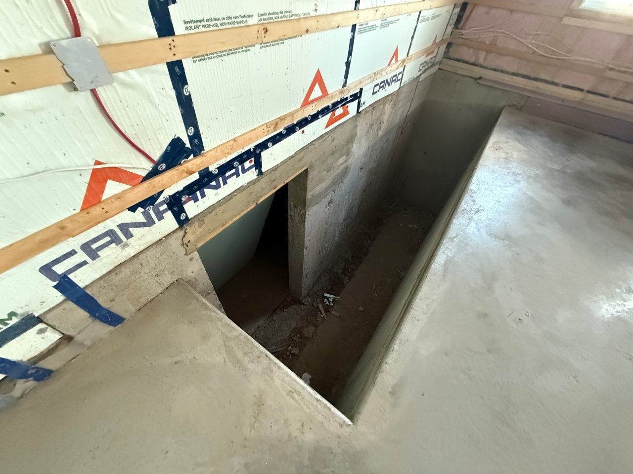 Le propriétaire a réalisé un travail d’envergure en déplaçant la maison d’origine afin d’ériger une nouvelle résidence sur le solage existant, lequel a été agrandi et pratiquement doublé pour accueillir une habitation contemporaine et lumineuse. Les travaux majeurs sont déjà complétés : électricité, plomberie, isolation et charpente sont en place. Les planchers, actuellement en béton, sont entièrement équipés d’un système de chauffage radiant couvrant toute la demeure, garage double inclus. Des plinthes électriques ont été ajoutées au sous-sol pour maximiser le confort.