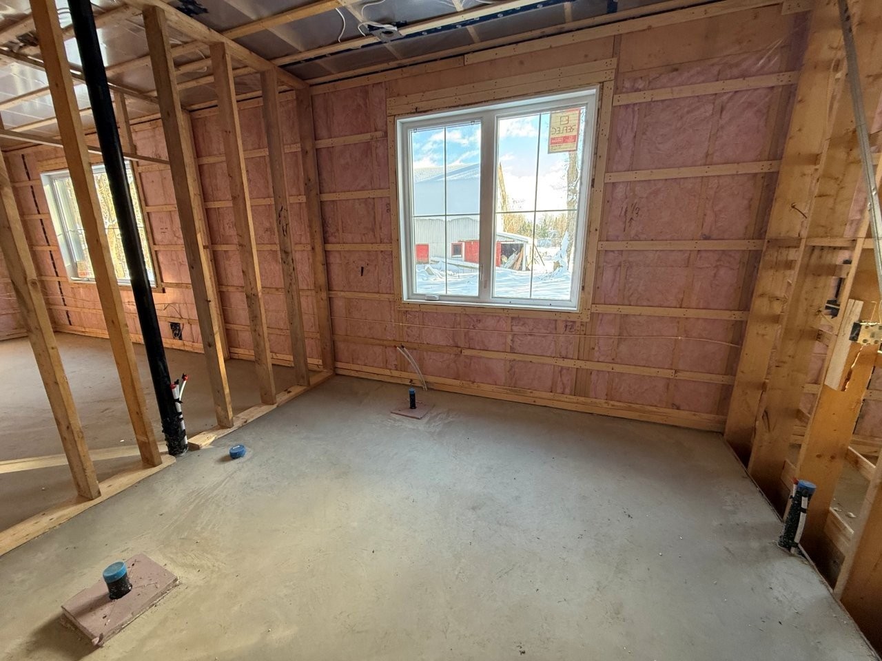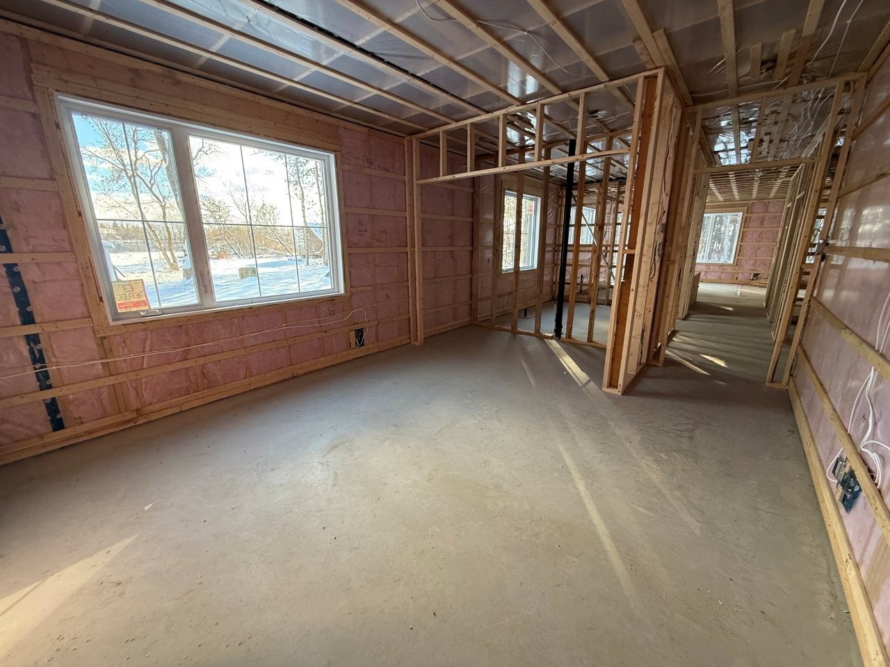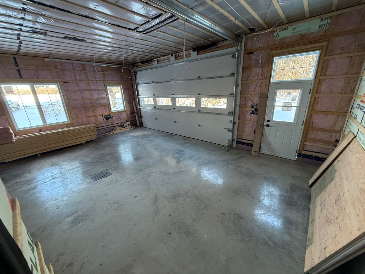 Le propriétaire a réalisé un travail d’envergure en déplaçant la maison d’origine afin d’ériger une nouvelle résidence sur le solage existant, lequel a été agrandi et pratiquement doublé pour accueillir une habitation contemporaine et lumineuse. Les travaux majeurs sont déjà complétés : électricité, plomberie, isolation et charpente sont en place. Les planchers, actuellement en béton, sont entièrement équipés d’un système de chauffage radiant couvrant toute la demeure, garage double inclus. Des plinthes électriques ont été ajoutées au sous-sol pour maximiser le confort.