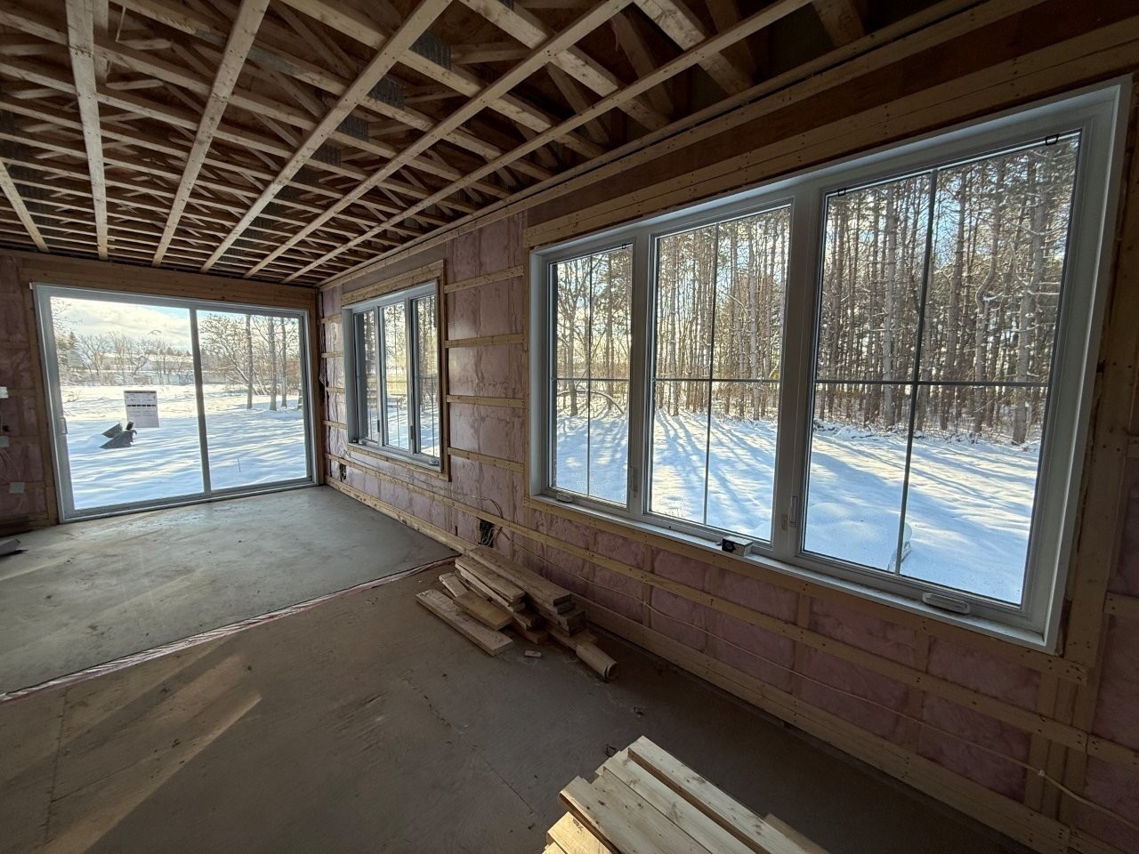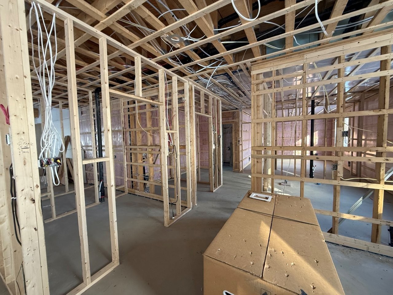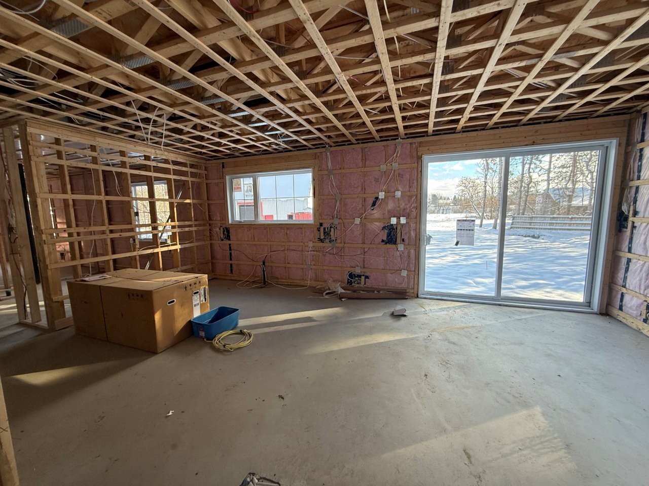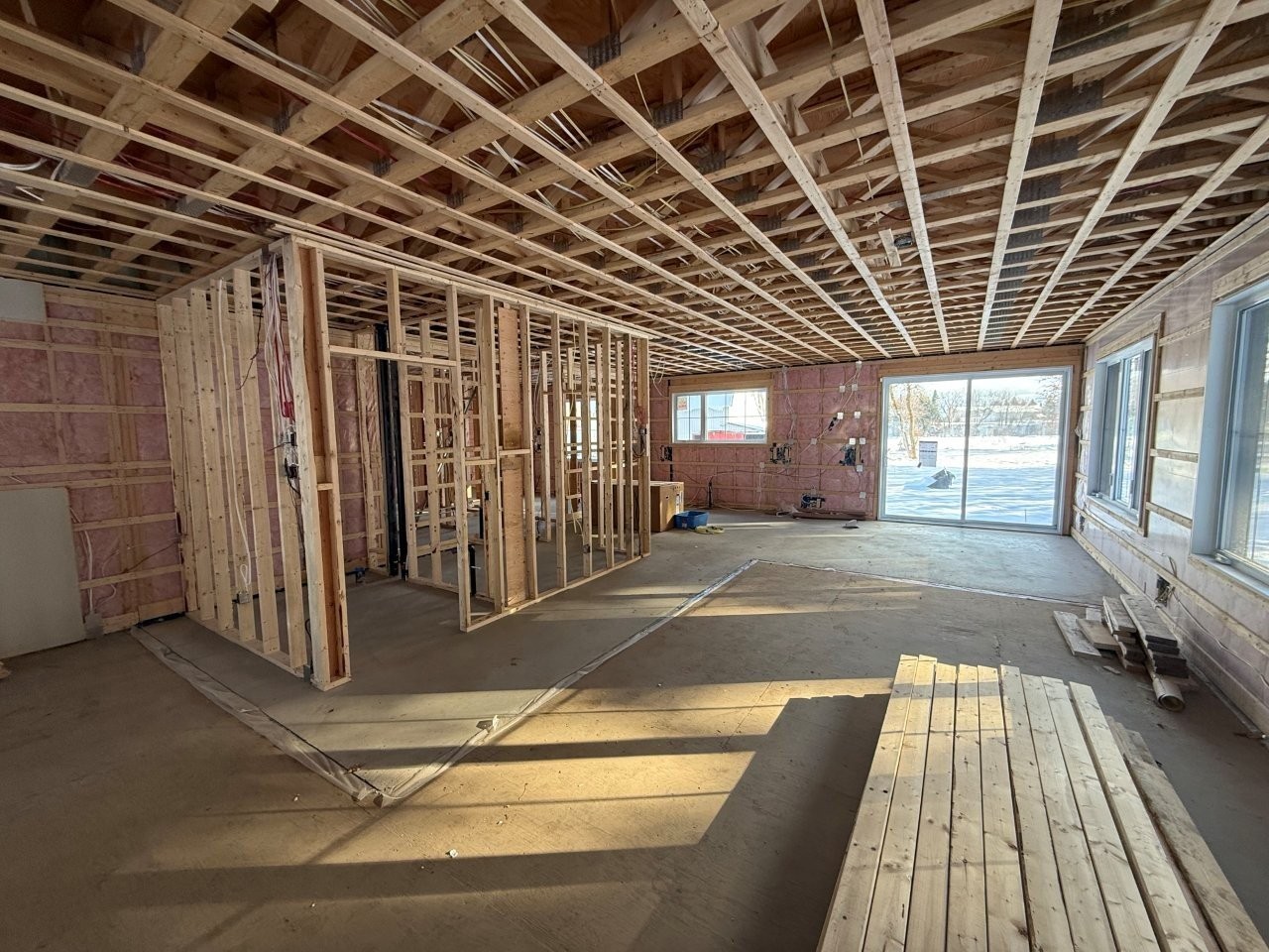 Le propriétaire a réalisé un travail d’envergure en déplaçant la maison d’origine afin d’ériger une nouvelle résidence sur le solage existant, lequel a été agrandi et pratiquement doublé pour accueillir une habitation contemporaine et lumineuse. Les travaux majeurs sont déjà complétés : électricité, plomberie, isolation et charpente sont en place. Les planchers, actuellement en béton, sont entièrement équipés d’un système de chauffage radiant couvrant toute la demeure, garage double inclus. Des plinthes électriques ont été ajoutées au sous-sol pour maximiser le confort.