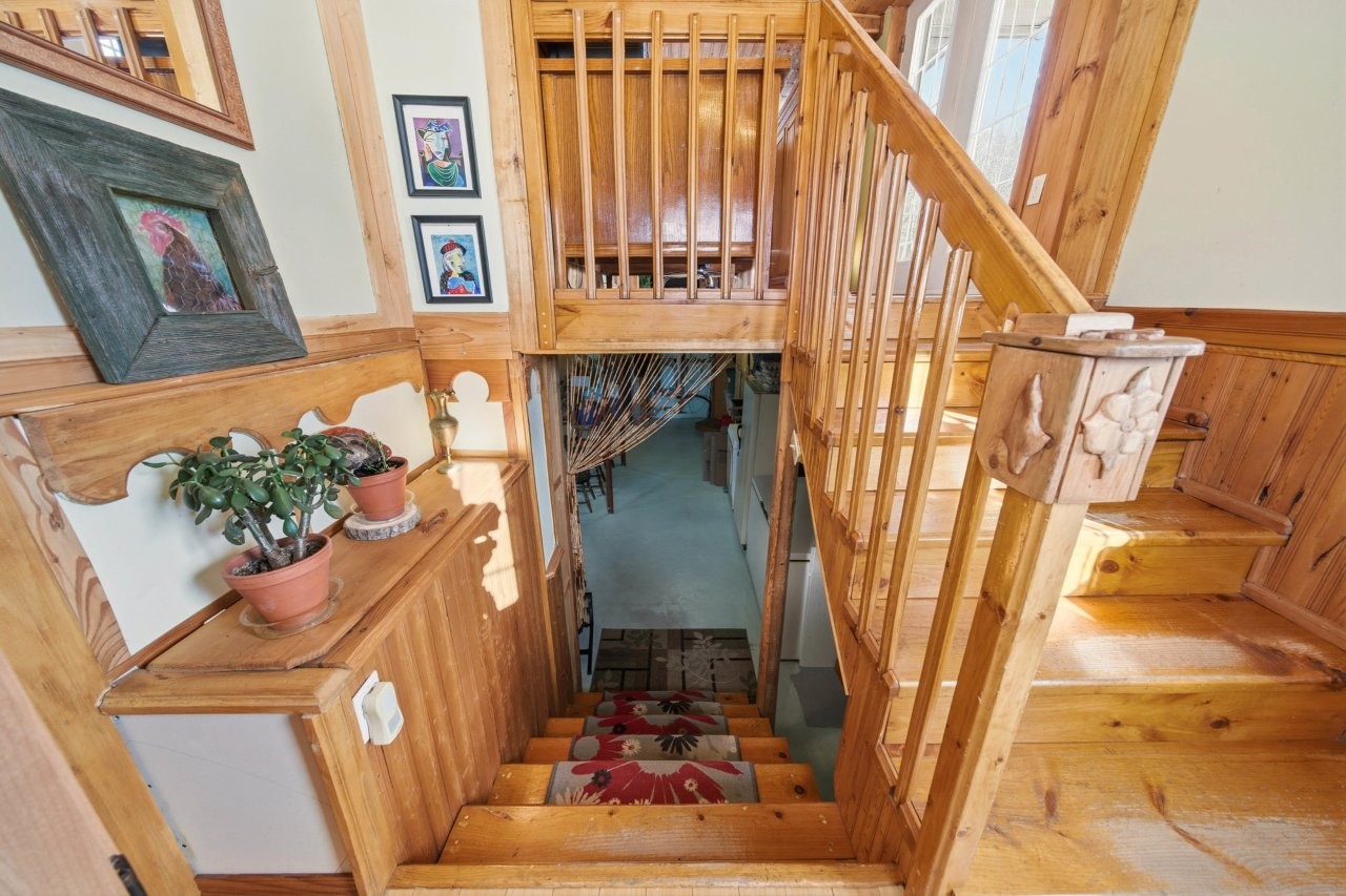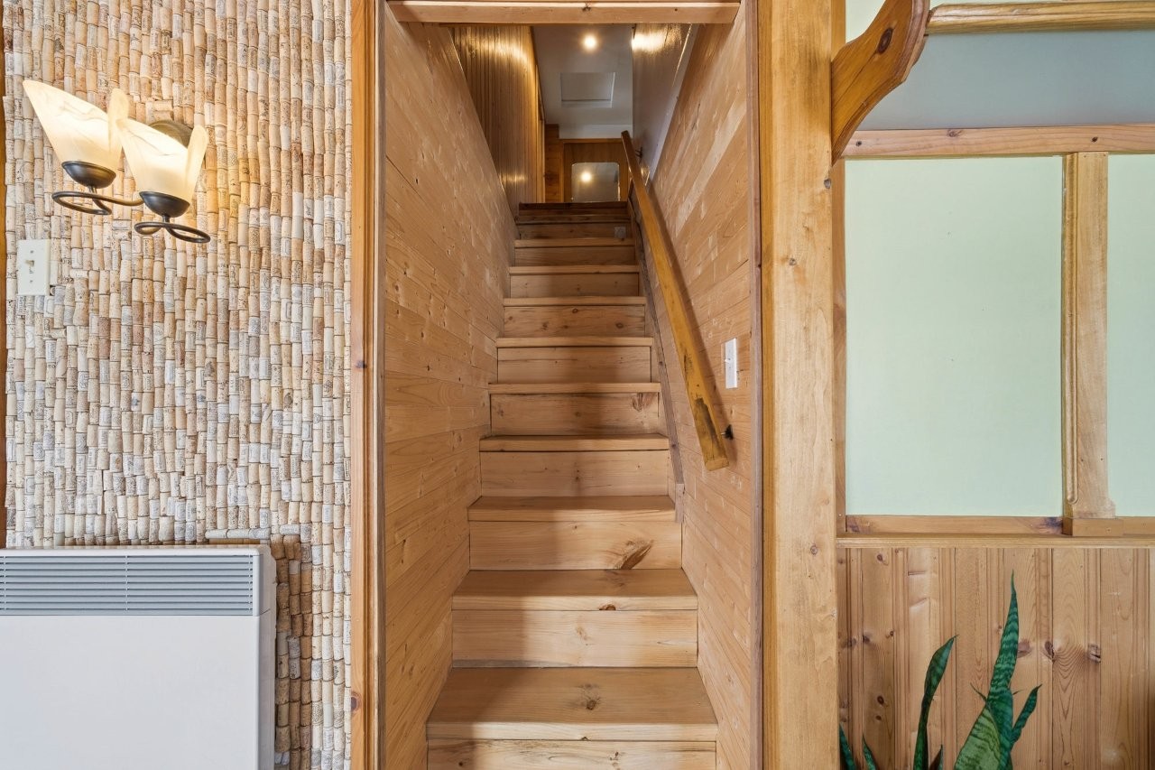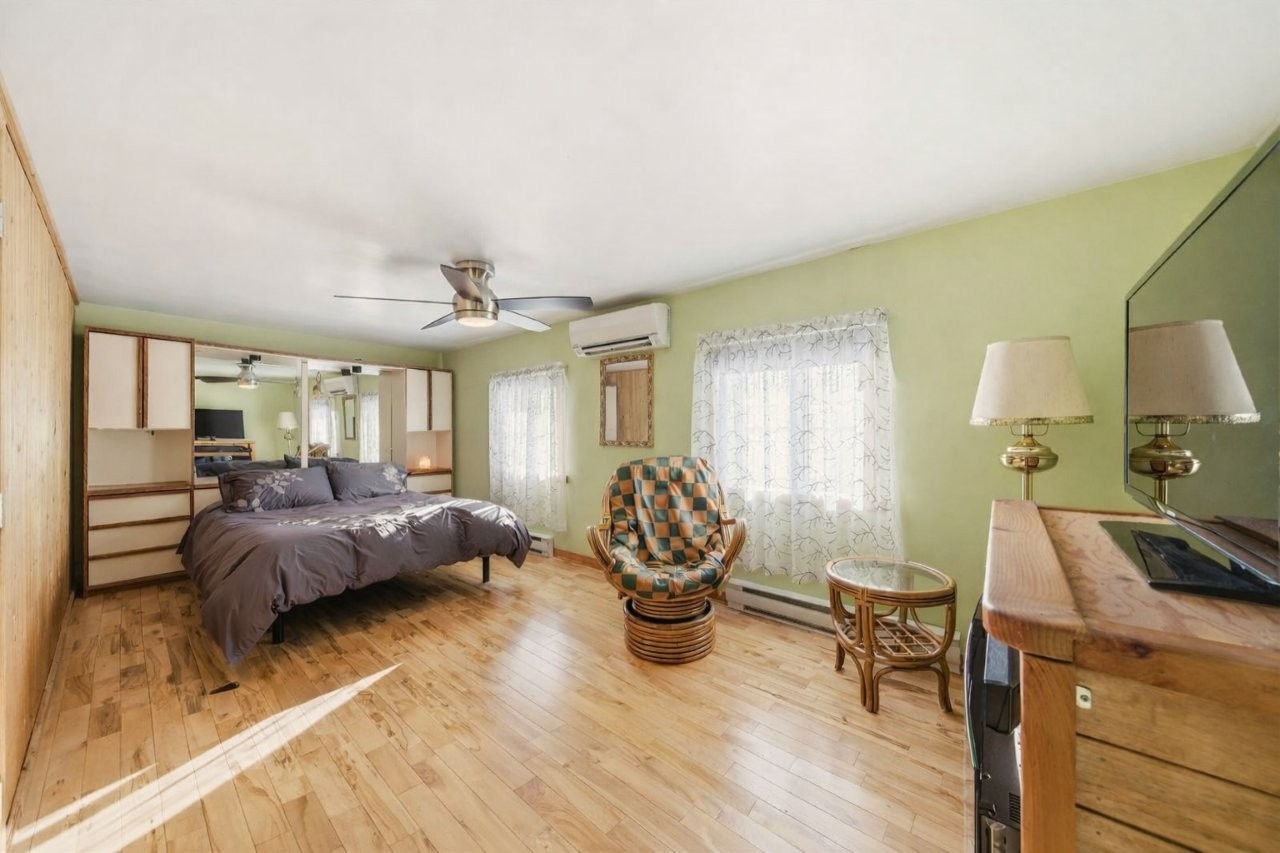 La maison, relocalisée sur de nouvelles fondations en 2005, a fait l’objet d’un entretien constant au fil des années. Elle offre une atmosphère conviviale et accueillante, avec trois chambres, une galerie idéale pour apprécier la vue sur la propriété, ainsi qu’un sous-sol proposant diverses options d’aménagement selon vos projets : espace familial, salle d’entraînement, bureau ou rangement additionnel.