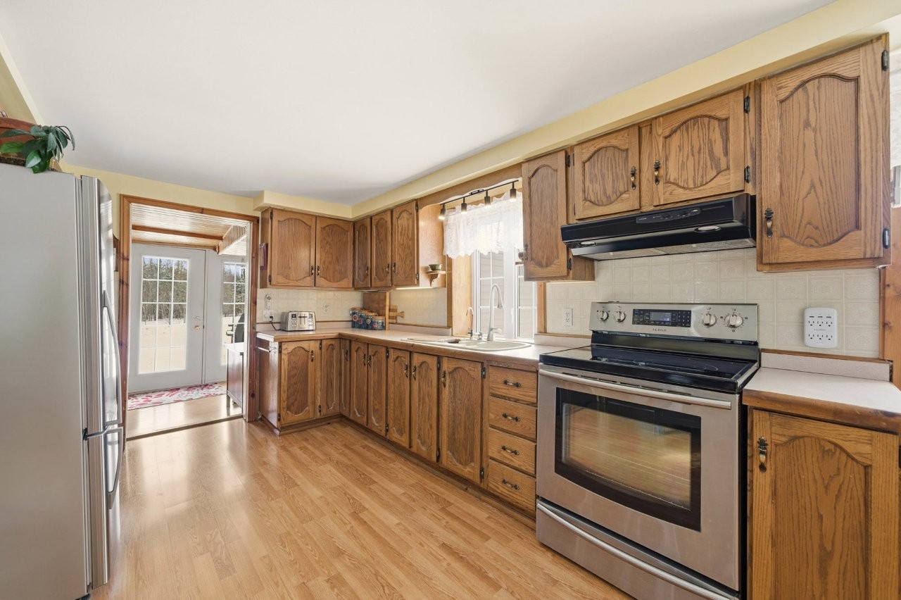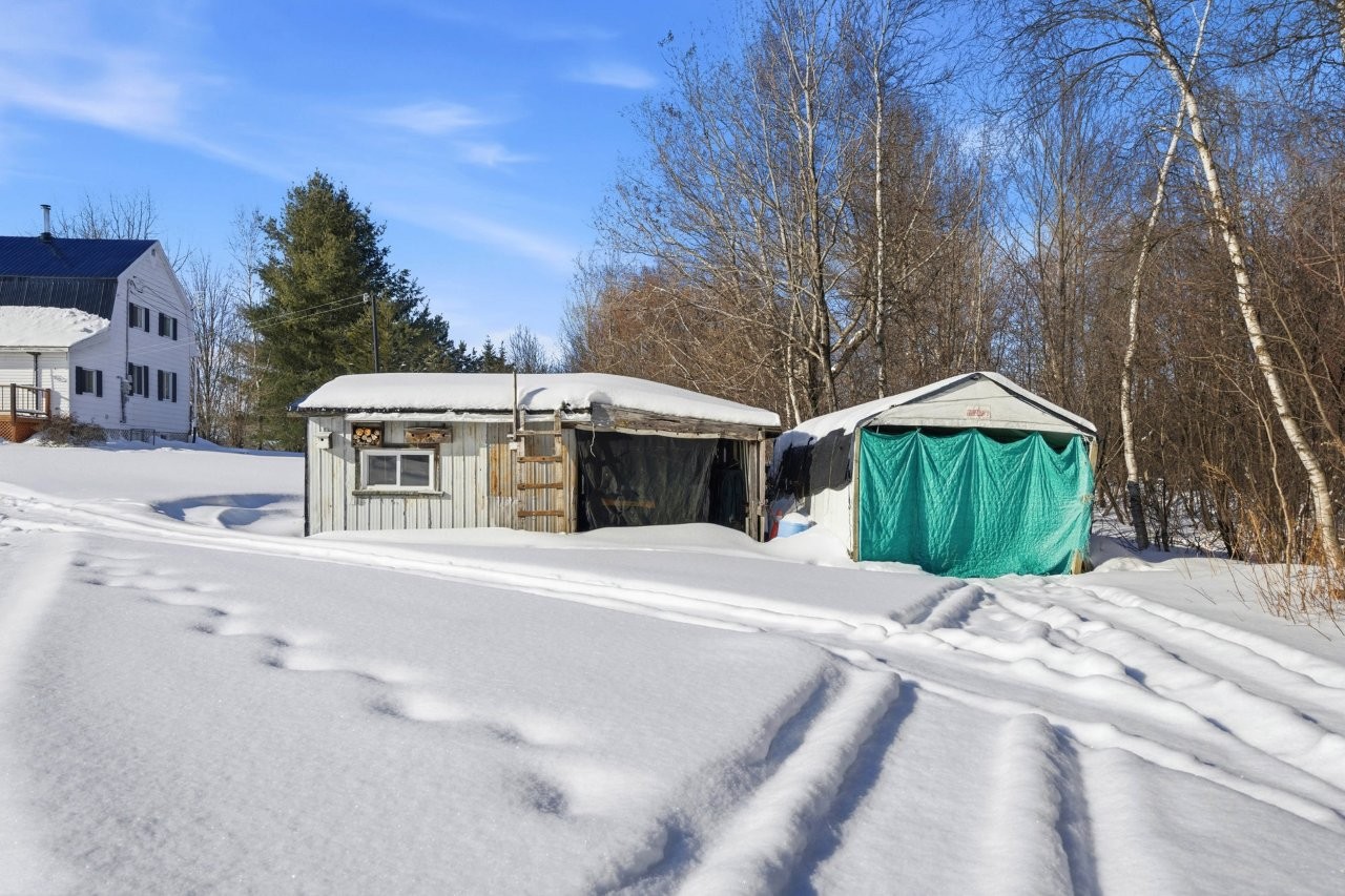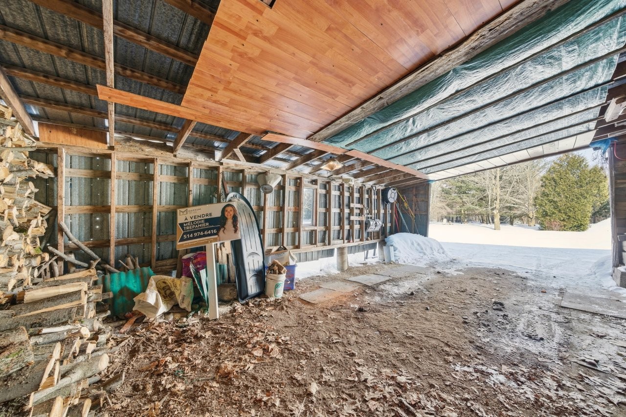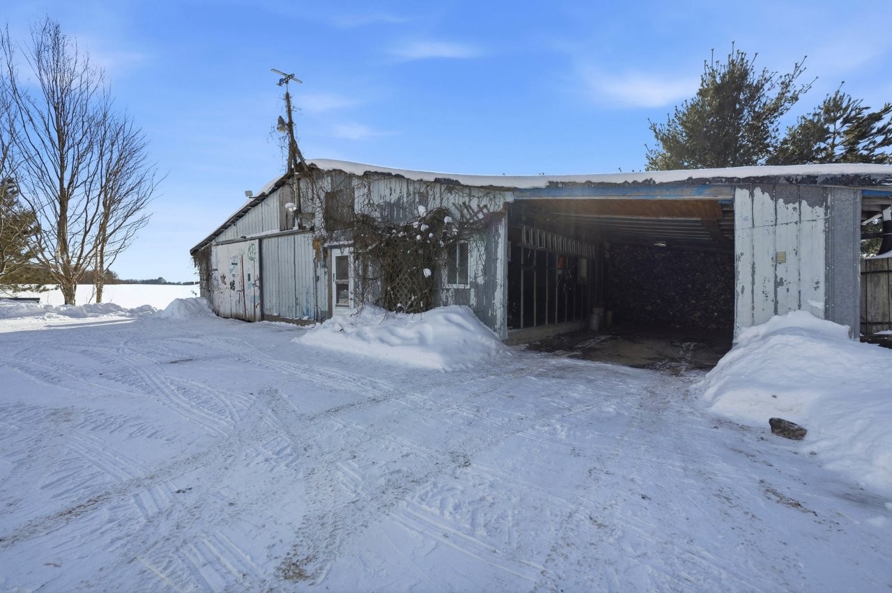 La fermette comprend un bâtiment agricole polyvalent, dont une portion servait autrefois d’écurie avec trois stalles, convenant parfaitement à un projet équestre ou à de la petite production agricole. Une section garage ainsi qu’un abri d’auto viennent compléter les installations, offrant des espaces fonctionnels pour l’entreposage et les véhicules.
