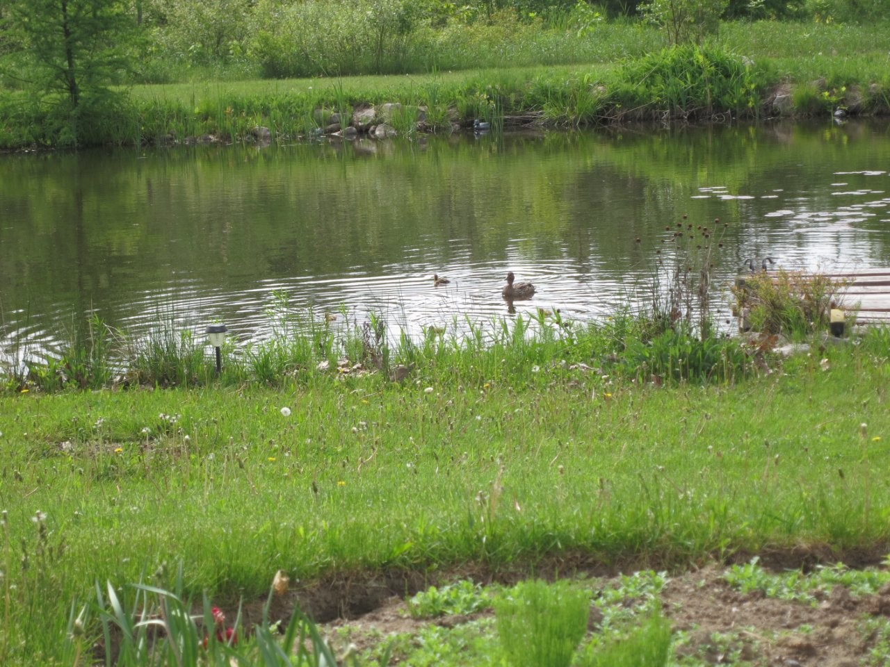 Le terrain est mis en valeur par un aménagement paysager soigné qui contribue à l’ambiance paisible des lieux. Un étang d’environ neuf pieds de profondeur, alimenté par une source souterraine, ajoute une touche distinctive au décor. Un quai aménagé permet de profiter pleinement des journées ensoleillées dans un cadre relaxant.