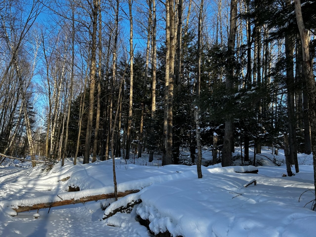 Le boisé couvre environ 54 acres et est traversé par un sentier menant presque jusqu’à l’extrémité du terrain, idéal pour la marche, la randonnée ou les activités de plein air. Le secteur présente également un potentiel intéressant pour un projet d’érablière récréative. Un ruisseau serpente à travers la forêt, rehaussant le caractère naturel du site, tandis qu’une voie ferrée longe une partie du boisé.