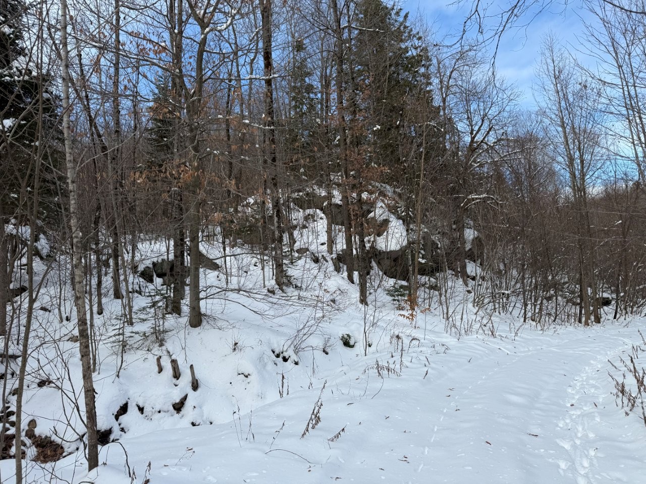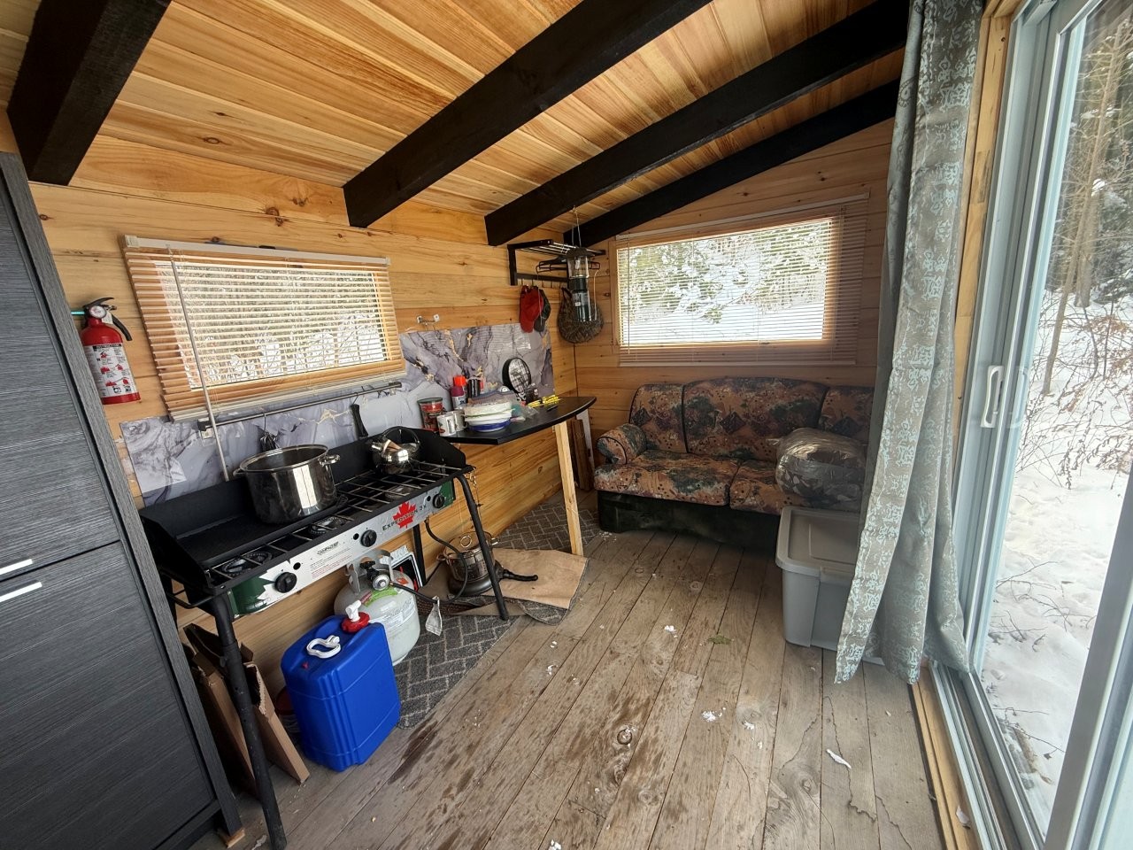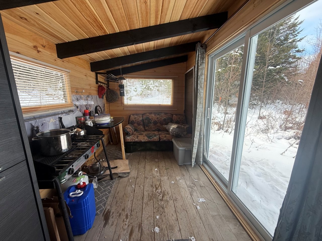 Deux constructions viennent bonifier le domaine. On retrouve d’abord un chalet déjà en place, offrant plusieurs avenues : rénovation, agrandissement ou reconstruction selon la réglementation municipale en vigueur. S’y ajoute un abri forestier flambant neuf (construction 2025, 8 x 16), de style pièce par pièce, entièrement meublé et équipé d’une toilette sèche, d’un poêle à bois, d’une cuisinière au propane, d’un divan-lit et d’une porte patio donnant directement sur la forêt. C’est l’endroit parfait pour vos séjours de chasse, vos moments de détente ou pour profiter pleinement de l’environnement sans compromis.