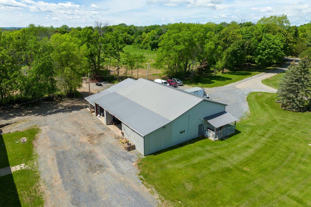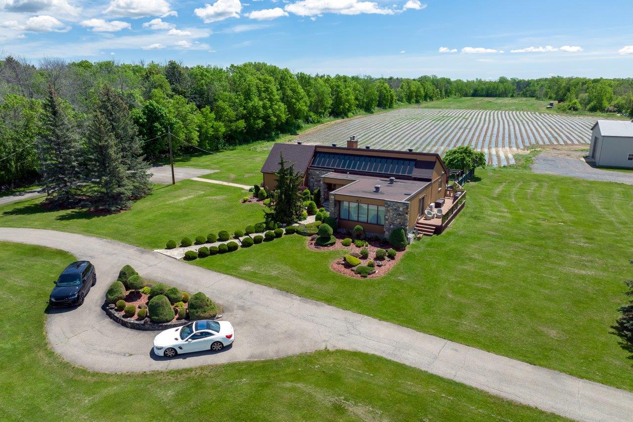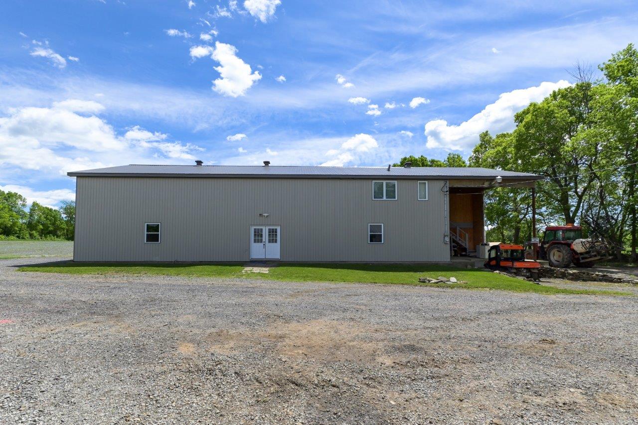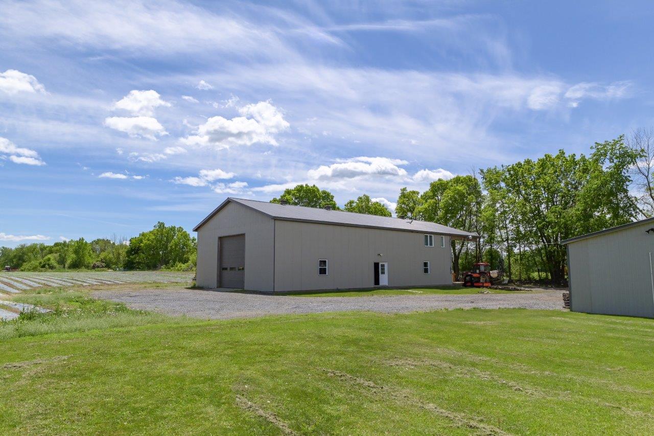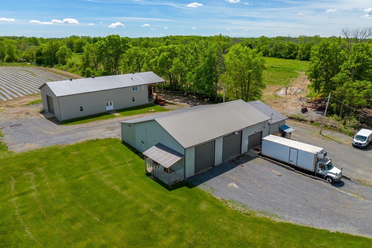 Le domaine agricole est également doté de bâtiments fonctionnels et bien adaptés à divers usages agricoles, incluant un garage à machinerie, un vaste entrepôt avec quai de chargement et espace réfrigéré, de même qu’un appartement destiné aux employés agricoles ou à un palefrenier.