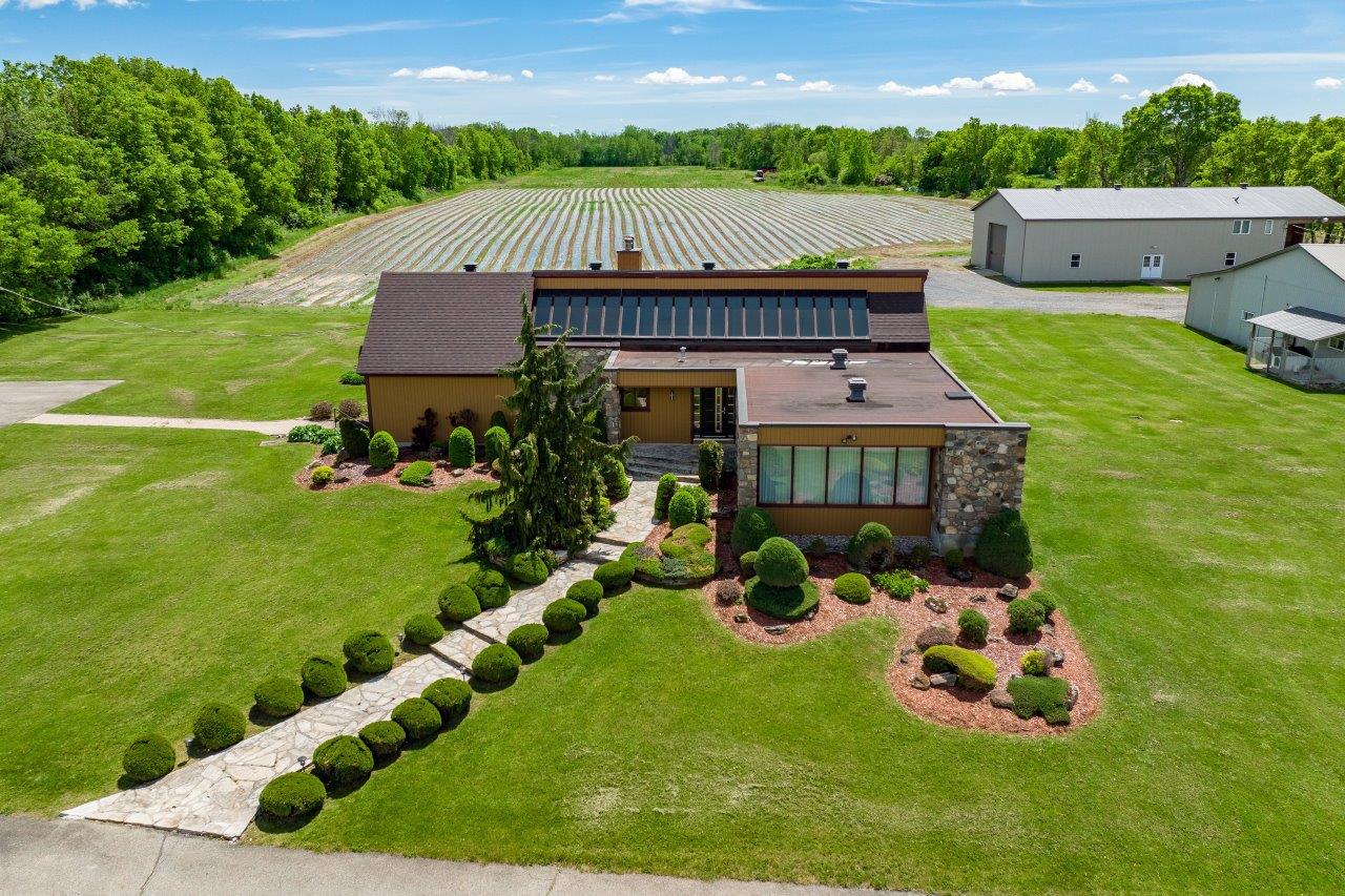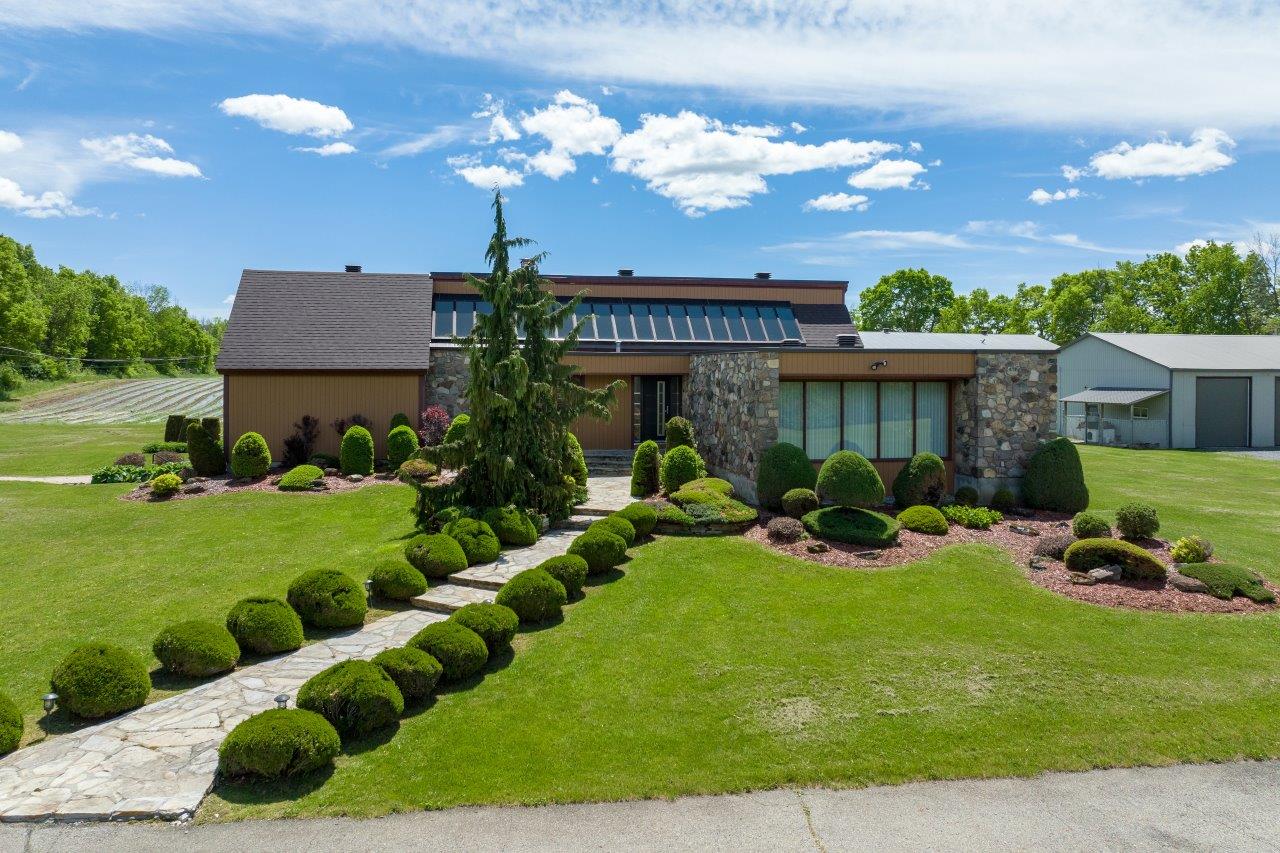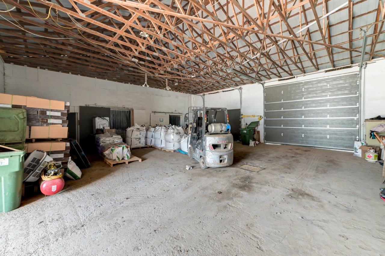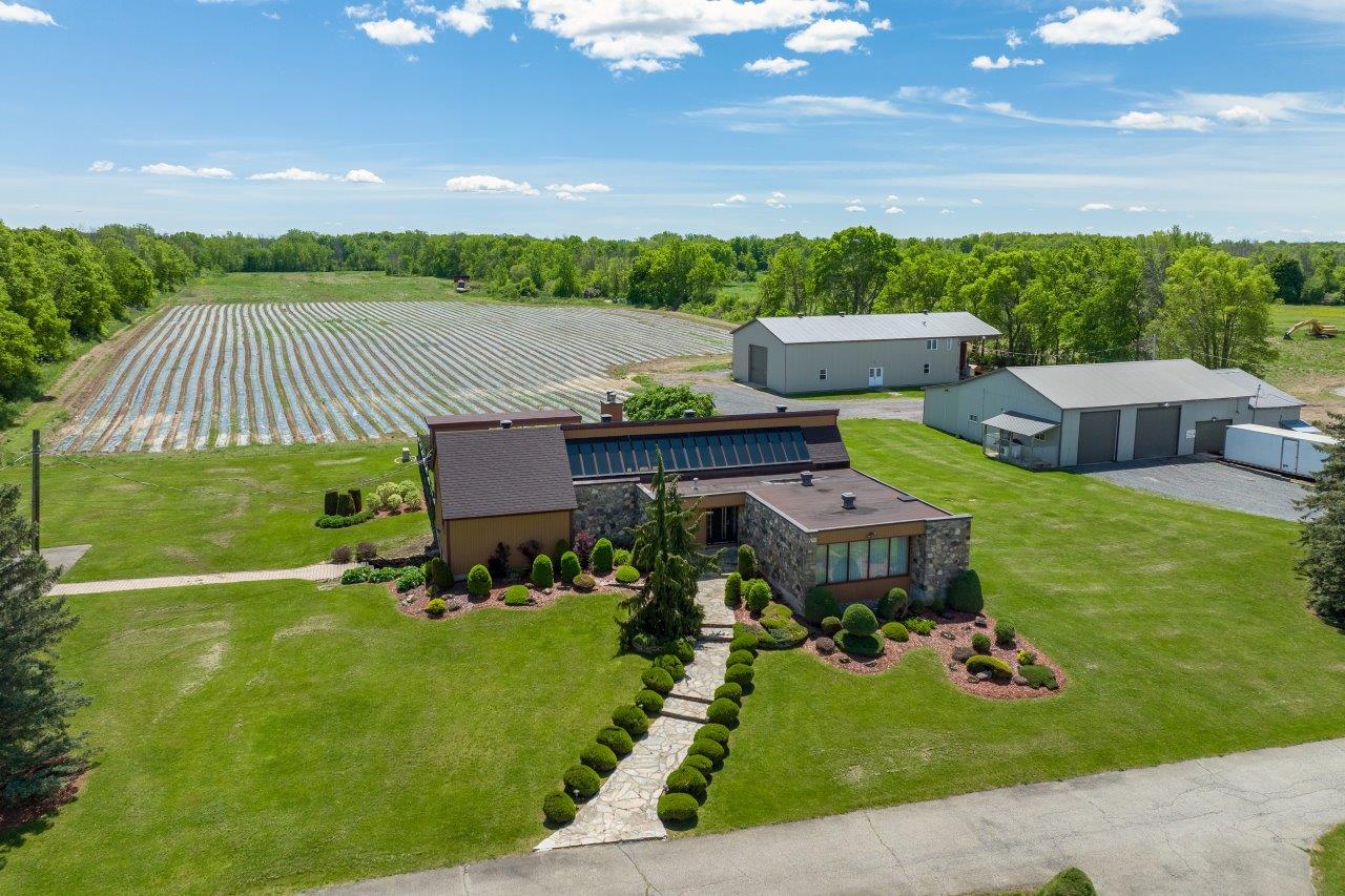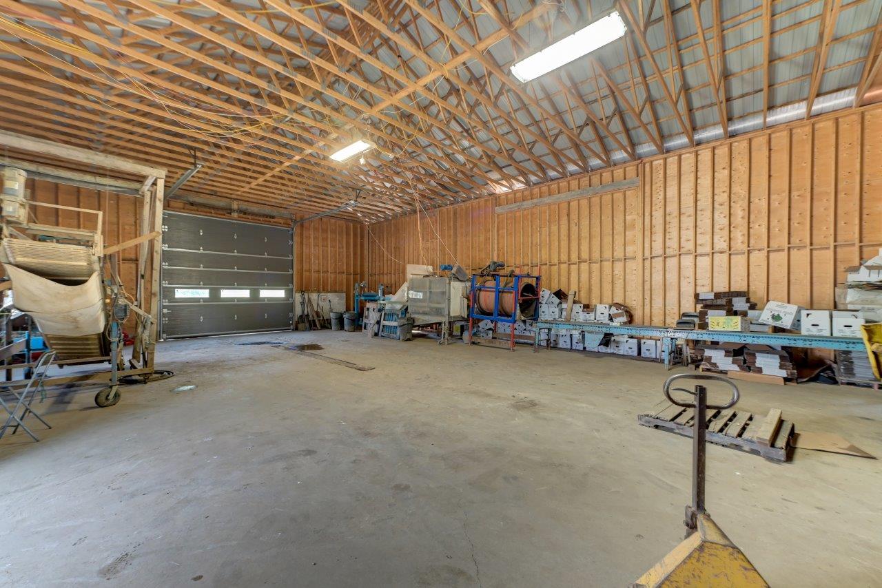 Le domaine agricole est également doté de bâtiments fonctionnels et bien adaptés à divers usages agricoles, incluant un garage à machinerie, un vaste entrepôt avec quai de chargement et espace réfrigéré, de même qu’un appartement destiné aux employés agricoles ou à un palefrenier.
