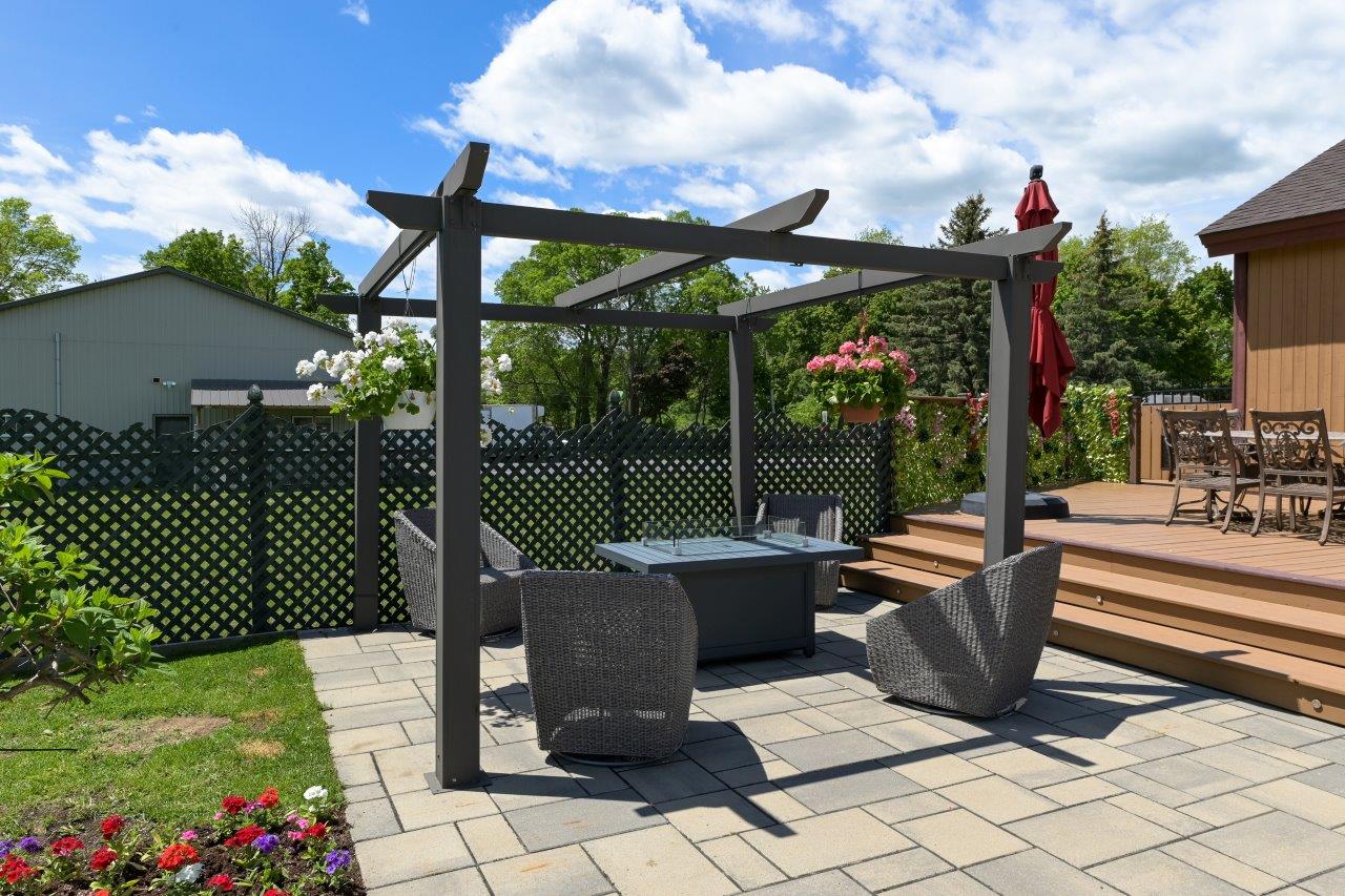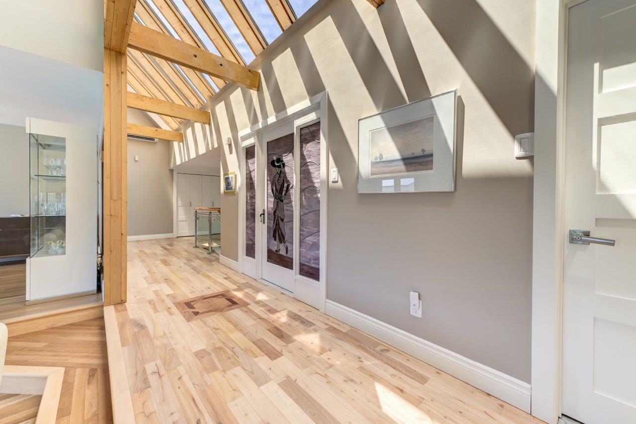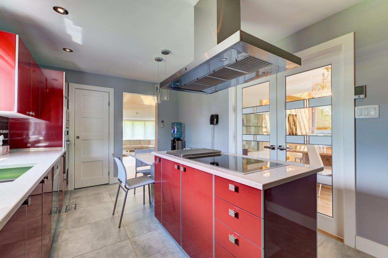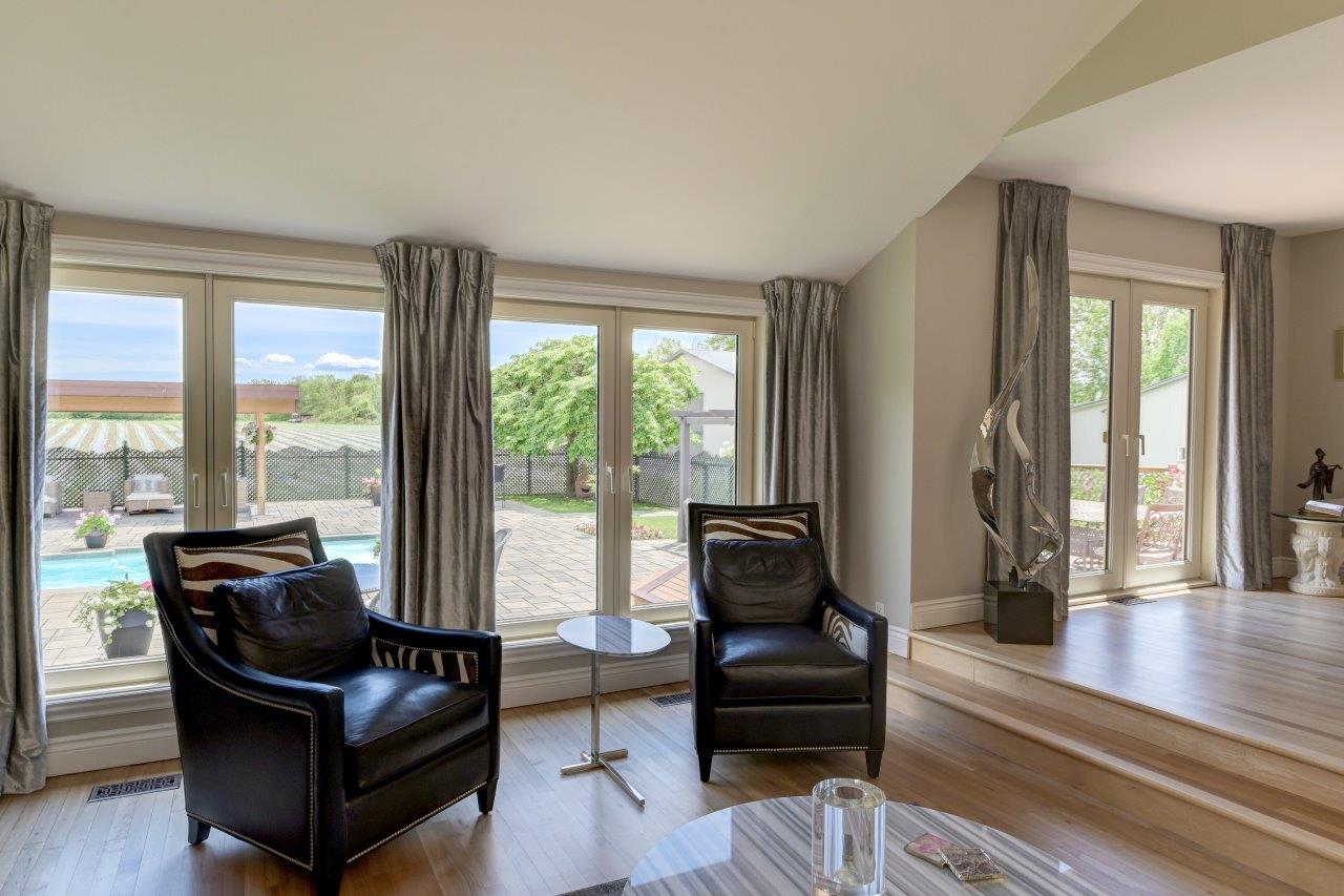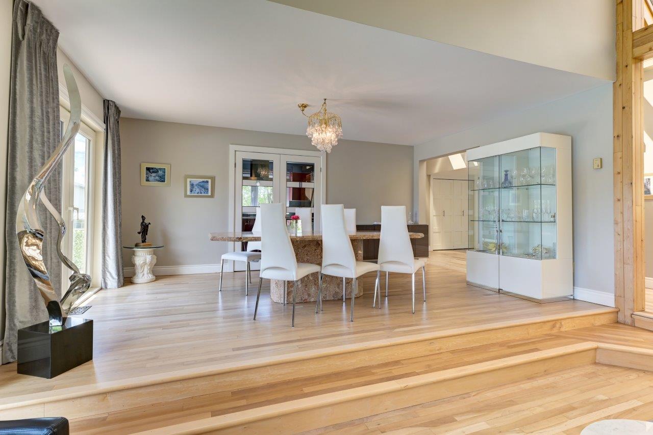 La propriété comprend une élégante résidence de 3 chambres à coucher, qui impressionne dès l’arrivée par sa longue cour circulaire et son spectaculaire aménagement paysager. À l’intérieur, la maison séduit par ses espaces ouverts, sa généreuse fenestration et son ambiance chaleureuse. Le salon est tout simplement remarquable avec ses hauts plafonds, ses puits de lumière et son majestueux foyer en pierres des champs. La cuisine moderne ravira les amateurs de gastronomie grâce à ses comptoirs de quartz, son îlot central et son coin repas intégré. À l’arrière, la cour propose un véritable espace de détente avec une vaste terrasse, plusieurs zones de repos, un sauna à vapeur ainsi qu’une piscine creusée, chauffée et au sel.