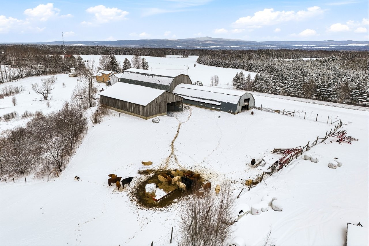 Bury (Estrie) : Nichée dans un rang paisible, cette magnifique ferme ovine et bovine de 123,25 acres (145,89 arpents) représente une opportunité rare pour les passionnés d’agriculture. Offrant un potentiel d’environ 250 brebis mères avec relève, des installations complètes et fonctionnelles, une charmante maison de campagne de 4 chambres, ainsi qu’un environnement naturel exceptionnel avec ruisseau, étang et érablière inexploité, cette propriété combine parfaitement productivité, confort et qualité de vie. Située à seulement 35 minutes de Sherbrooke et 20 minutes de East Angus, elle vous permet de profiter du calme de la campagne tout en demeurant près des services.