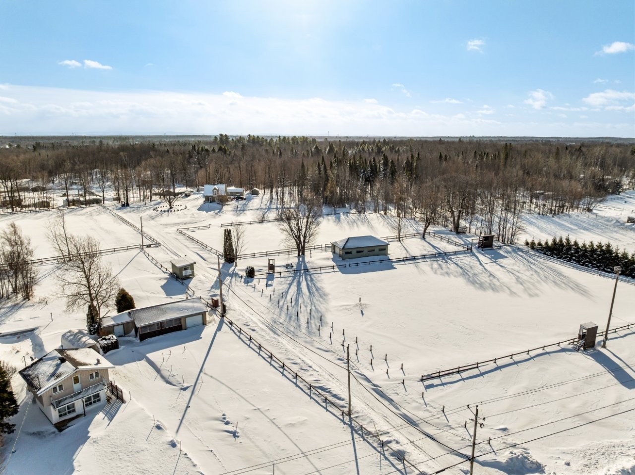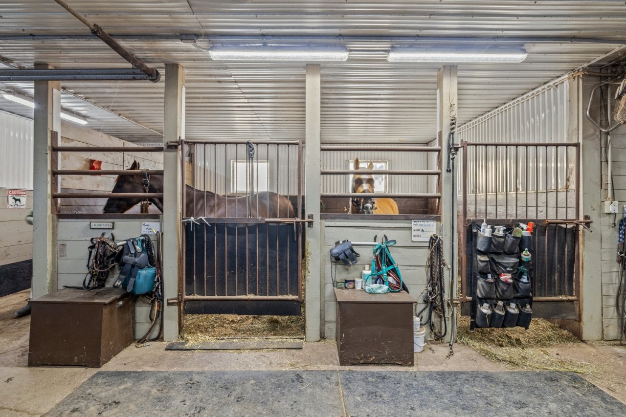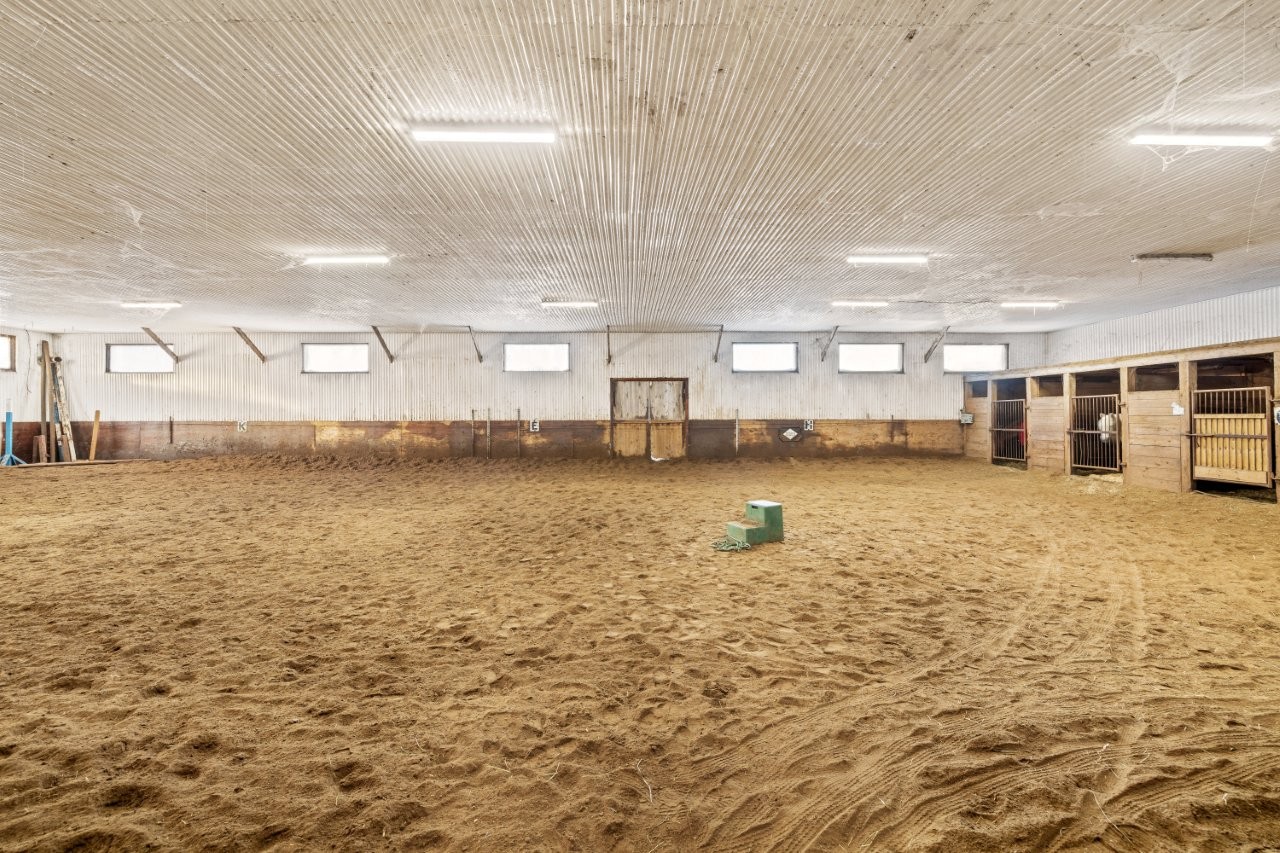 Les installations équestres ont été soigneusement conçues afin de répondre aux exigences de l’entraînement, de l’enseignement et de l’exploitation d’un centre équestre. La propriété comprend deux écuries distinctes, dont une écurie principale de grande dimension offrant 28 boxes (36 x 138 pi), ainsi qu’une seconde écurie plus petite comptant 5 boxes (47 x 18 pi), permettant l’accueil de chevaux en pension et le bon fonctionnement des activités quotidiennes. La plupart des boxes sont de 10 x 12 pi et sur tapis de caoutchouc avec buvette automatique.