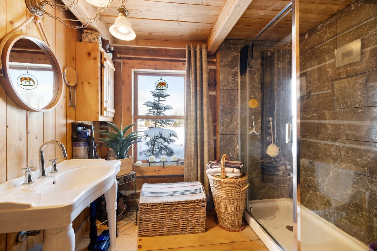 Un sentier équestre aménagé d’environ 4 km fait le tour de la propriété, offrant un cadre idéal pour l’entraînement, les promenades et le bien-être des chevaux, le tout dans un environnement paisible et structuré. En bout de terrain, la rivière Aulneuse traverse la propriété. Un magnifique pont de 54 pieds permet de la franchir facilement, autant à cheval qu’en tracteur, tout en offrant un point de vue exceptionnel sur la rivière et le paysage environnant. Cet aménagement ajoute à la fois un aspect pratique essentiel et un charme indéniable à la propriété.