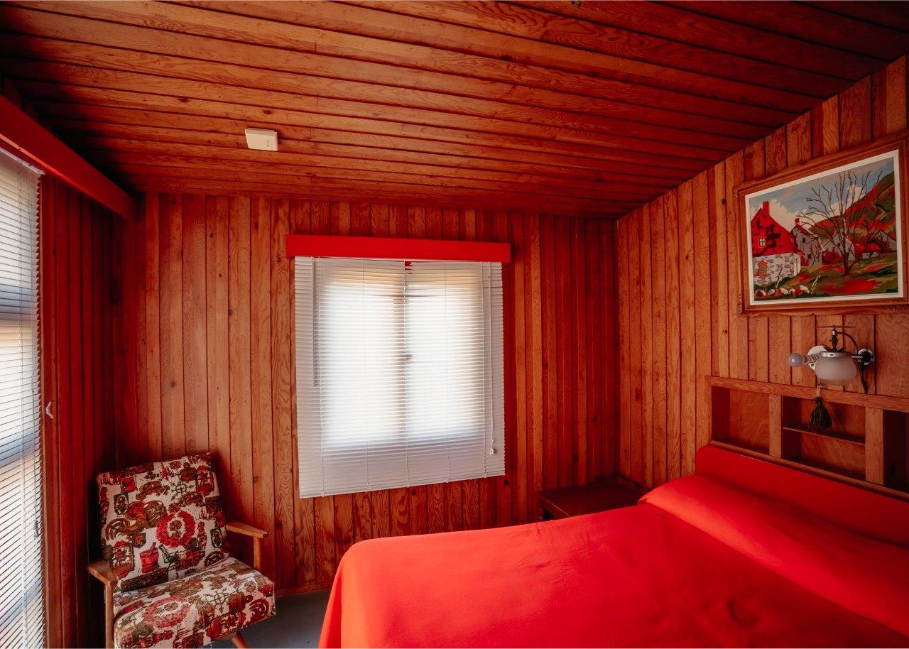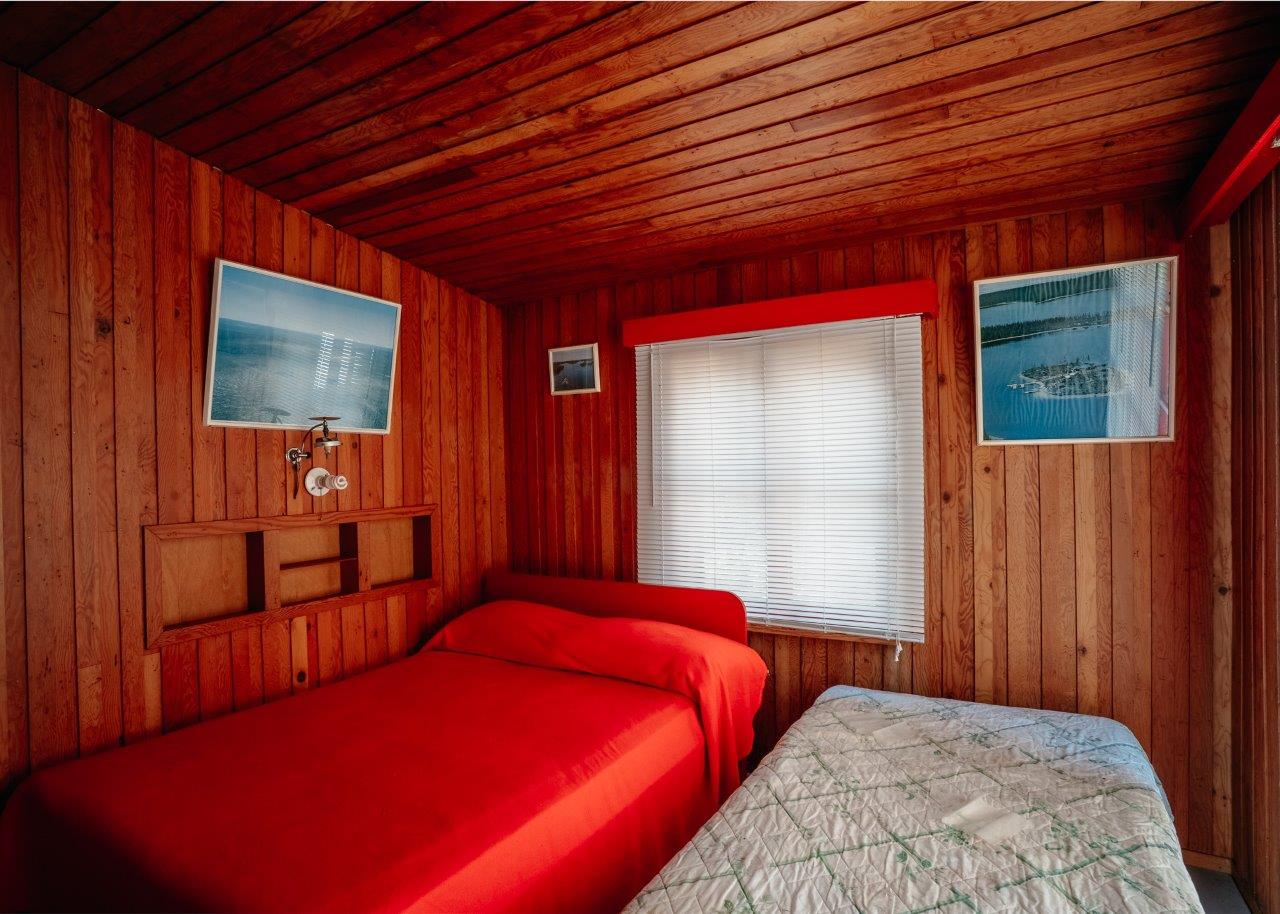 Un chalet rustique se trouve au bord de l’eau, parfait pour les séjours en toute quiétude.