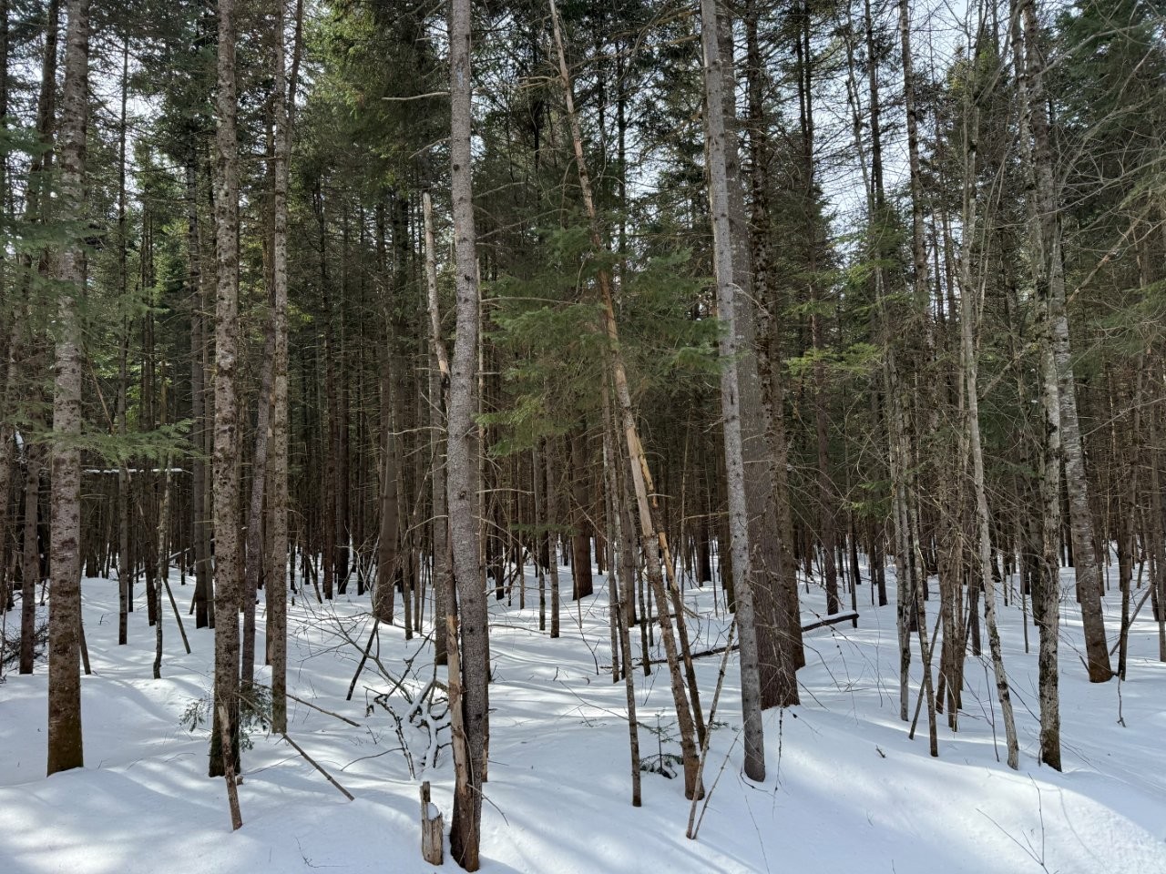 Le terrain présente un bon potentiel forestier avec un mélange d’essences comprenant érable, bouleau, sapin, épinette et pin. On y retrouve également un potentiel acéricole intéressant pour l’aménagement d’une érablière récréative (quelques centaines d’entailles possibles, sans dénombrement officiel).