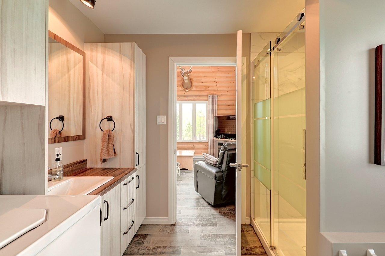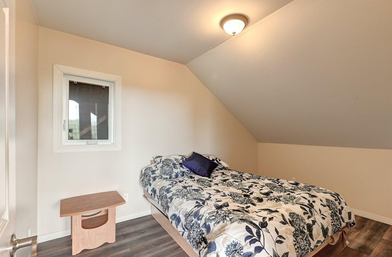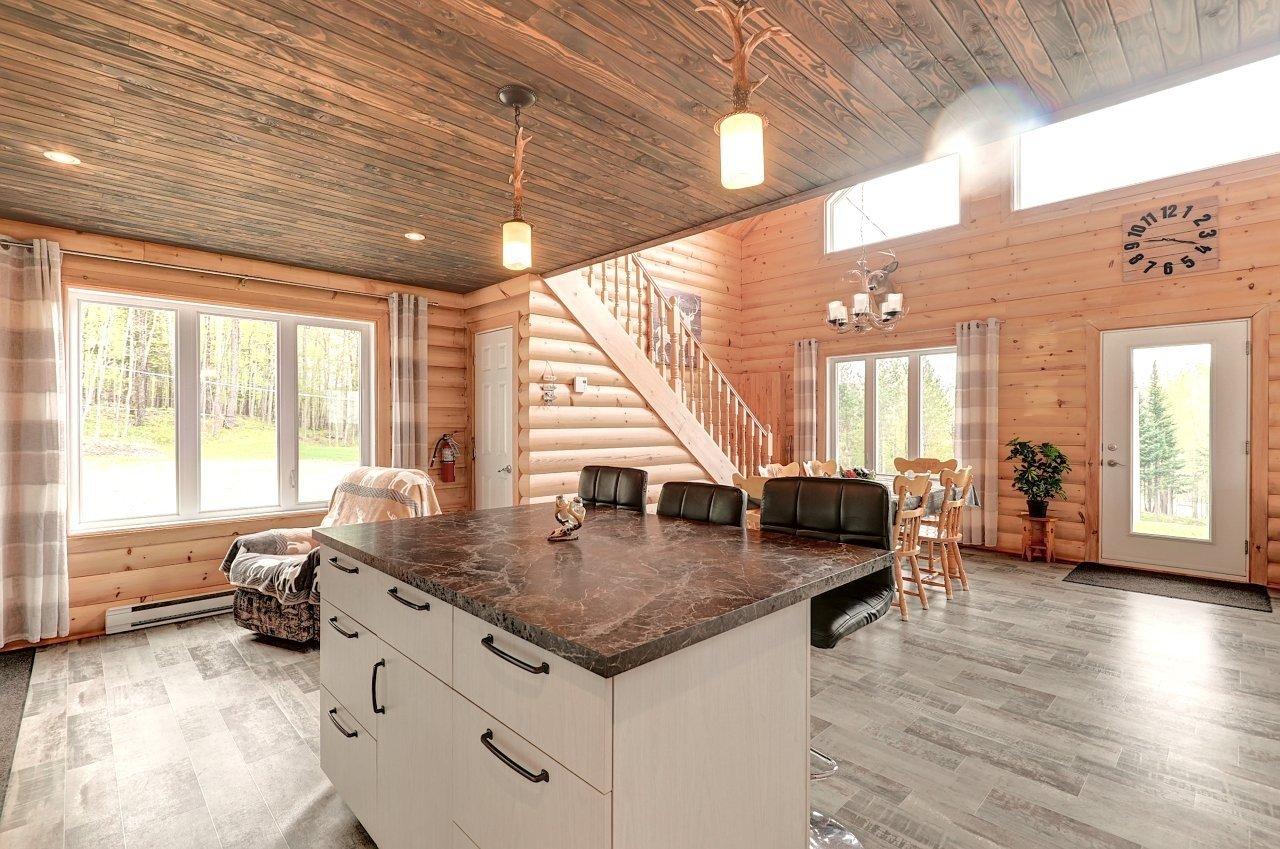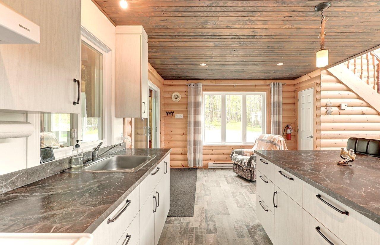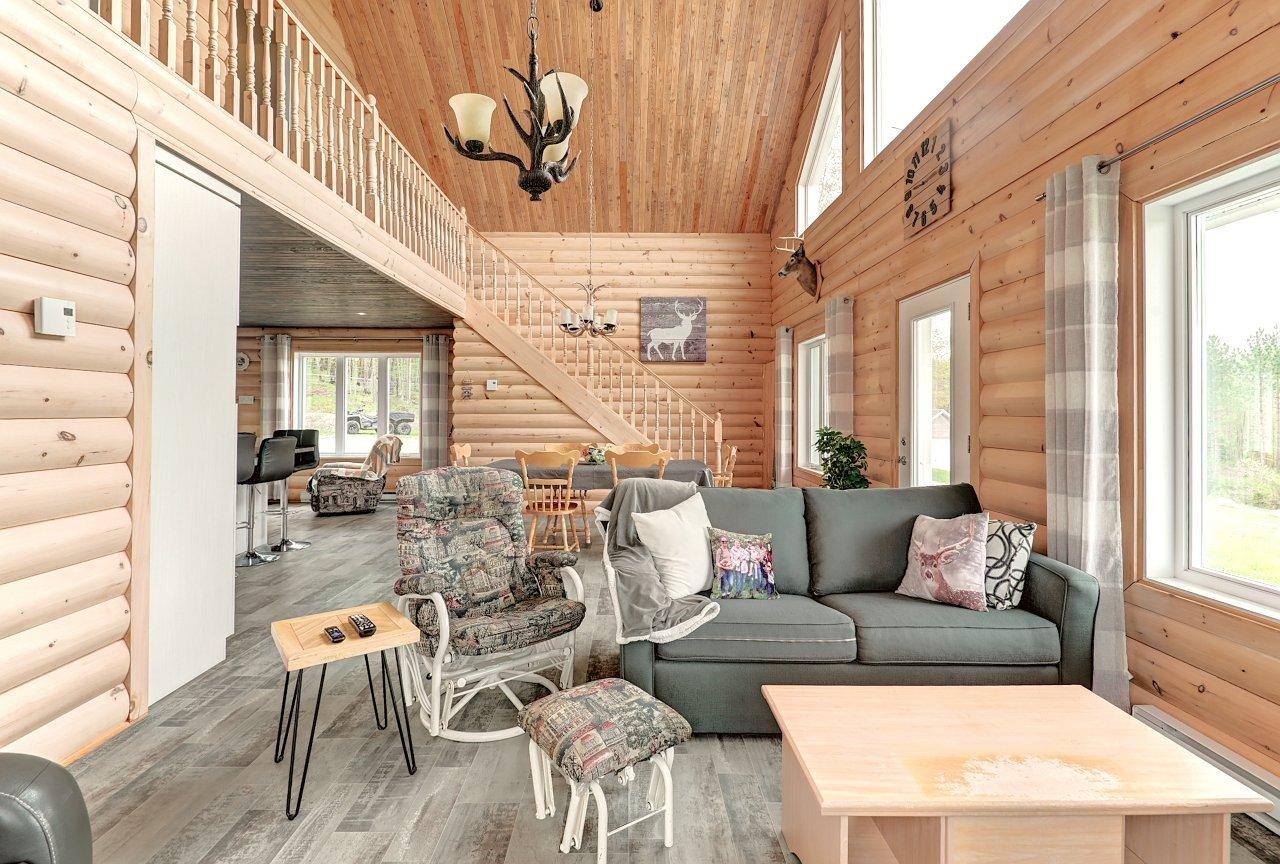 Dominant le paysage, la cabane à sucre offre un espace de vie convivial et lumineux. Elle comprend deux chambres, une salle de bain complète, et une vaste aire ouverte regroupant le salon, la cuisine et la salle à manger. L’intérieur en bois naturel et les grandes fenêtres créent une ambiance chaleureuse avec une vue imprenable sur les environs.