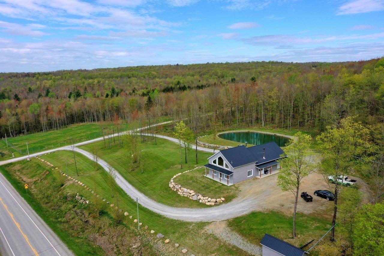 Stoke (Estrie): Découvrez cette magnifique terre de 98,04 acres, située à quelques minutes seulement de Sherbrooke. Dès votre arrivée, vous serez charmé par la vue panoramique sur la région, le lac privé scintillant et les installations acéricoles de grande qualité. Construite en 2018, la cabane à sucre allie confort et fonctionnalité. Elle comprend un espace de repos chaleureux et une aire de production bien équipée. L’érablière dispose d’un contingent de 18 899 lb, avec 4 959 entailles en production (incluant une section en location) et offre un excellent potentiel de croissance. La terre s’étend de part et d’autre de la route : d’un côté, on retrouve le bâtiment principal, le lac et des panoramas saisissants ; de l’autre, un chemin forestier mène à une seconde parcelle boisée, traversée par la splendide rivière Stoke et enjambée par un pont solide. Ce secteur paisible est idéal pour les amoureux de la nature, que ce soit pour se détendre, explorer ou chasser.