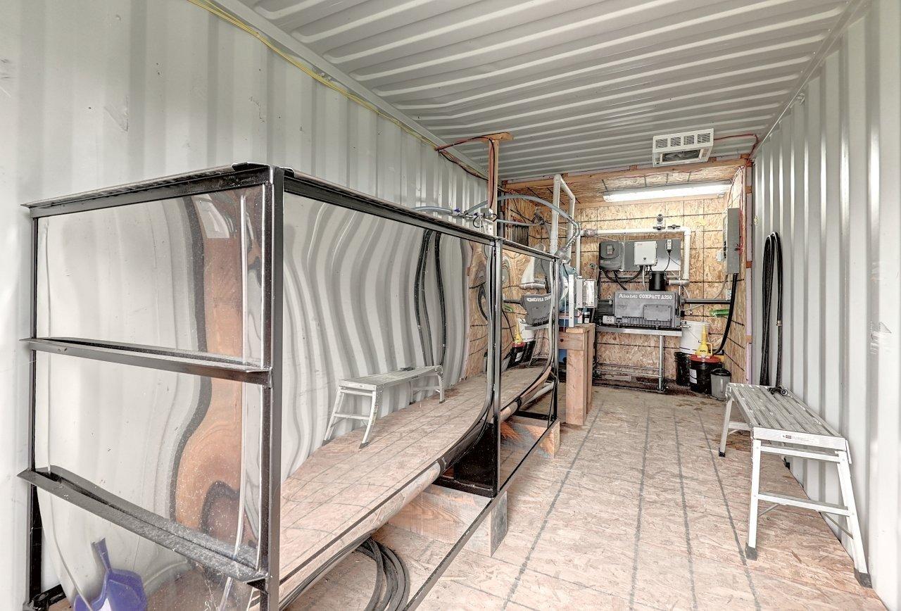 L’aire de production est ouverte, dotée de deux accès extérieurs et d’un plancher en béton. Les installations comprennent :