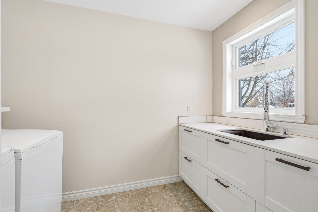 La maison principale, modernisée avec soin, offre trois chambres à coucher, en plus d’un garage double attenant.