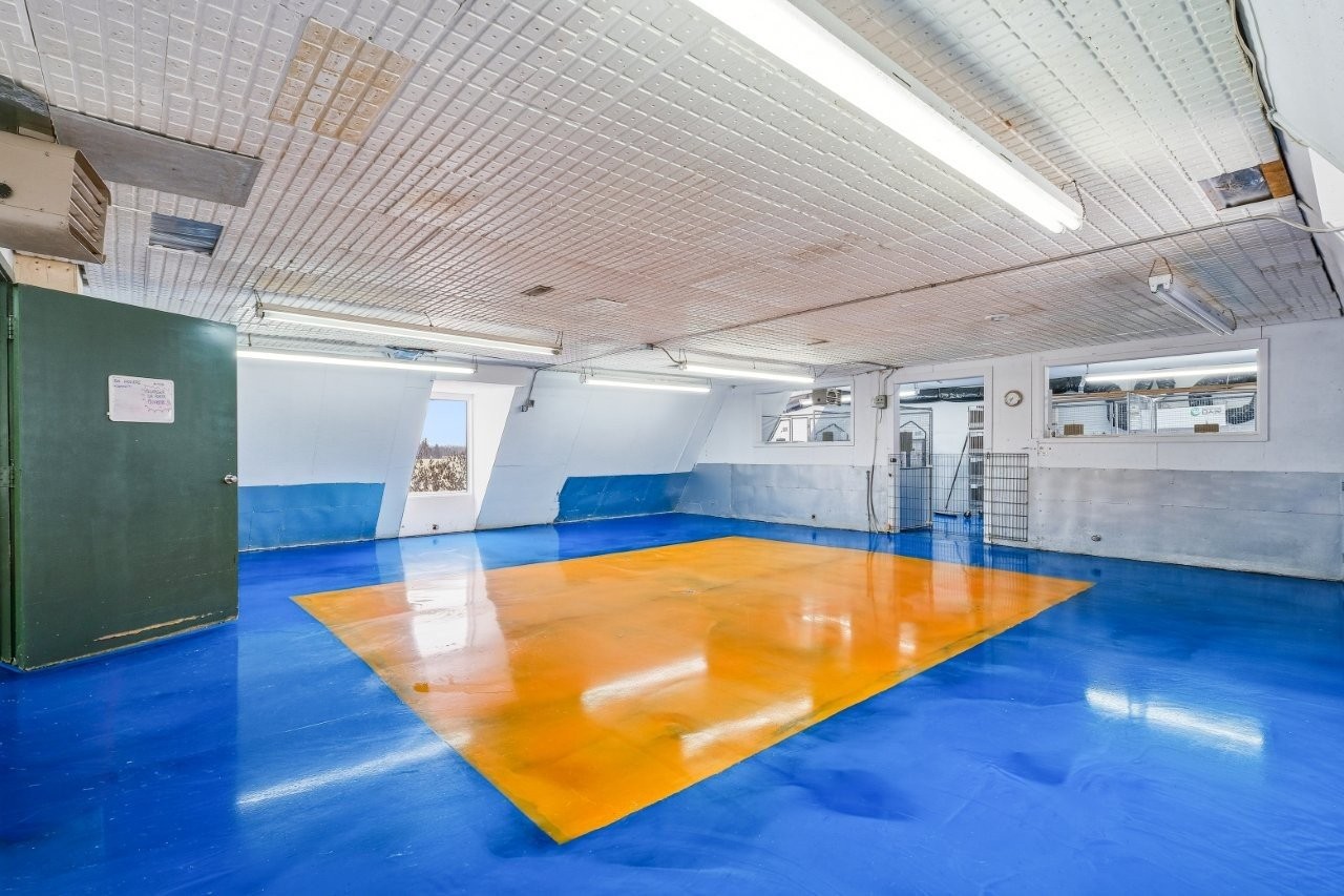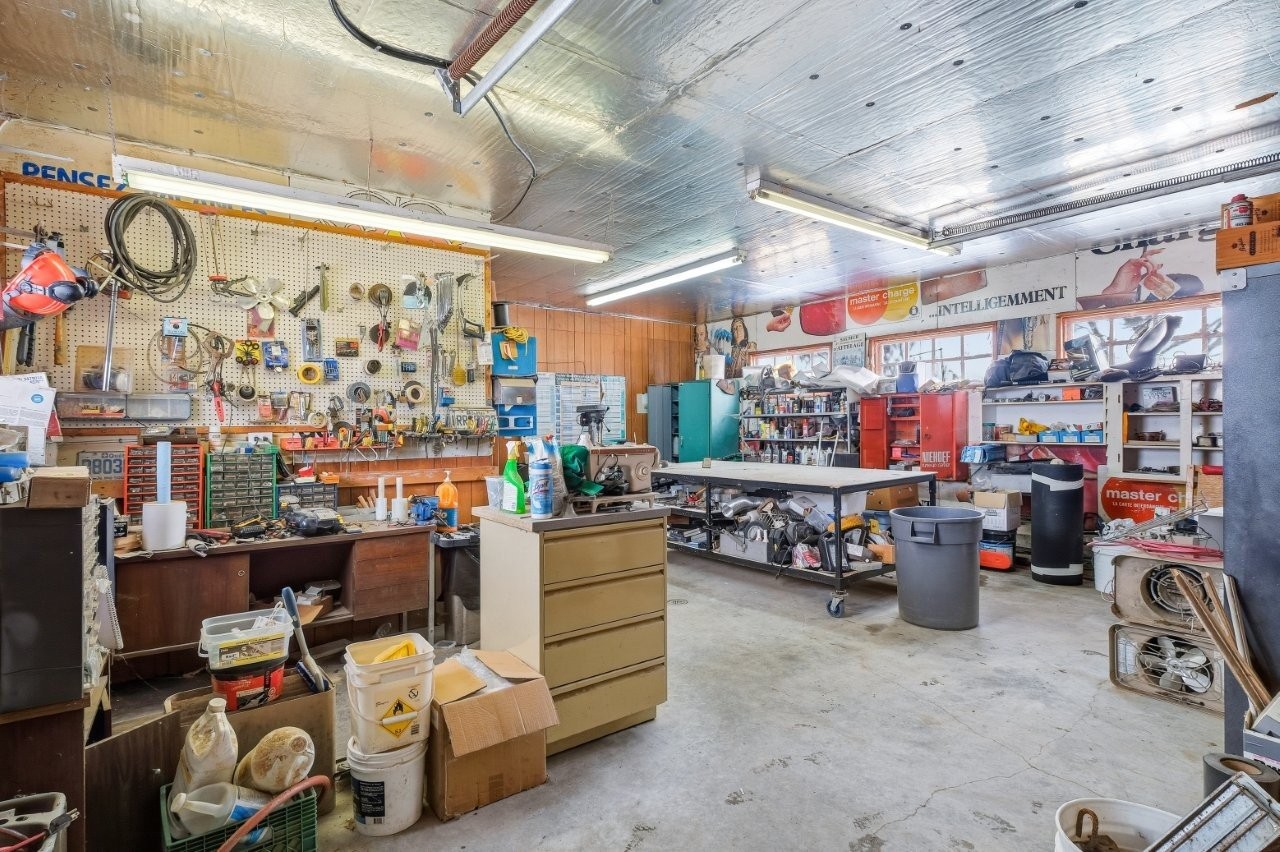 Un garage triple indépendant, muni de trois portes, complète cet ensemble à structure d’acier. De plus, un atelier spacieux, contigu à l’écurie, est aménagé pour l’entretien, les réparations ou divers projets.