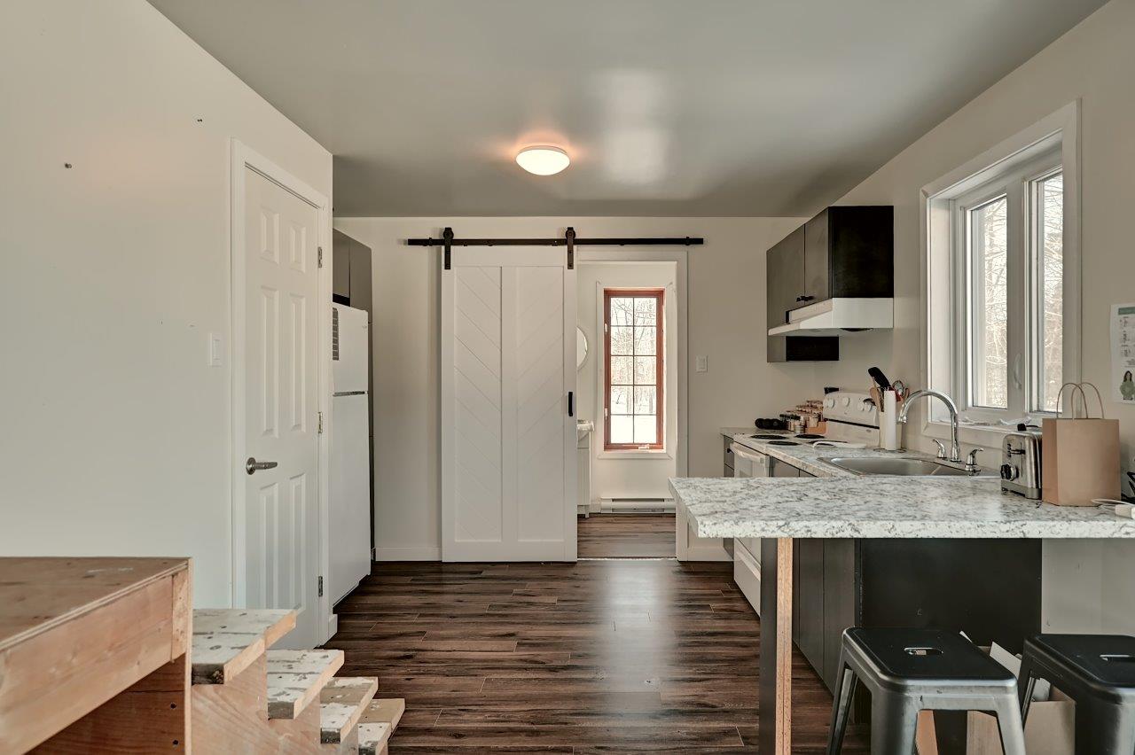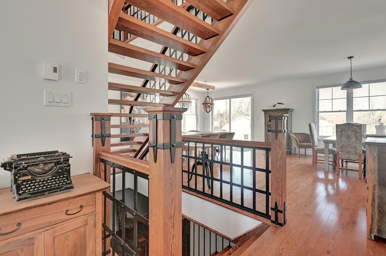 Bâtie en 2016, la résidence haut de gamme de 4 chambres compte près de 2 600 pieds habitables . Vous tomberez sous le charme de sa superbe cuisine avec comptoirs de quartz, cuisinière au gaz et garde-manger en mode walk-in. La cuisine ouvre sur la salle à manger pour une ambiance des plus conviviales. Cette dernière est vaste et vous permettra d’y accueillir de grandes tablées. Le salon, quant à lui, est spacieux et bénéficie d’un foyer au gaz pour une ambiance des plus agréables après une journée en forêt. Ce dernier fait face à un somptueux escalier alliant bois et fer forgé qui s’étend sur une largeur de 5 pieds: une touche splendide qu’on retrouve sur les trois niveaux.