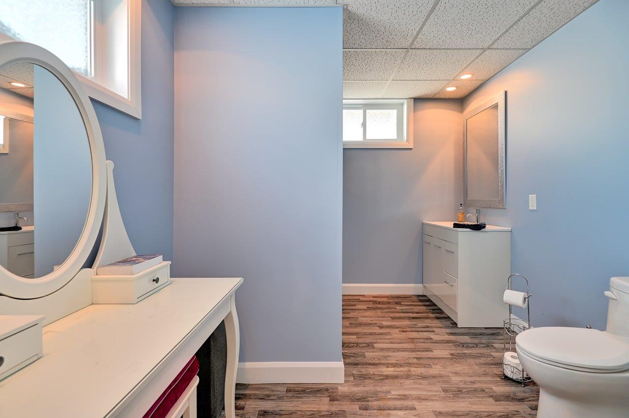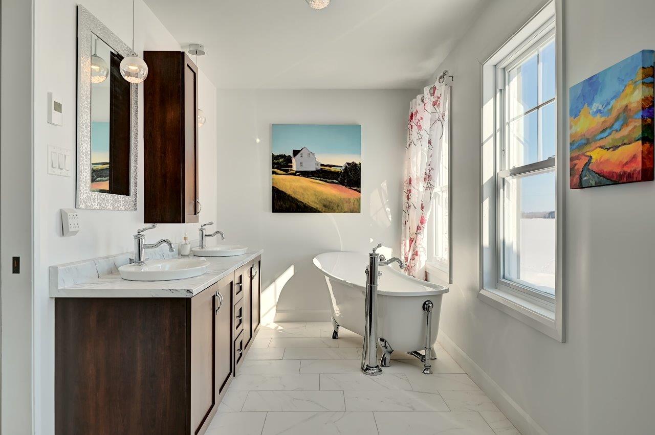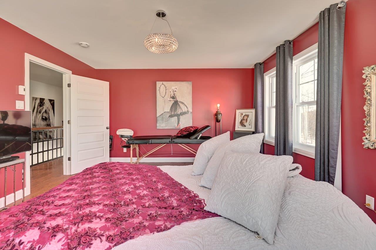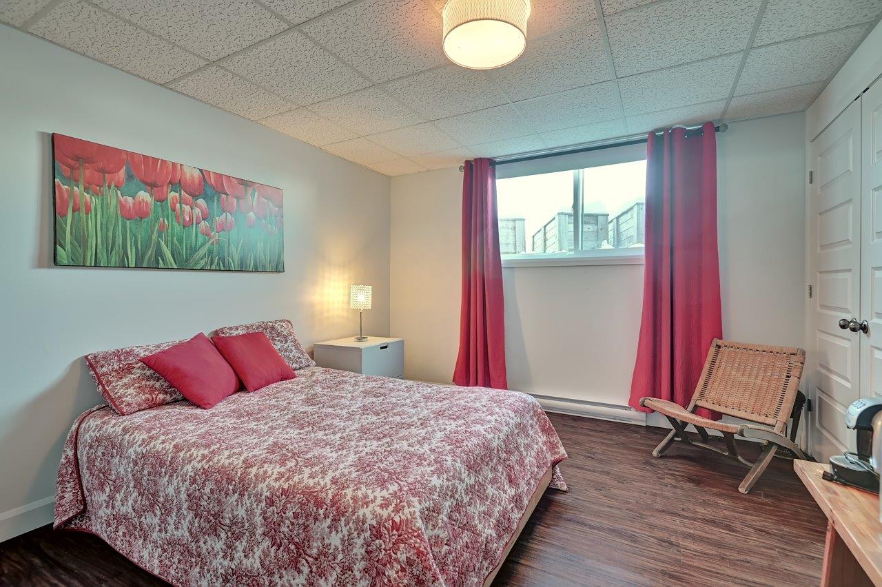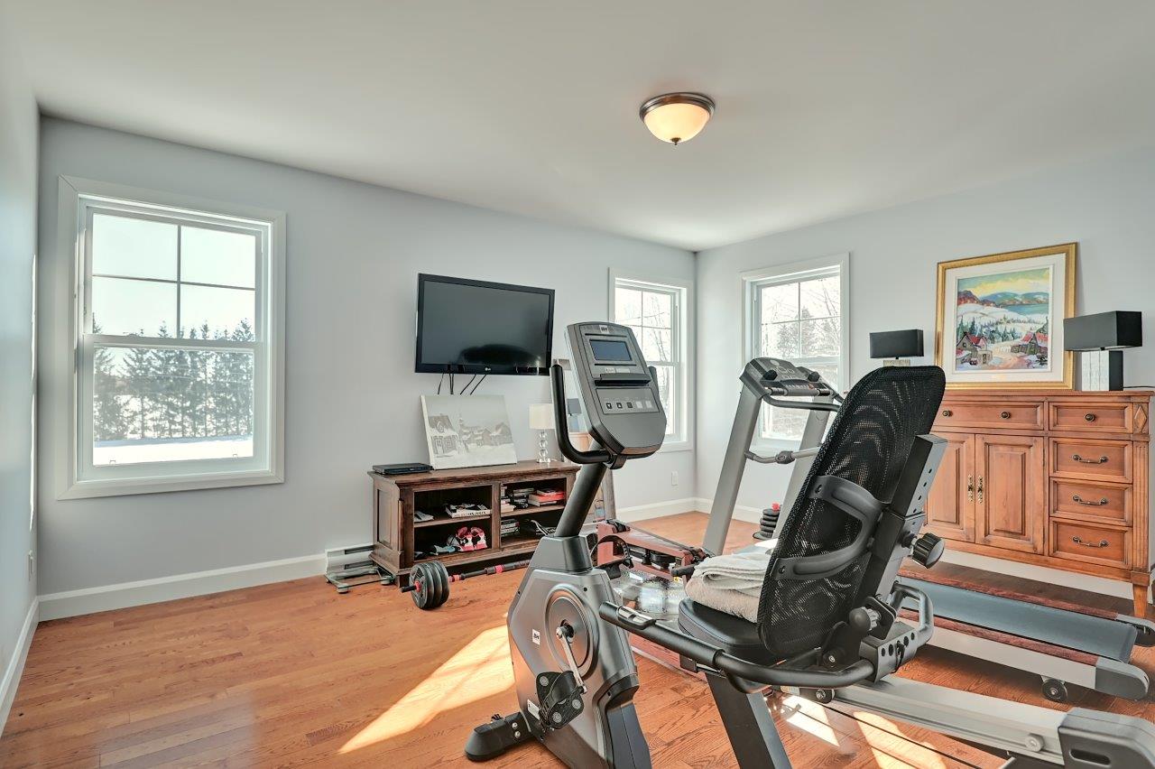 À l’étage du haut se trouvent 2 confortables chambres à coucher avec de grands walk-in, une salle d’entraînement (possibilité de l’utiliser comme chambre à coucher) et une salle de bain complète. Cette dernière est sans compromis avec ses confortables planchers chauffants, son chauffe-serviettes, sa grande douche, son joli bain, sa salle de lavage indépendante et sa toilette fermée!
