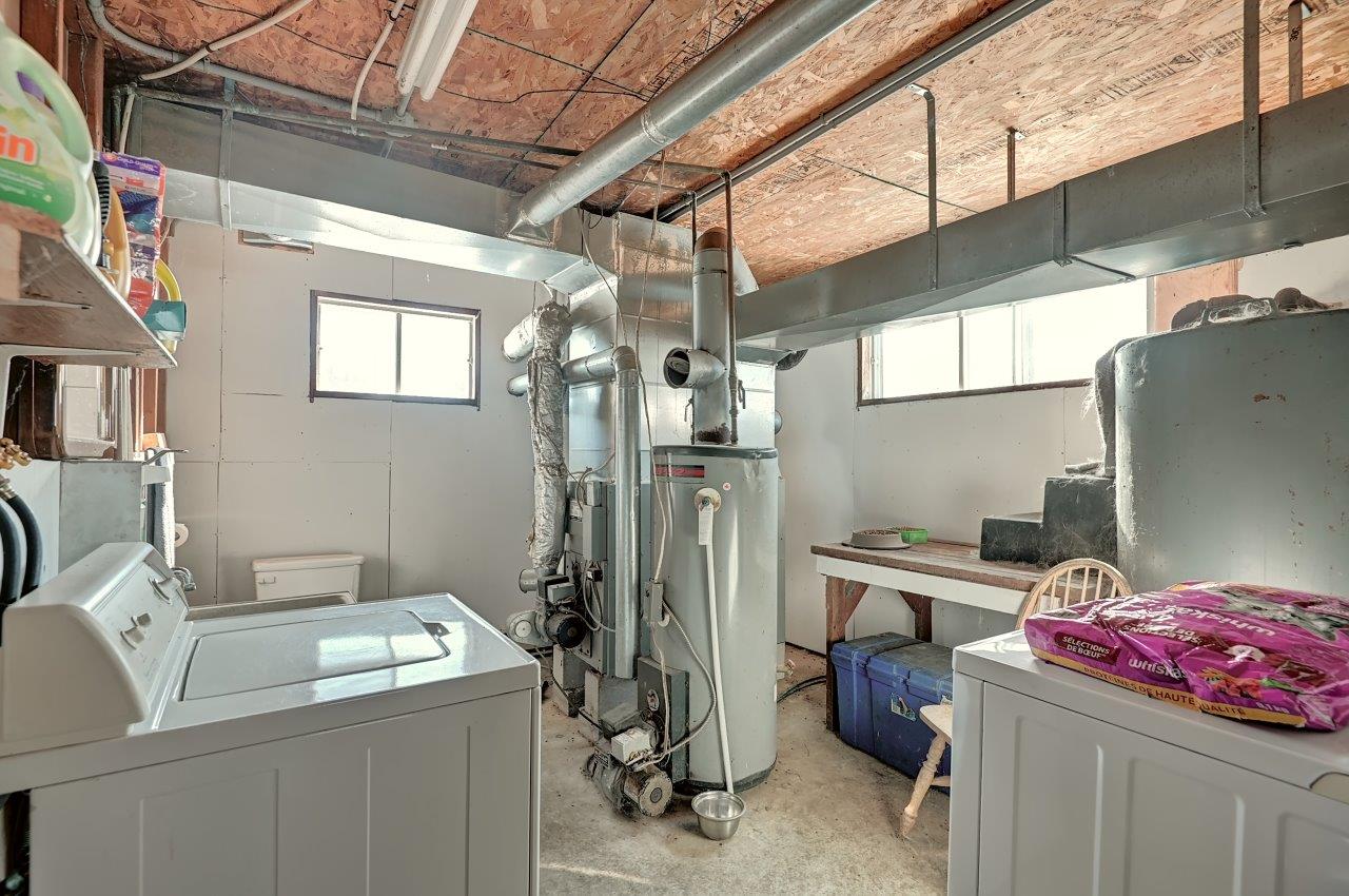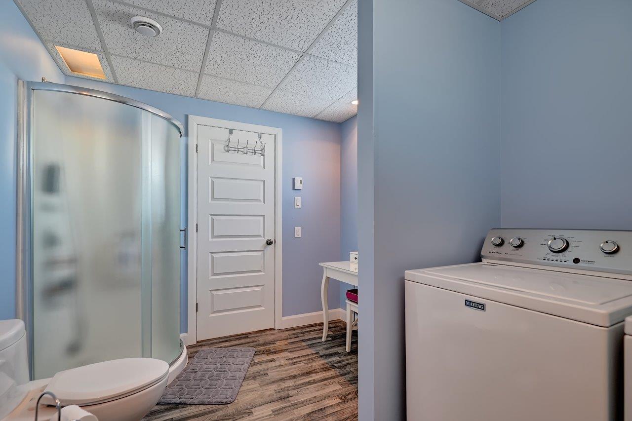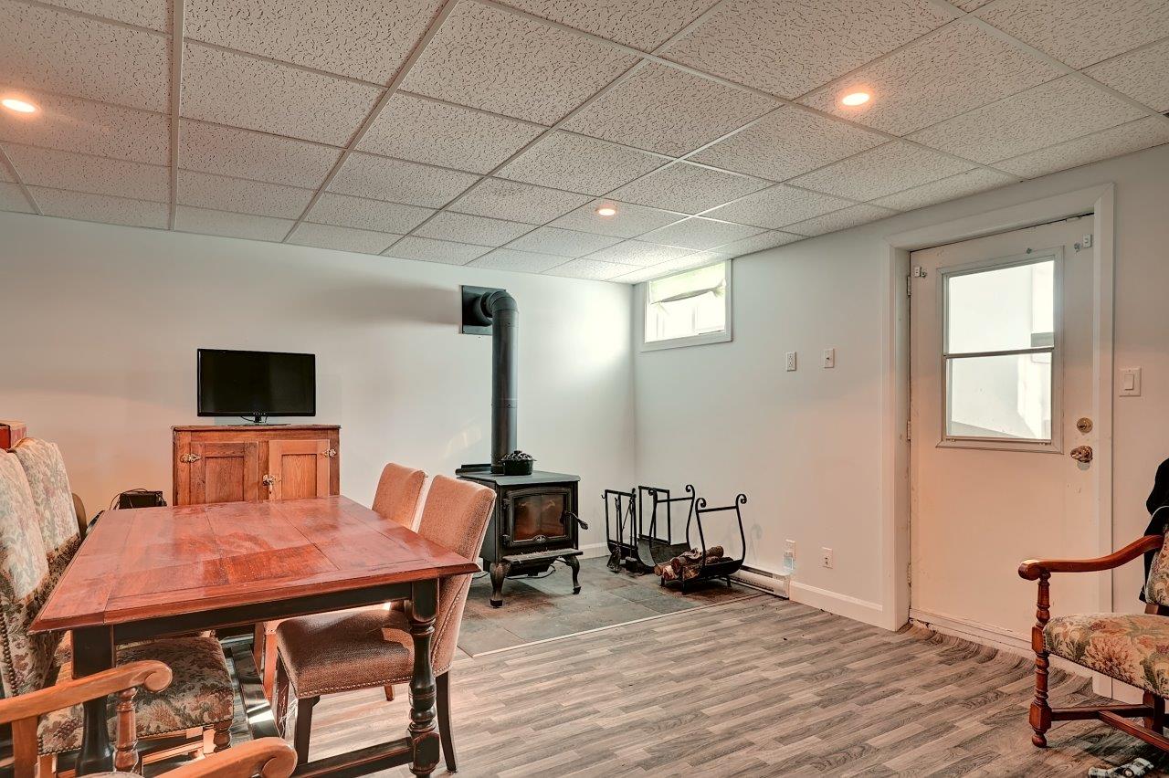 Au sous-sol, on y retrouve une salle familiale avec poêle à combustion lente, deux chambres (l’une d’elle ouverte), une salle de bain complète avec une deuxième salle de lavage pour les vêtements d’écurie, ainsi qu’un vestibule (mudroom), en bonne et due forme.