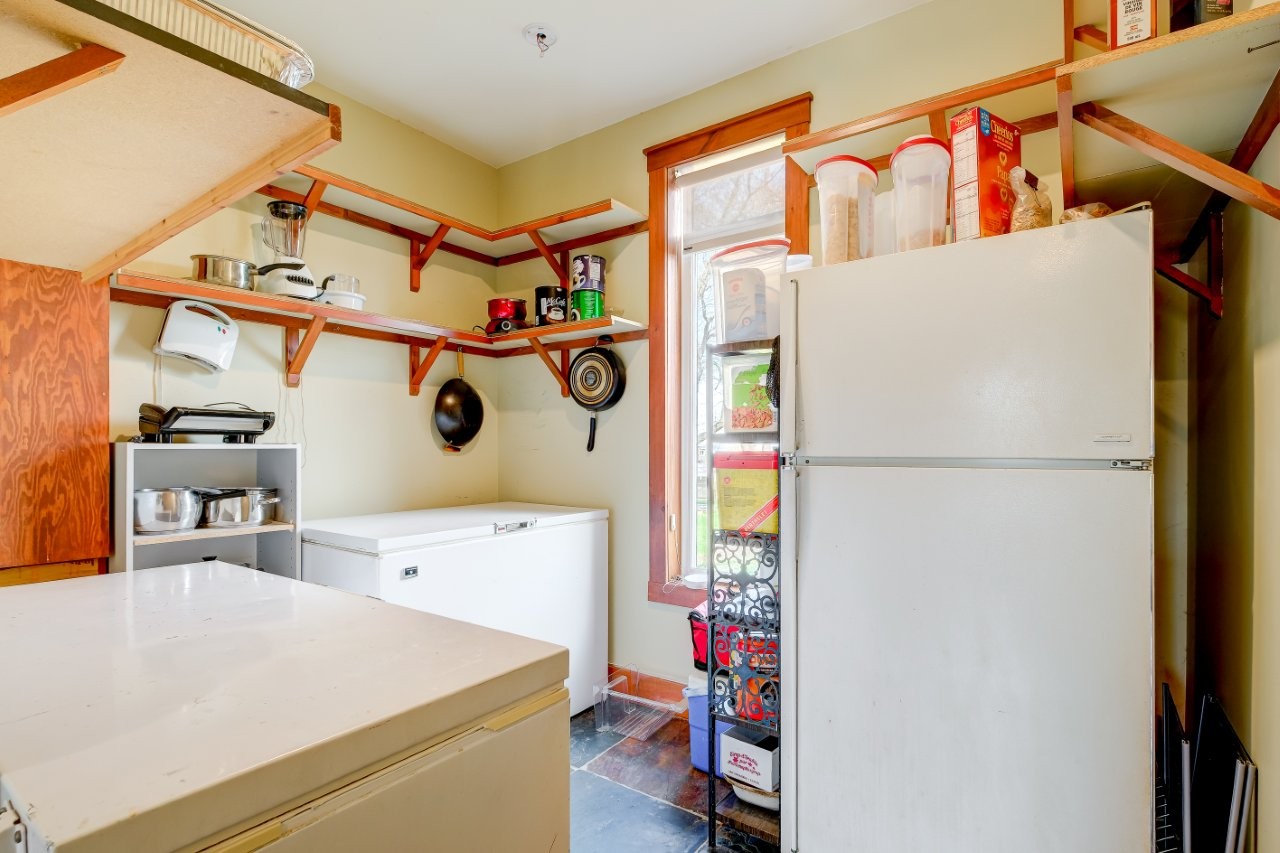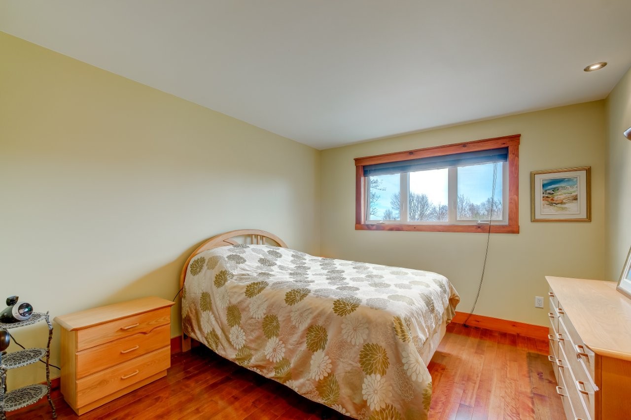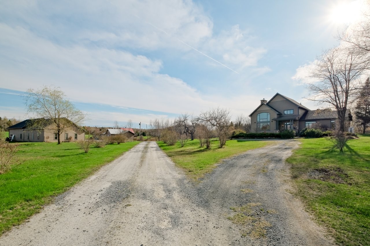 Positionnée en retrait du chemin pour une belle intimité, la maison (2010) a été soigneusement pensée par un designer pour offrir à la fois élégance et fonctionnalité. Spacieuse et lumineuse, elle est dotée de matériaux nobles de qualité et d’un plancher radiant en bois d’ingénierie chauffé à l’aide d’une fournaise au bois Séquoia. On y retrouve deux chambres à coucher, une salle de billard, une cuisine des plus conviviales offrant un grand plan de travail ainsi que plusieurs espaces de rangement bien pensés. Le terrain est décoré d’arbres matures et de beaux aménagements paysagers. Le lac artificiel est ensemencé de truites et constitue une belle source d’eau pour l’arrosage des jardins. Le domaine abrite également une bleuetière d’environ 40 plants et des pommiers ancestraux.