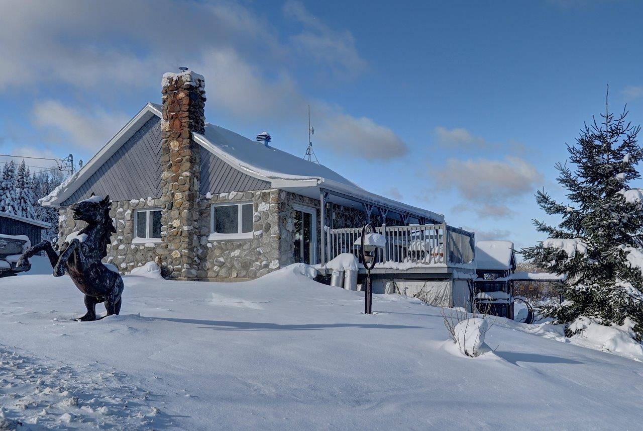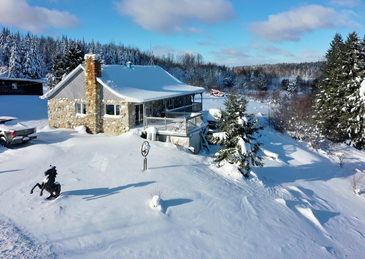 La maison principale, une charmante demeure en pierre des champs, offre un grand confort. Ses 4 chambres spacieuses permettent d’accueillir famille et invités, tandis que la cuisine, avec ses armoires en chêne et son comptoir de granite, combine fonctionnalité et style. À l’extérieur, un garage détaché et une écurie de 5 box avec pâturage élargissent les possibilités pour les amoureux des chevaux ou ceux ayant besoin d’un espace de rangement supplémentaire. Près des bâtiments se trouve un étang de pêche d’une profondeur de 12 pieds, alimenté par le puits de surface. Un second étang se trouve tout au bout du pâturage.