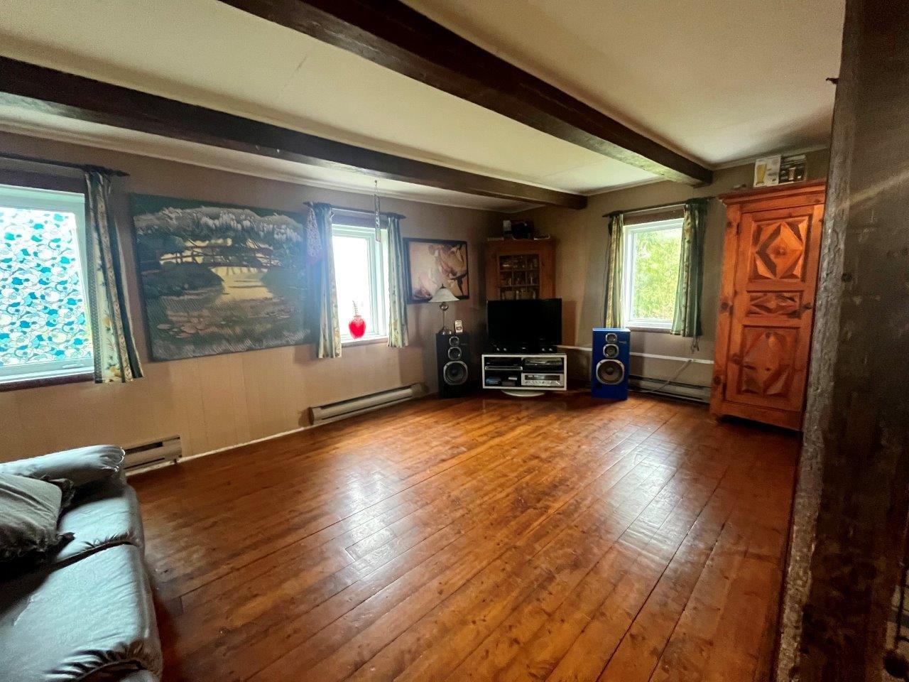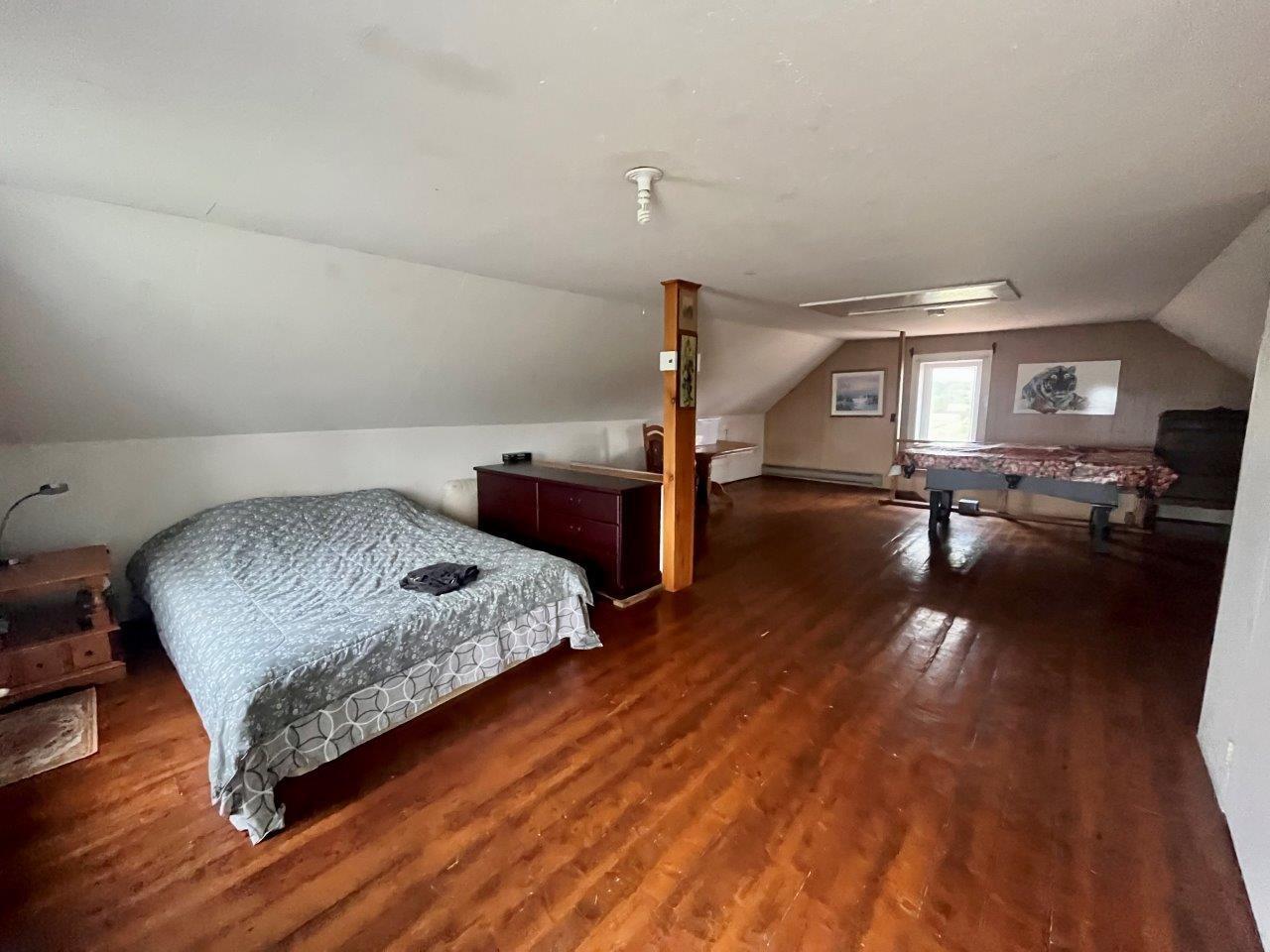 La maison compte une vaste chambre qui occupe la totalité du 2e étage, et un rez-de-chaussée à aire ouverte munie d’un poêle au bois. La résidence est présentement occupée par un locataire et pourra être libérée rapidement au besoin.