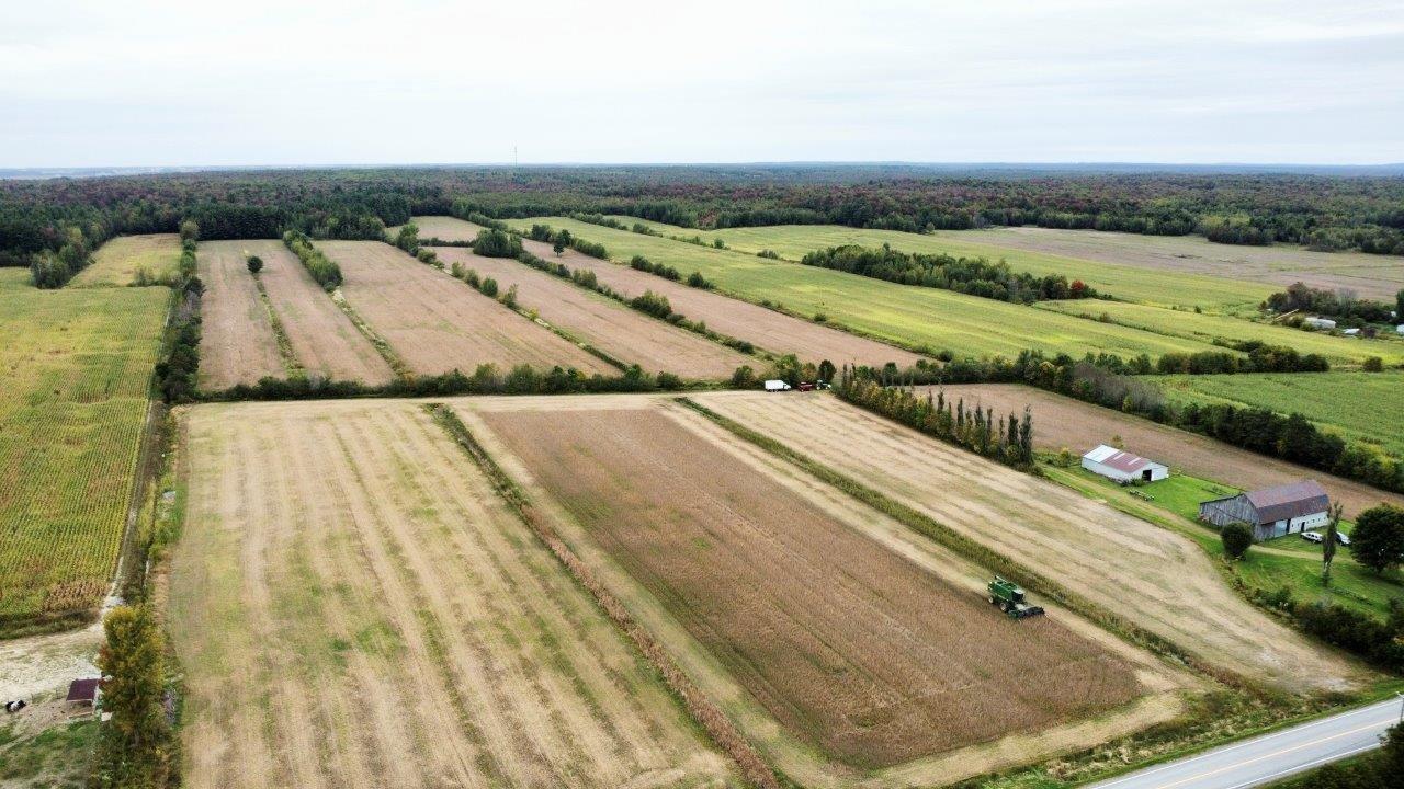Sainte-Cécile-de-Milton (Estrie): Cette propriété de 103,68 acres propose une superficie cultivable d’environ 59 acres (24 ha), une forêt mixte, une maison de campagne et deux bâtiments agricoles.