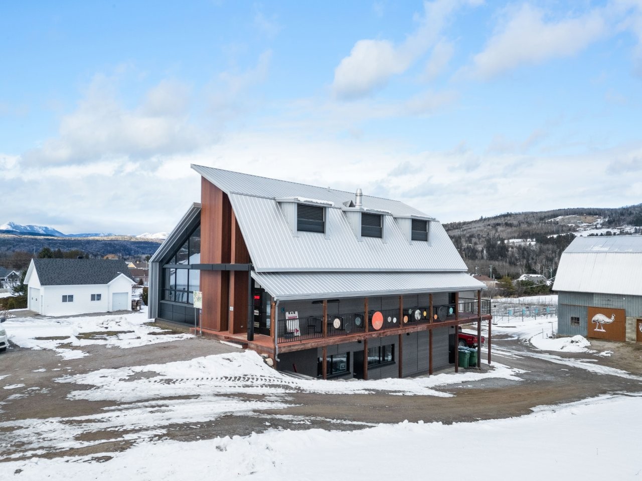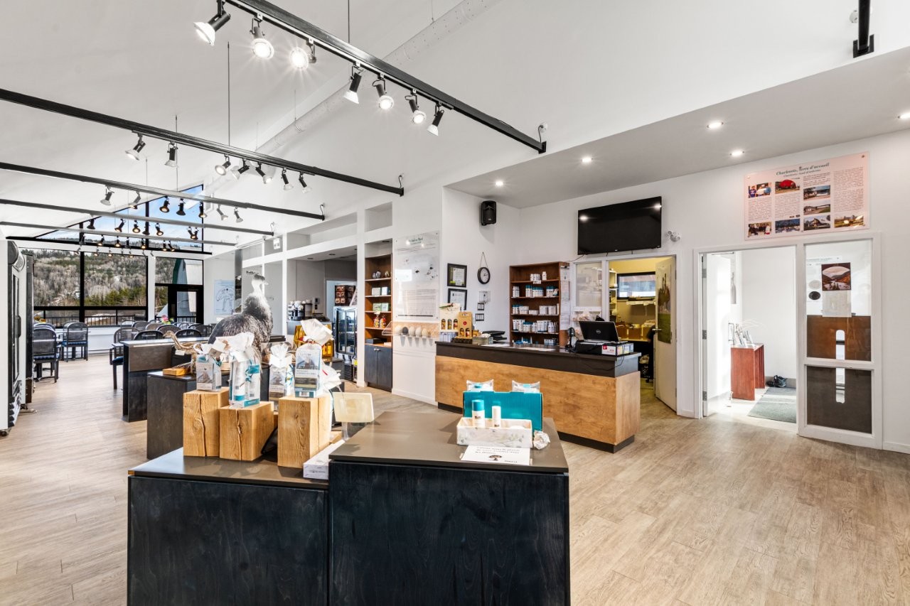 Le Centre de l’émeu de Charlevoix, véritable lieu de mise en valeur de cette expertise, prend place dans un bâtiment moderne érigé en 2018. Conçu comme un économusée, il propose une boutique chaleureuse, une aire de repas accueillante, des bureaux administratifs lumineux ainsi qu’une superbe terrasse donnant sur un panorama montagneux exceptionnel. Bâti sur des fondations en béton armé et respectant les normes antisismiques, l’édifice allie durabilité, esthétisme et efficacité.