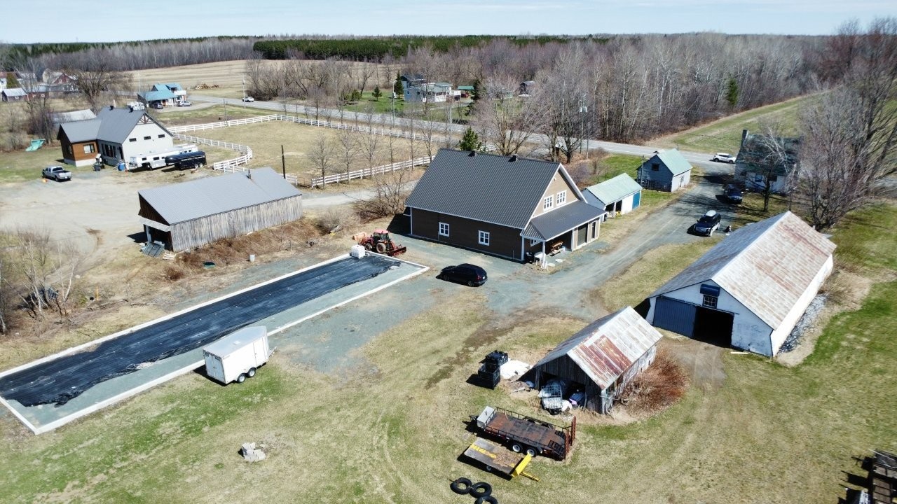 Plusieurs bâtiments polyvalents permettant d’envisager différentes utilisations : une grange de 85 x 30 pi, un garage double de 36 x 16 pi, un cabanon deux étages de 26 x 18 pi ainsi qu’un poulailler de 14 x 30 pi.