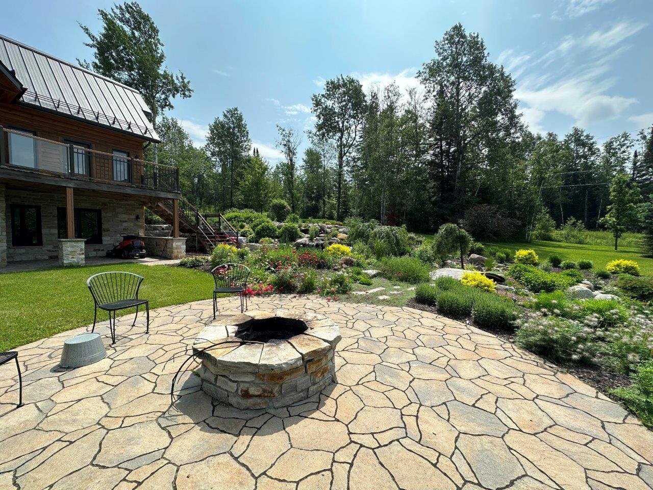 À l’extérieur, les galeries en cèdre avec rampes en verre et aluminium apportent un charme indéniable à l’ensemble. Le lac privé, d’une profondeur de 22 pieds constitue un lieu de détente privilégié. Entouré de magnifiques aménagements paysagers, il est parfait pour l’ensemencement ou tout simplement pour profiter du calme environnant. Les aménagements extérieurs incluent également une pergola avec eau et électricité, un ruisseau bordant la propriété et une terrasse en pavé uni offrant une vue imprenable. Les 22 pommiers qui ornent le domaine ajoutent une touche bucolique à ce cadre unique, surtout au printemps lorsque les arbres sont en fleurs. Une prise électrique pour spa est également disponible pour compléter cet espace de détente.