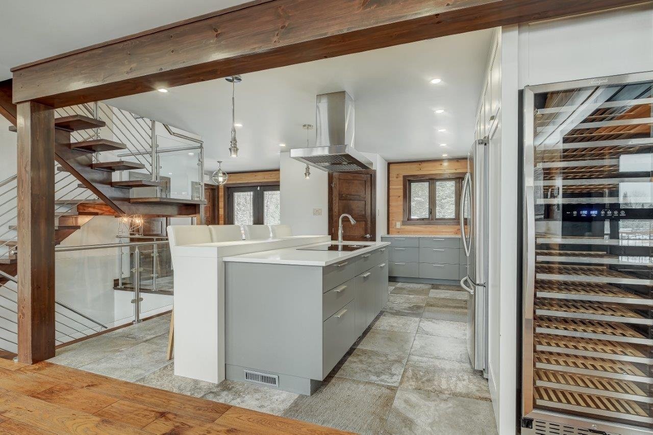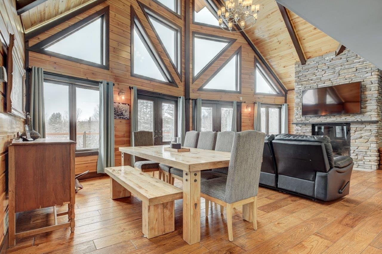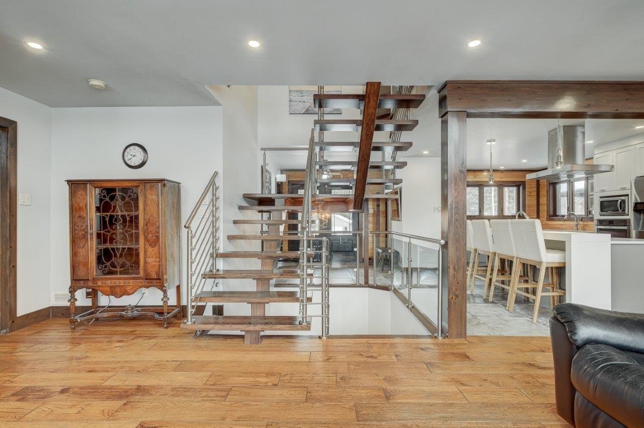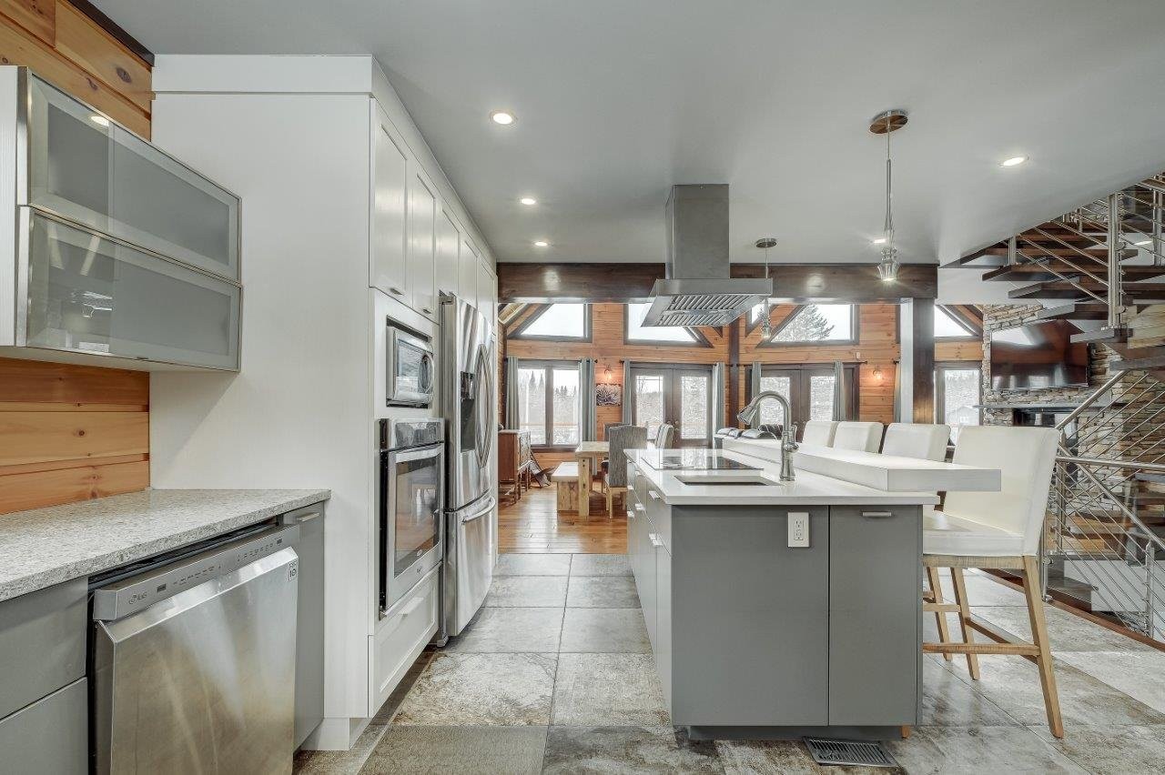 Construite en 2015, cette demeure se distingue par son design raffiné et ses finitions impeccables. Dès l’entrée, le salon à plafond cathédrale de 18 pieds impressionne par sa grandeur et son foyer en pierre à combustion lente qui réchauffe l’atmosphère. Les grandes fenêtres baignent l’intérieur de lumière naturelle, soulignant l’élégance et le confort des espaces de vie.
