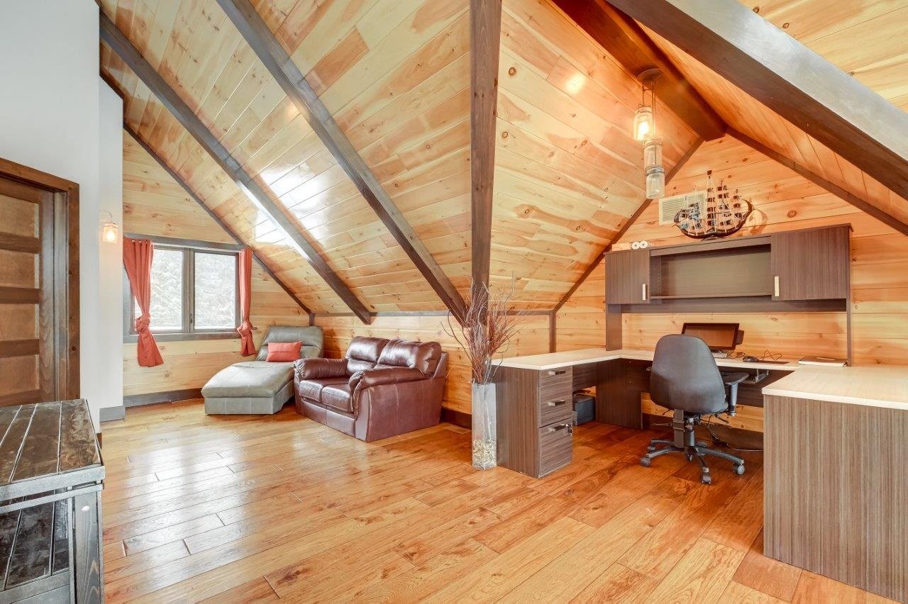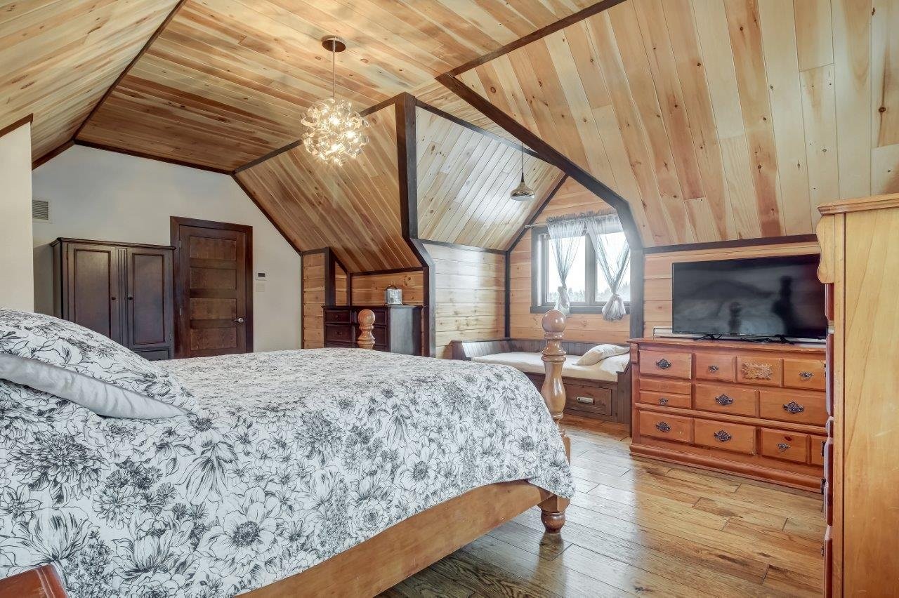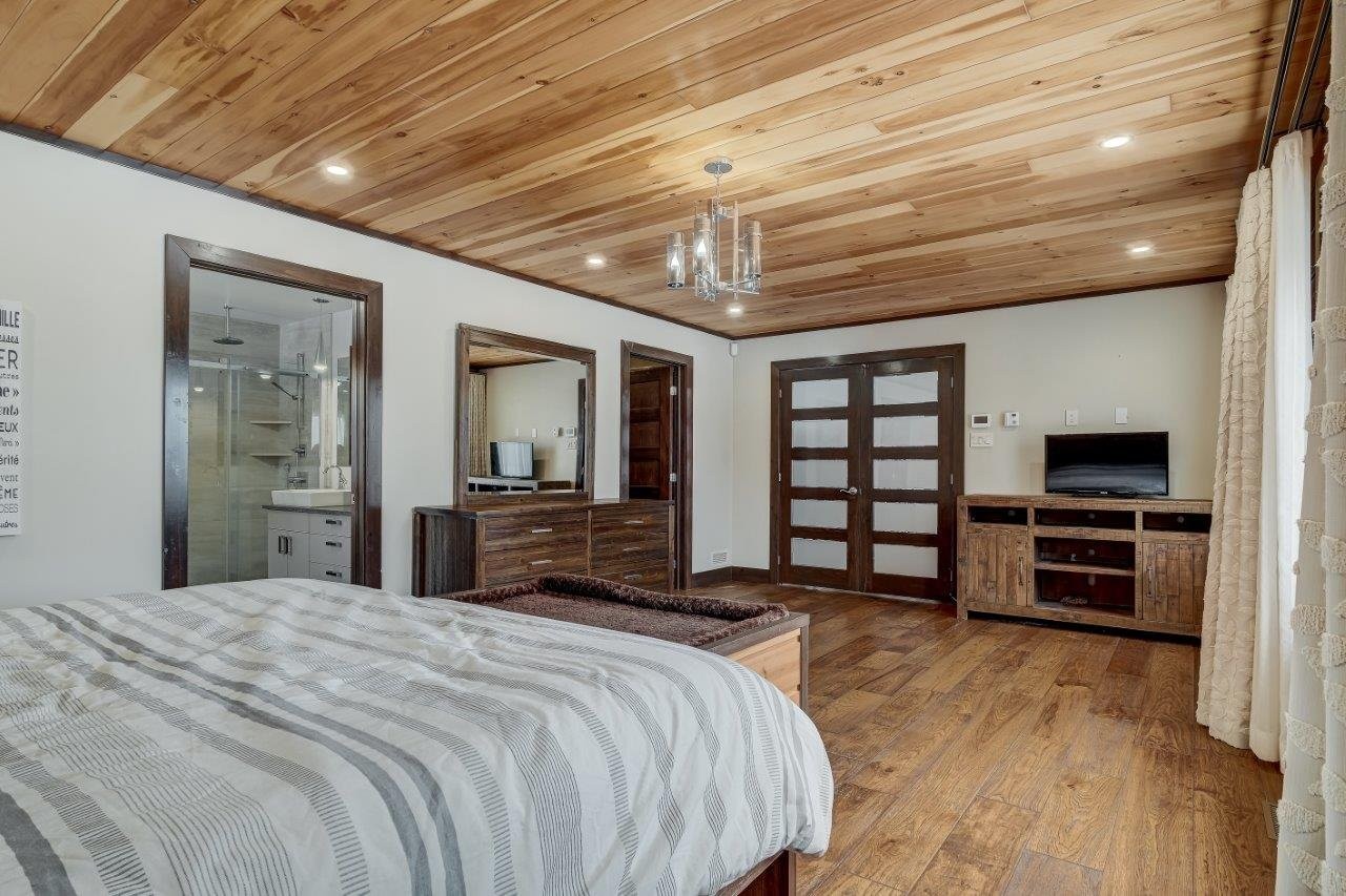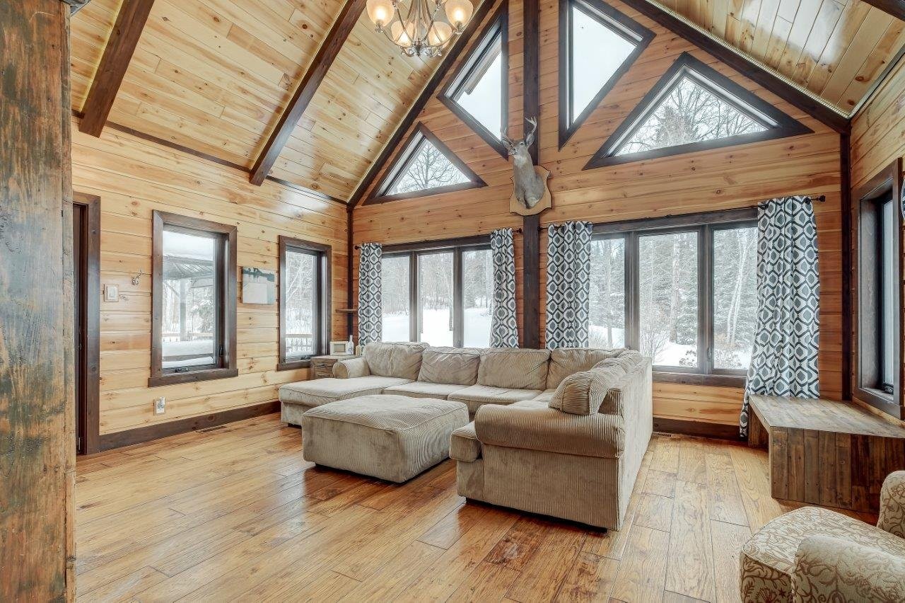 Construite en 2015, cette demeure se distingue par son design raffiné et ses finitions impeccables. Dès l’entrée, le salon à plafond cathédrale de 18 pieds impressionne par sa grandeur et son foyer en pierre à combustion lente qui réchauffe l’atmosphère. Les grandes fenêtres baignent l’intérieur de lumière naturelle, soulignant l’élégance et le confort des espaces de vie.