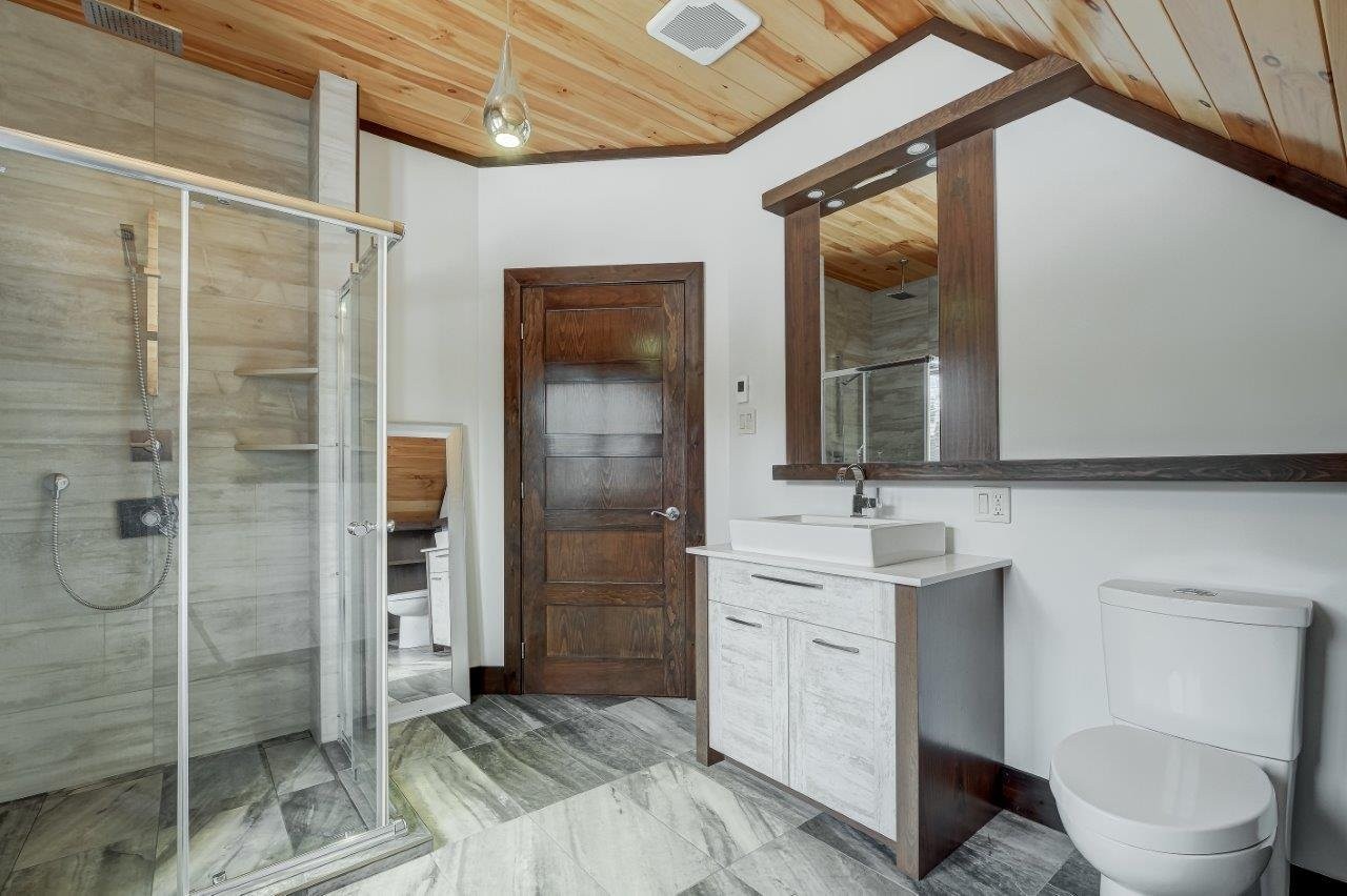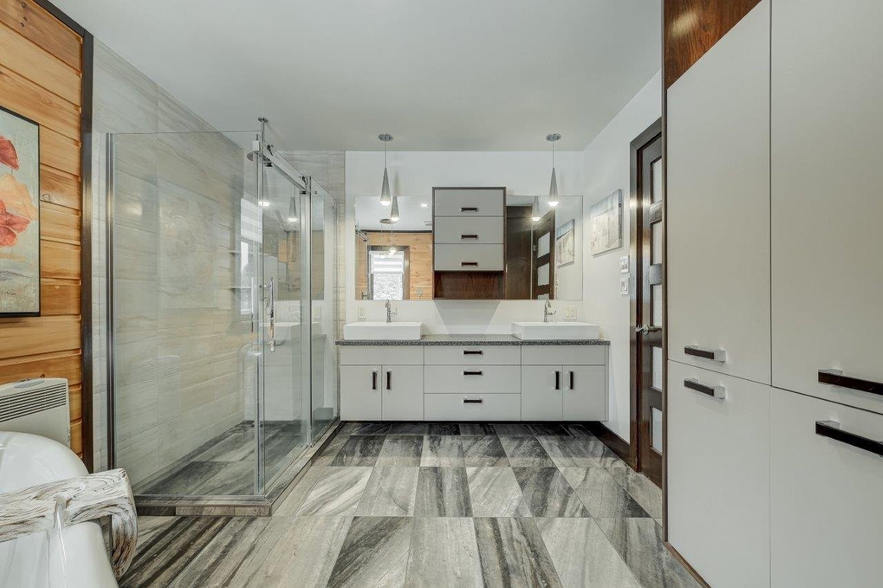 Pensée pour offrir un confort maximal, cette maison est dotée de planchers chauffants sur tous les niveaux et d’un système d’éclairage DEL géré par domotique. Un système audio haute fidélité et un coffre-fort ventilé avec échangeur d’air indépendant font également partie des nombreuses commodités haut de gamme proposées.