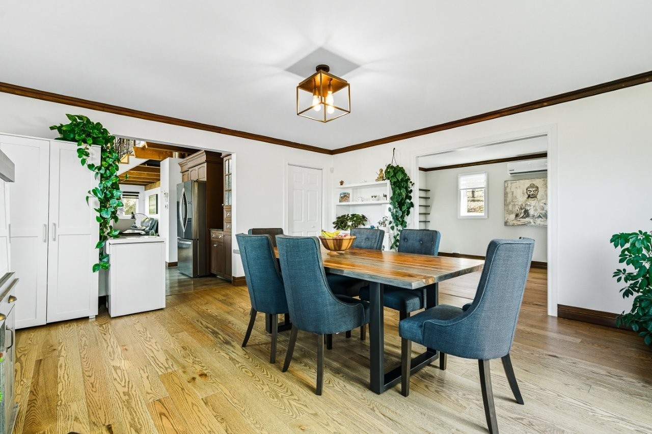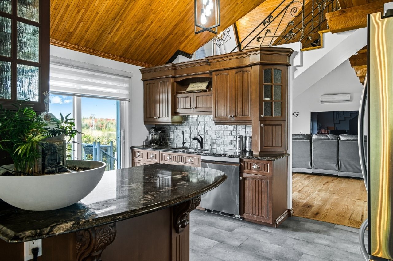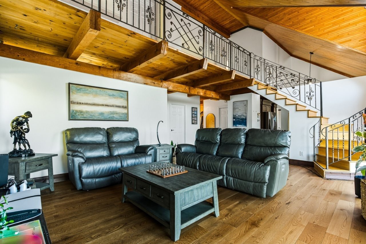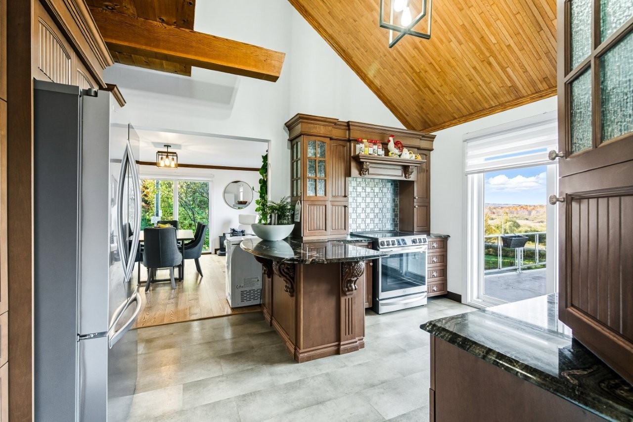 La vaste maison propose 4 chambres à coucher et 2 salles de bain complètes. La cuisine haut de gamme séduira les amateurs de gastronomie grâce à ses comptoirs de granite, ses armoires en bois offrant un vaste rangement et son aménagement aussi esthétique que fonctionnel. Le tout s’ouvre sur un espace de vie lumineux, où les plafonds en chêne verni de 16 pieds ajoutent chaleur et caractère à l’ensemble. L’abondante fenestration inonde chaque pièce de lumière naturelle, créant une atmosphère accueillante et apaisante.