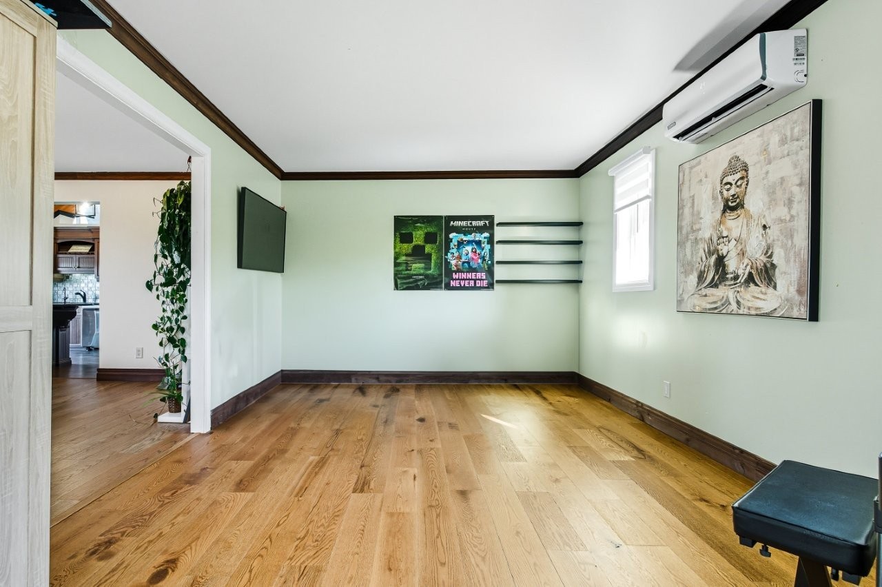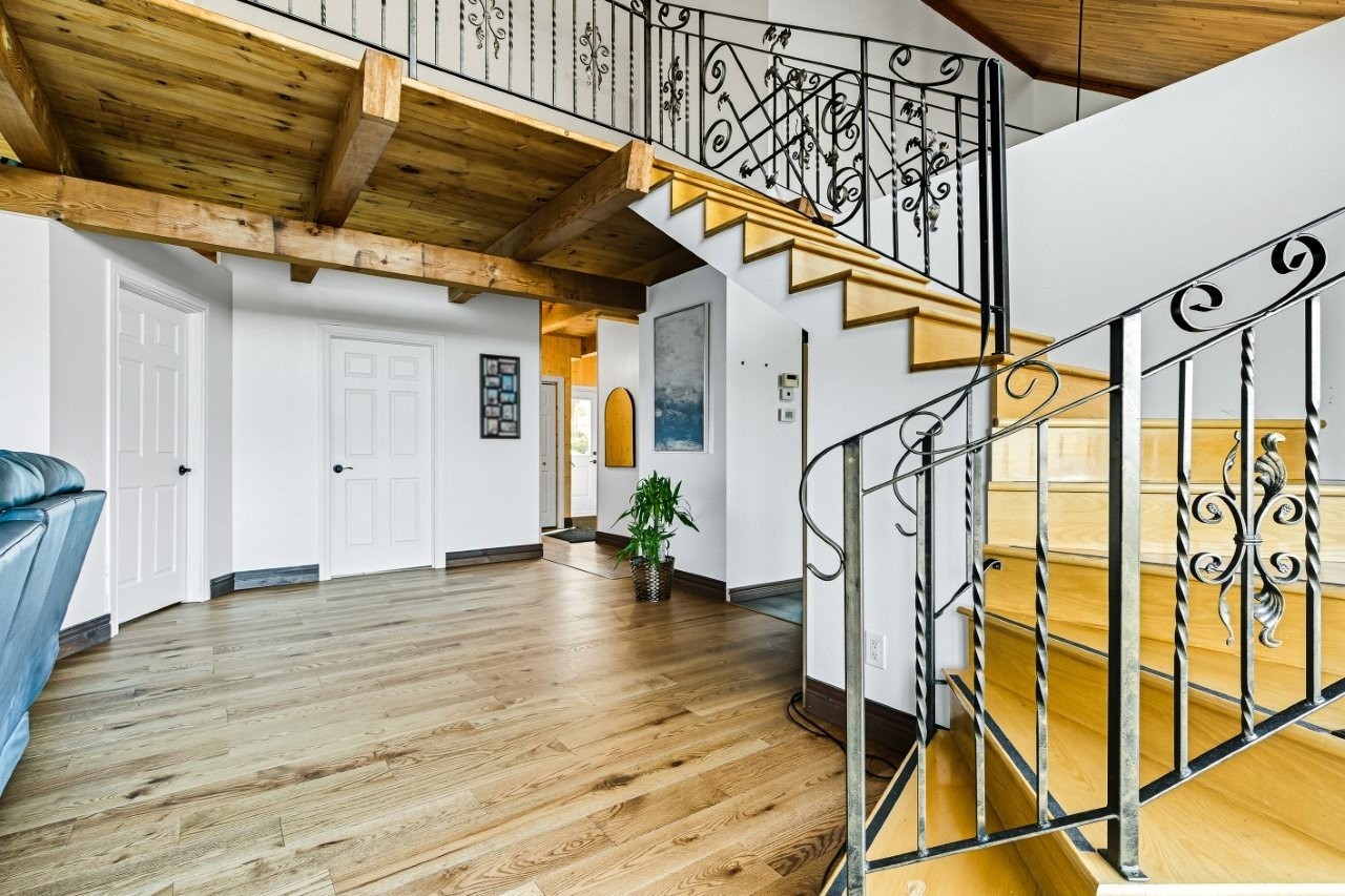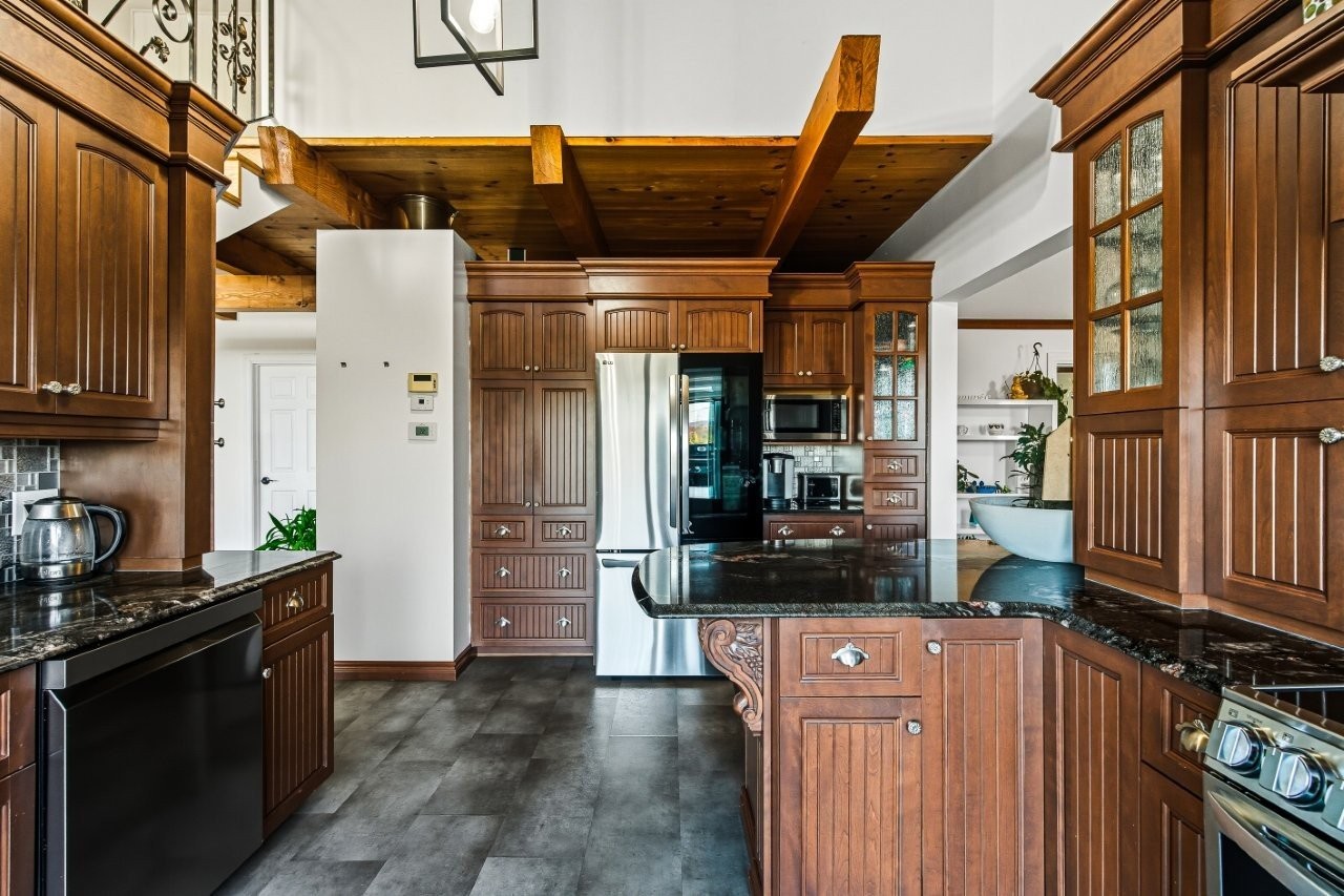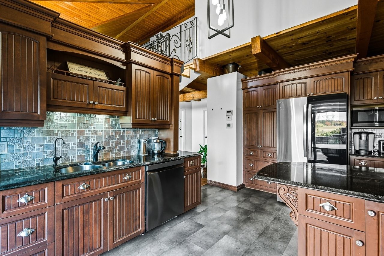 La vaste maison propose 4 chambres à coucher et 2 salles de bain complètes. La cuisine haut de gamme séduira les amateurs de gastronomie grâce à ses comptoirs de granite, ses armoires en bois offrant un vaste rangement et son aménagement aussi esthétique que fonctionnel. Le tout s’ouvre sur un espace de vie lumineux, où les plafonds en chêne verni de 16 pieds ajoutent chaleur et caractère à l’ensemble. L’abondante fenestration inonde chaque pièce de lumière naturelle, créant une atmosphère accueillante et apaisante.
