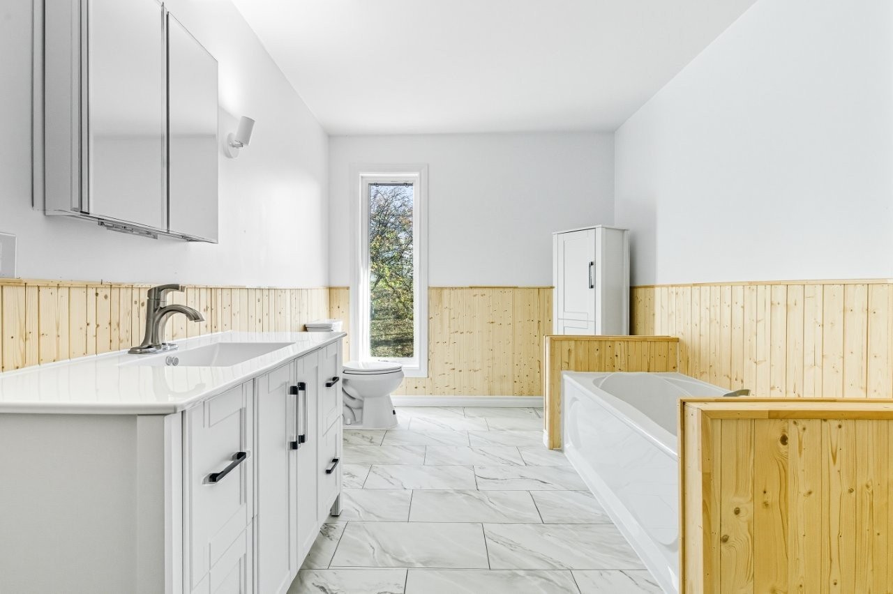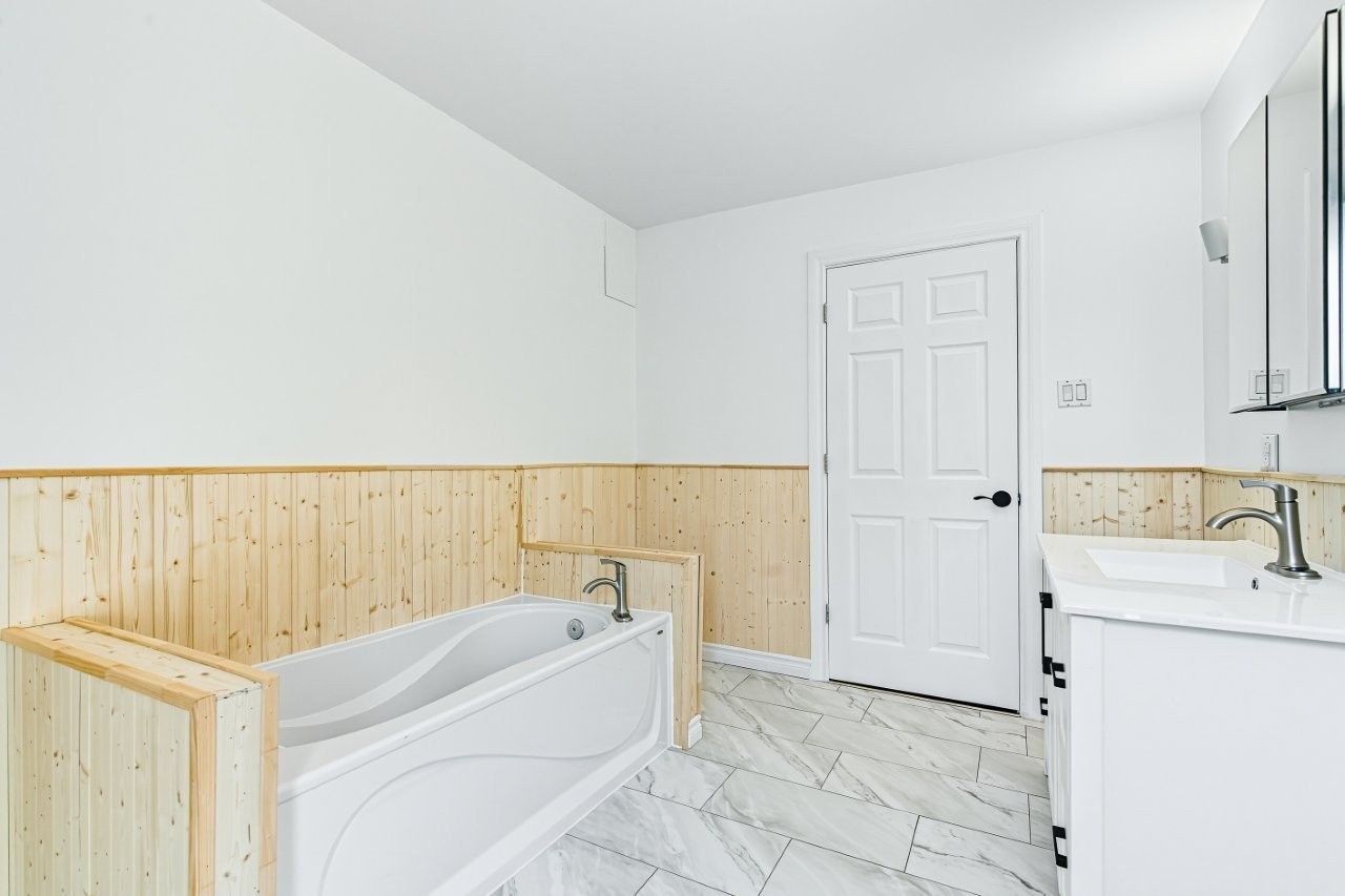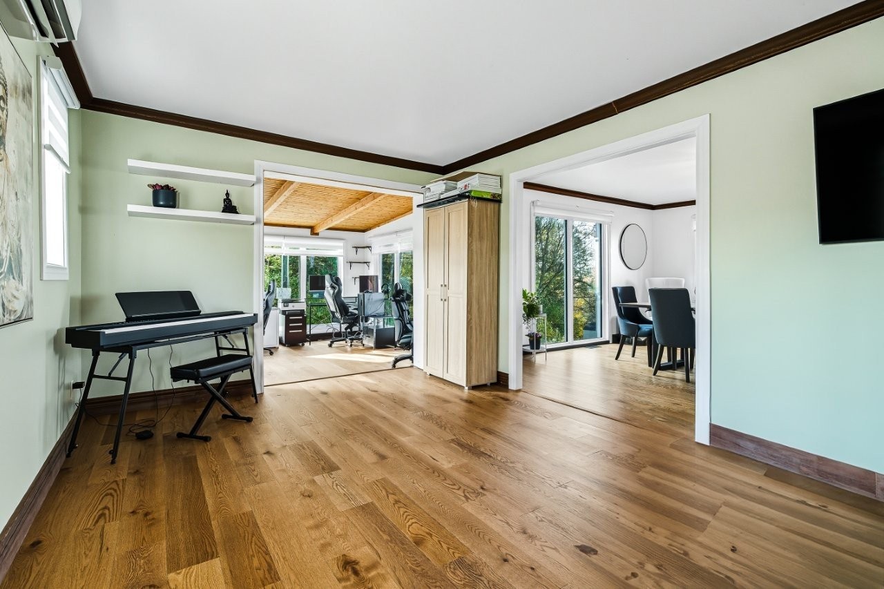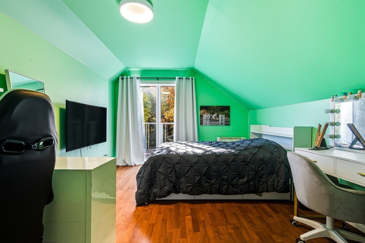 La vaste maison propose 4 chambres à coucher et 2 salles de bain complètes. La cuisine haut de gamme séduira les amateurs de gastronomie grâce à ses comptoirs de granite, ses armoires en bois offrant un vaste rangement et son aménagement aussi esthétique que fonctionnel. Le tout s’ouvre sur un espace de vie lumineux, où les plafonds en chêne verni de 16 pieds ajoutent chaleur et caractère à l’ensemble. L’abondante fenestration inonde chaque pièce de lumière naturelle, créant une atmosphère accueillante et apaisante.