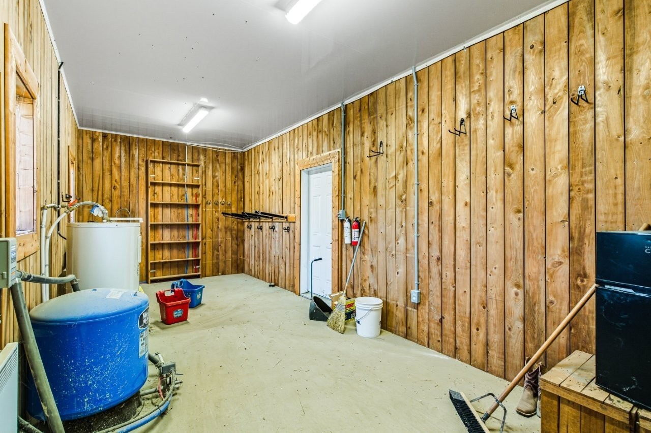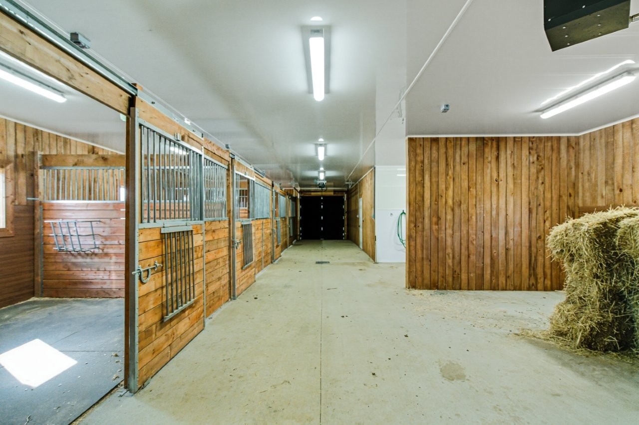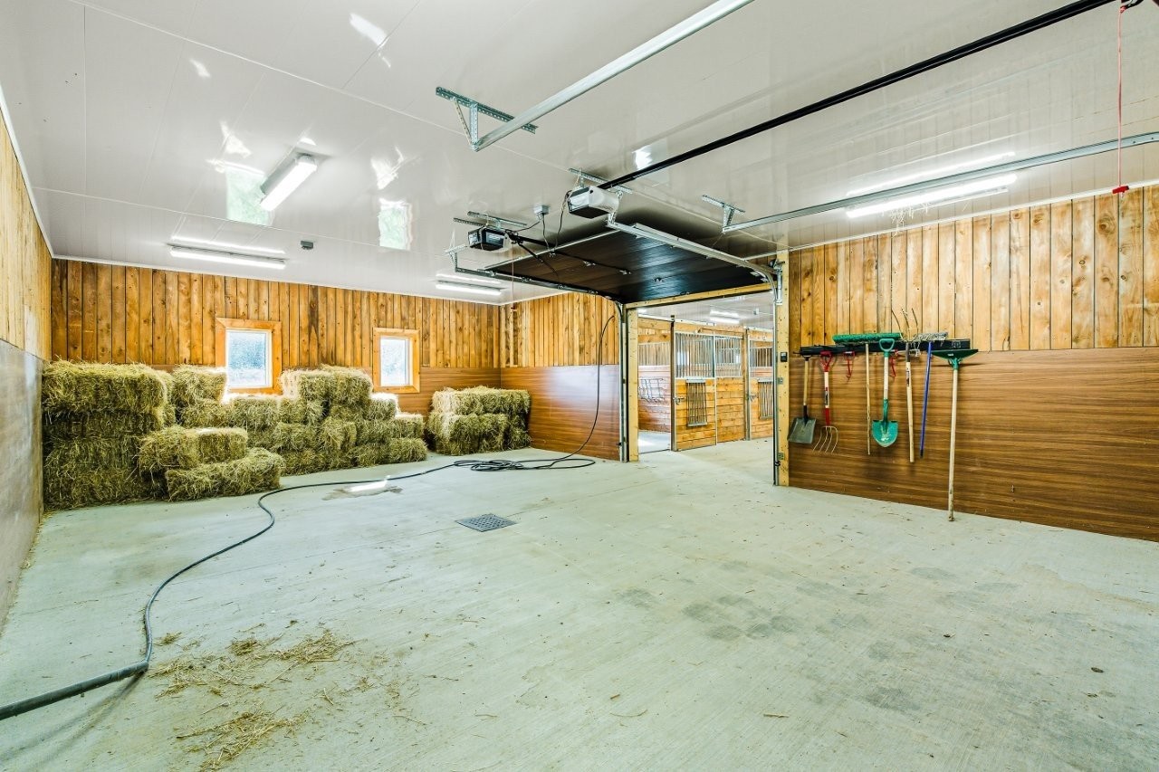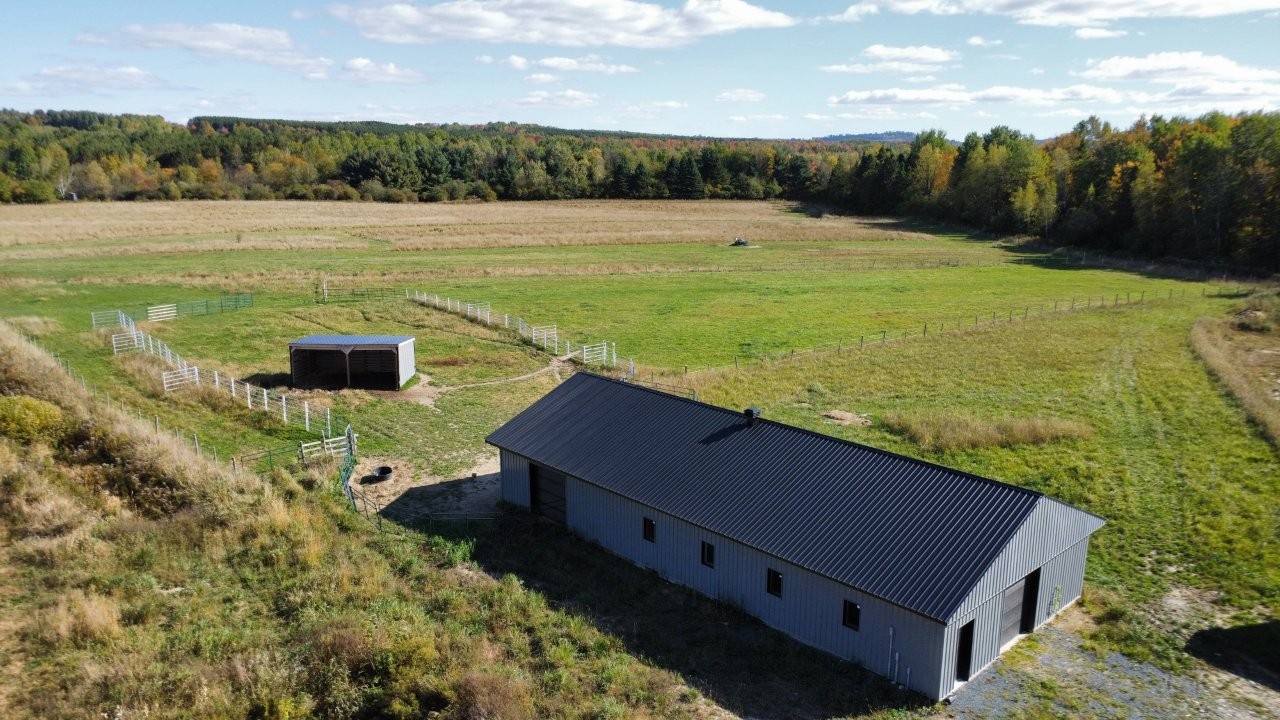 En 2024, une magnifique écurie moderne de 32 x 72 pi a été érigée à proximité des bâtiments principaux. Conçue pour le bien-être des chevaux, elle offre 4 box spacieux (avec possibilité d’en aménager jusqu’à 7), une sellerie fonctionnelle, une douche pour chevaux, ainsi qu’un vaste espace d’entreposage pour le foin. Les terres cultivées situées tout près permettent une autosuffisance en foin, en plus d’offrir une surface de pâturage clôturée, idéale pour les chevaux.