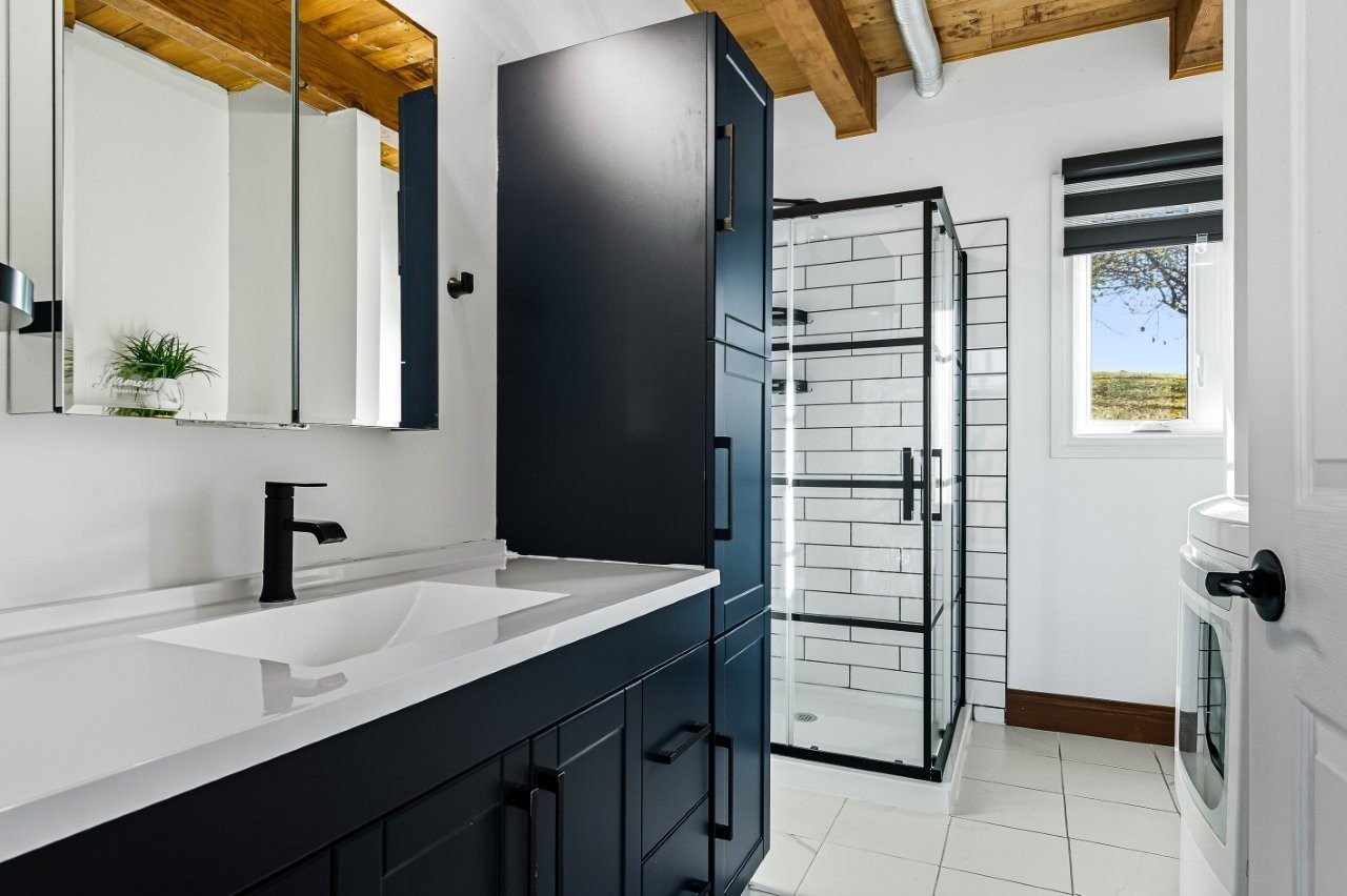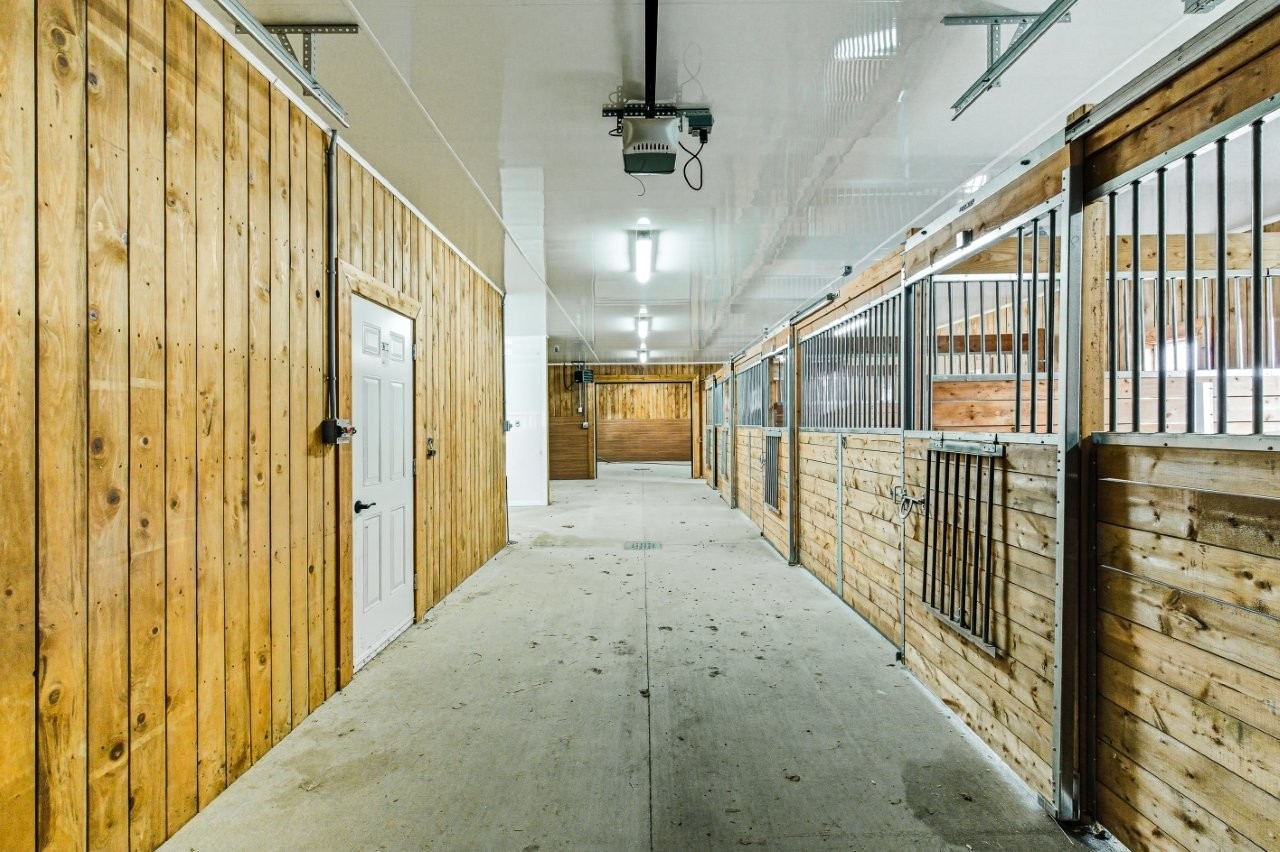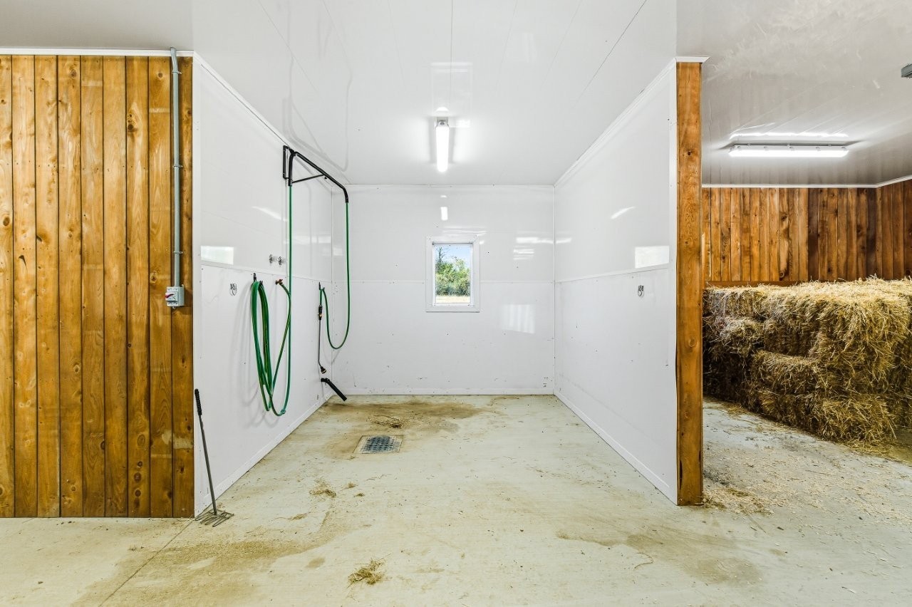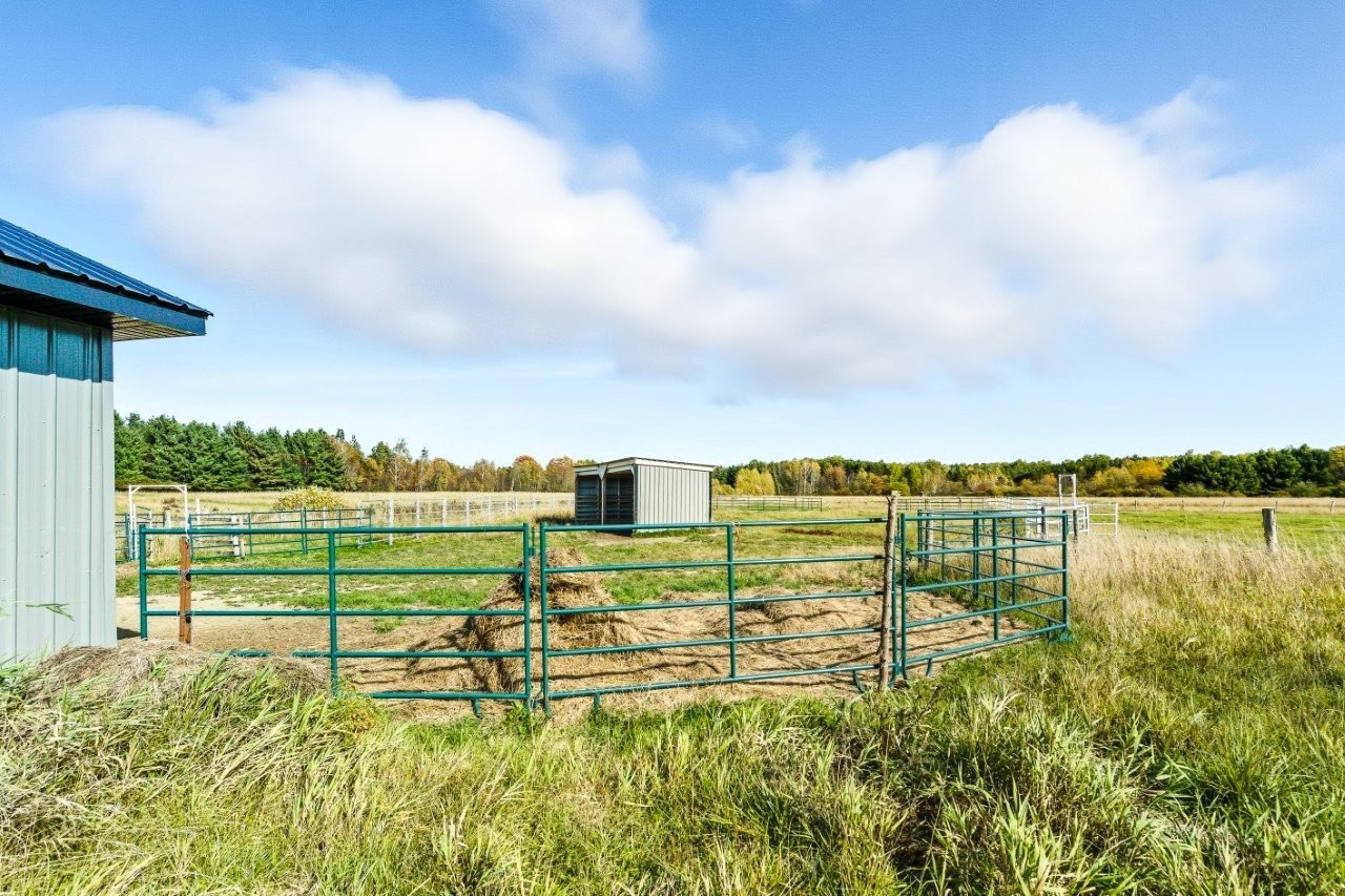 En 2024, une magnifique écurie moderne de 32 x 72 pi a été érigée à proximité des bâtiments principaux. Conçue pour le bien-être des chevaux, elle offre 4 box spacieux (avec possibilité d’en aménager jusqu’à 7), une sellerie fonctionnelle, une douche pour chevaux, ainsi qu’un vaste espace d’entreposage pour le foin. Les terres cultivées situées tout près permettent une autosuffisance en foin, en plus d’offrir une surface de pâturage clôturée, idéale pour les chevaux.