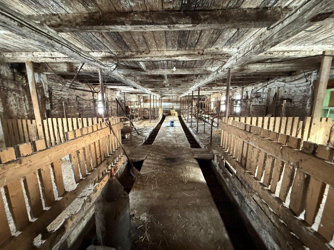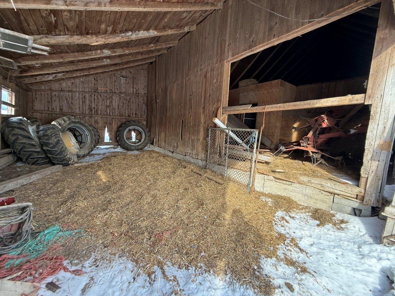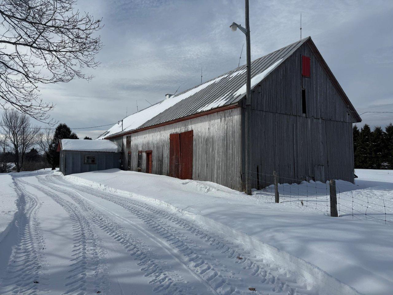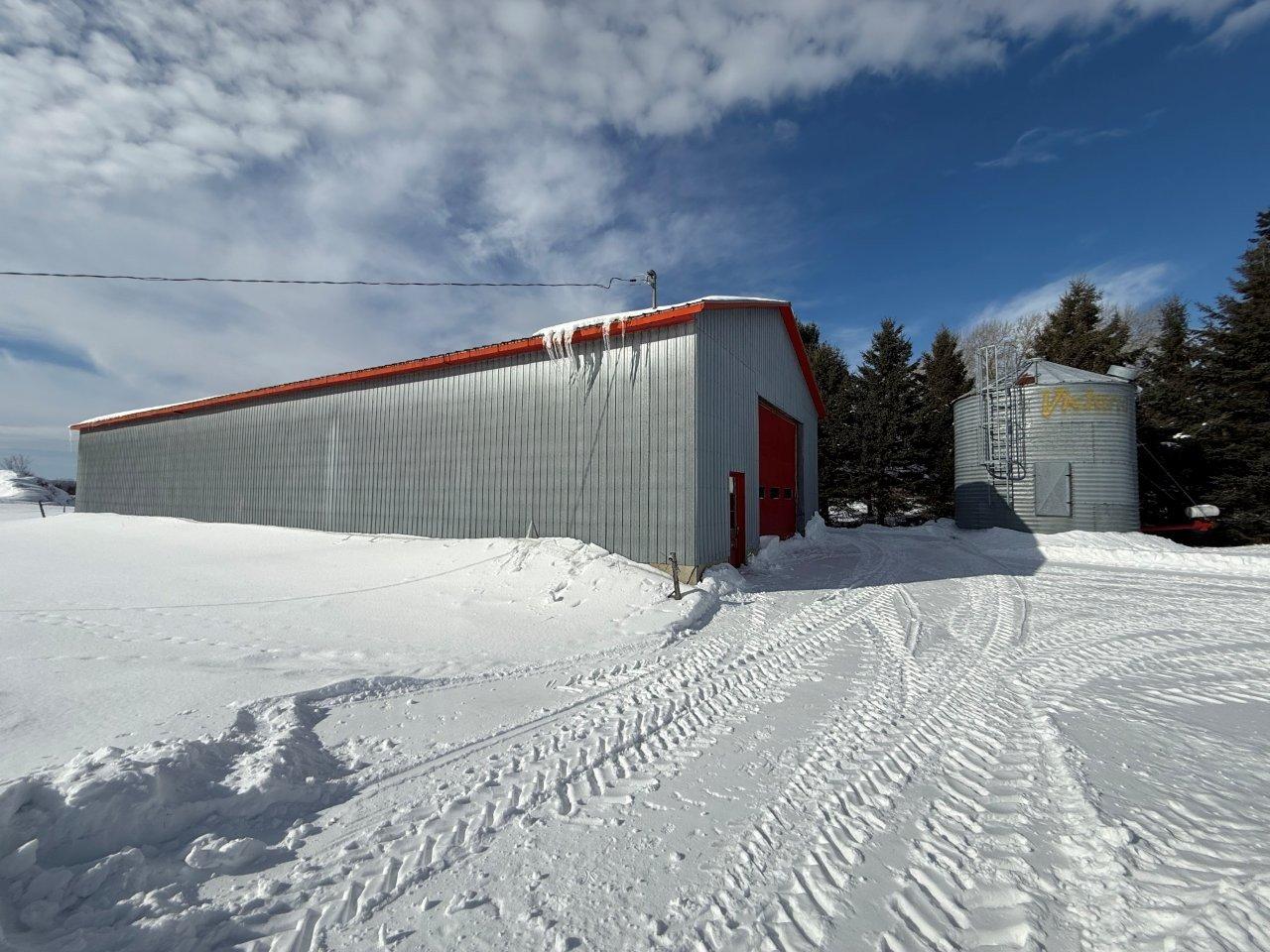 - Étable à stabulation libre de 40 x 150 pi, isolée comprenant un coin bureau et un atelier, ainsi qu’un ancien secteur porcherie avec enclos en acier et en PVC,